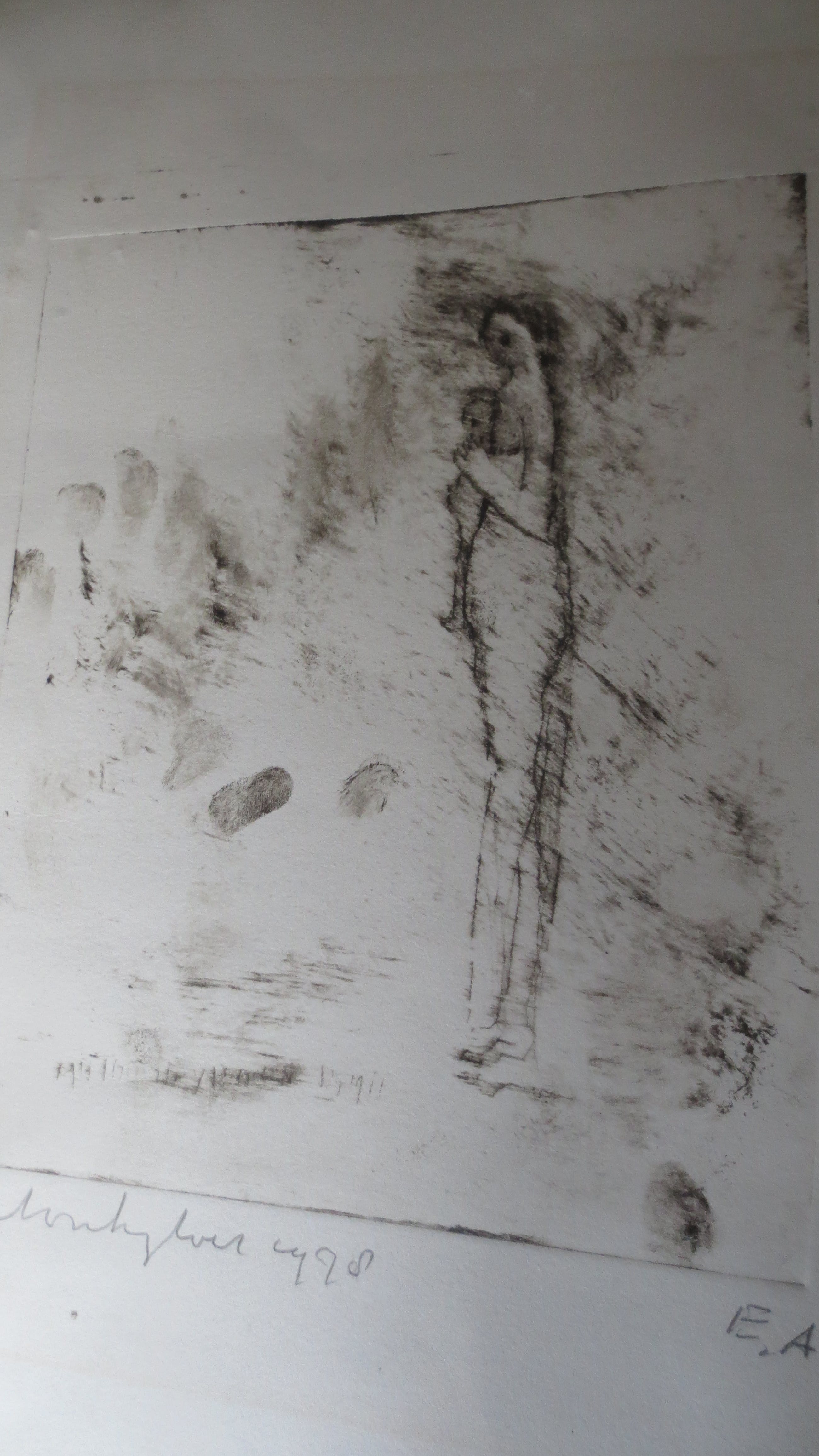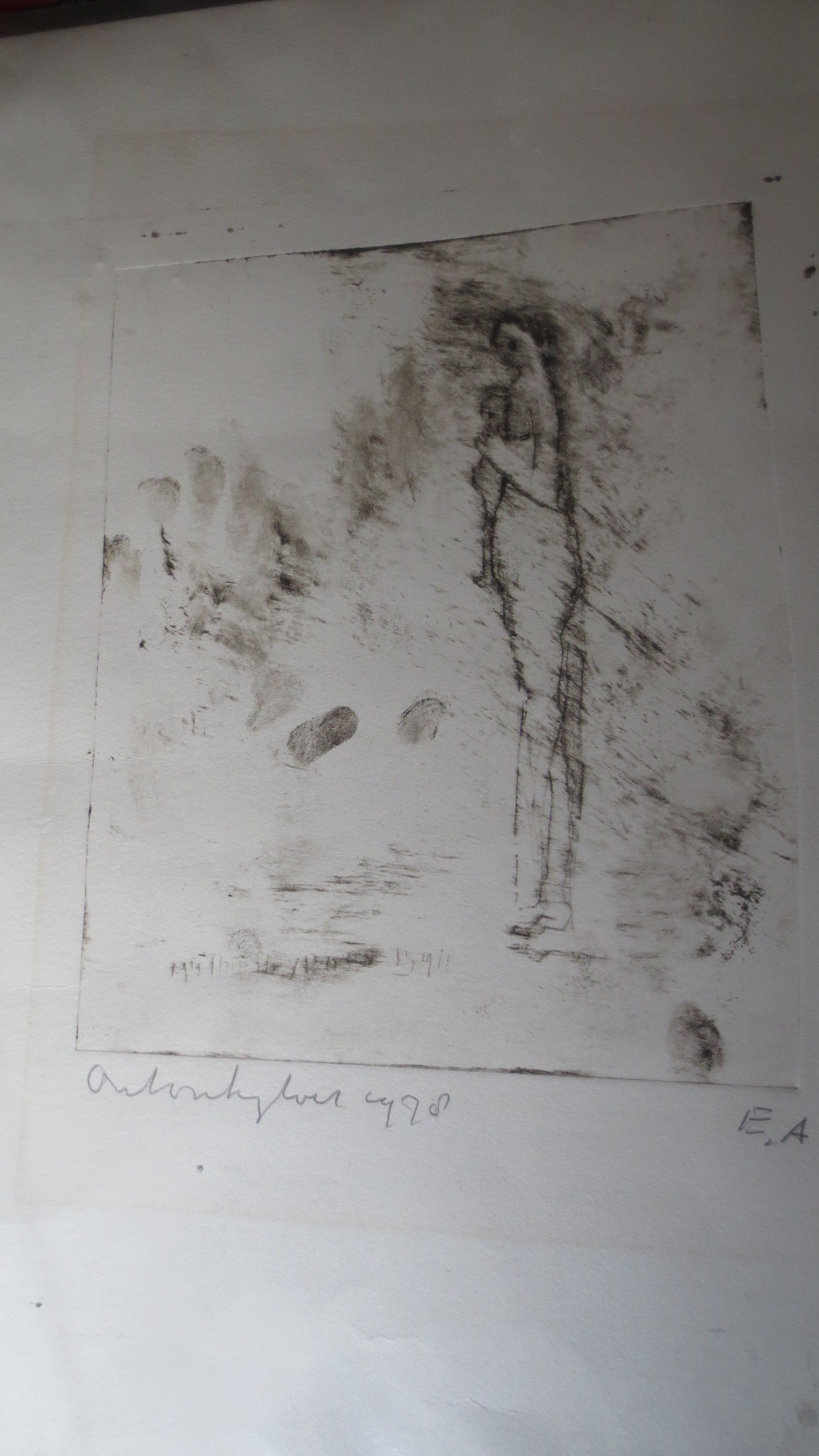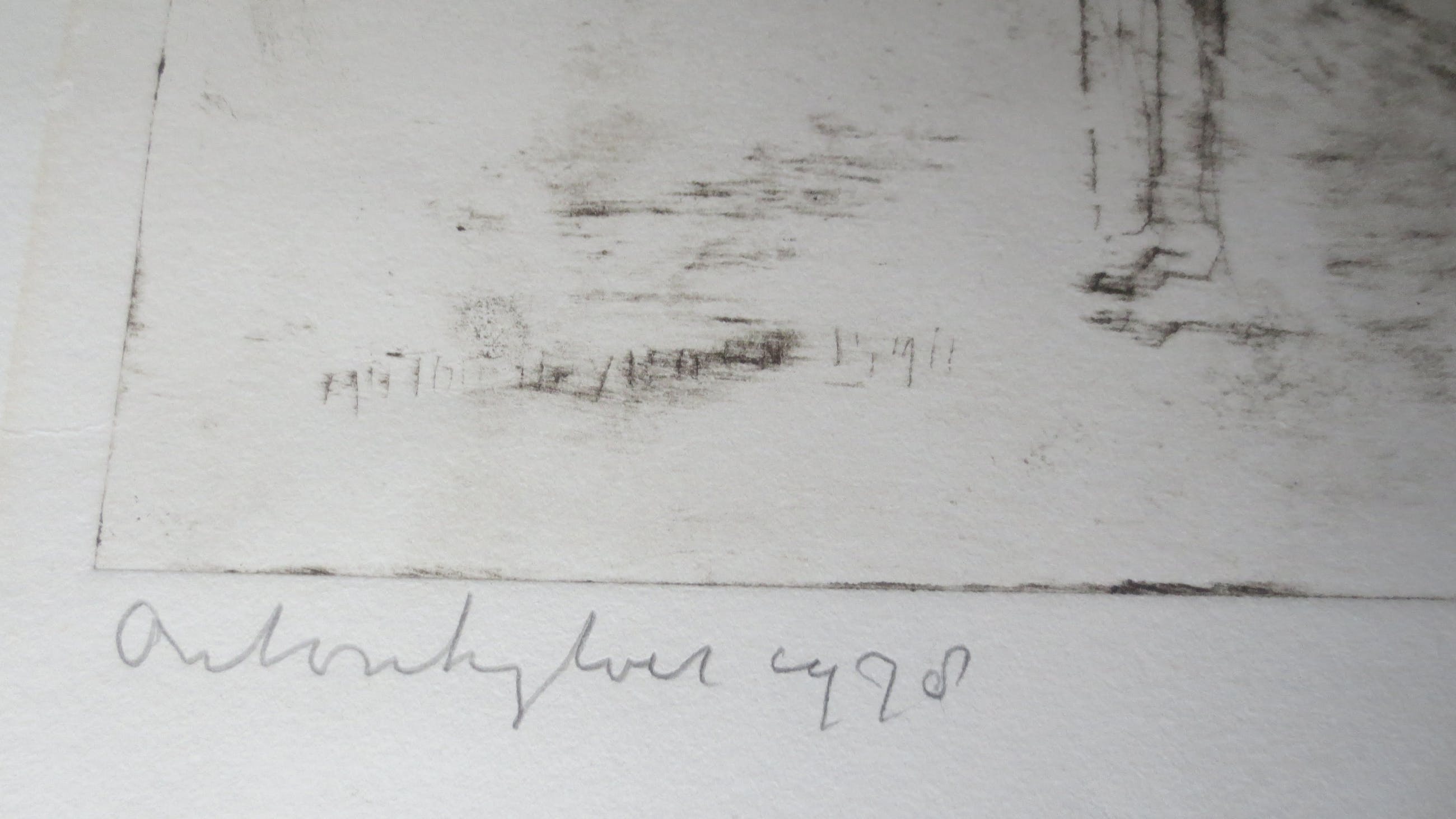 Bij deze ets is een brief van Lotti Heyboer over subject - Anton's eerste vrouw Puck met zijn zoon Andries. en uitleg over datum's