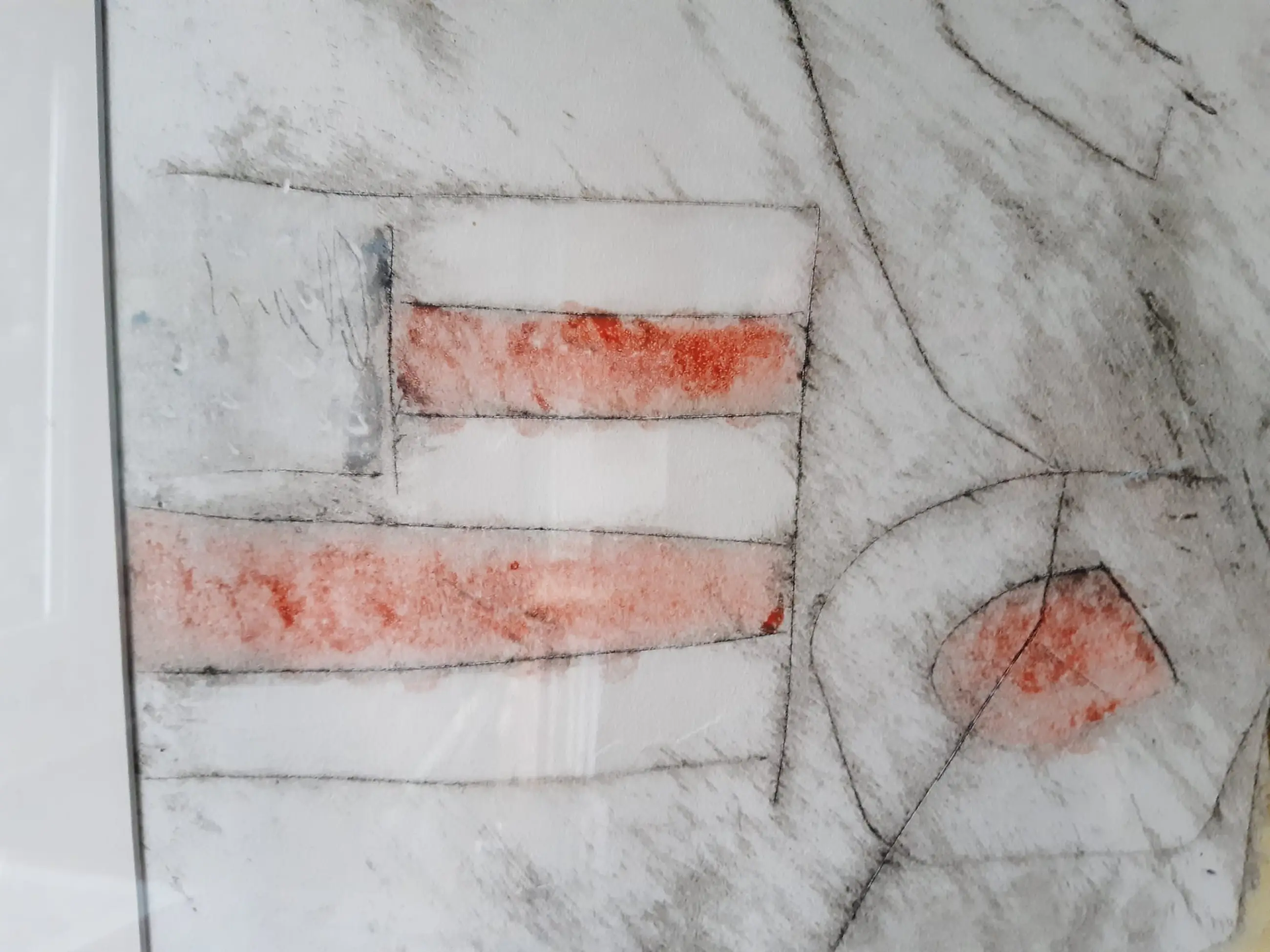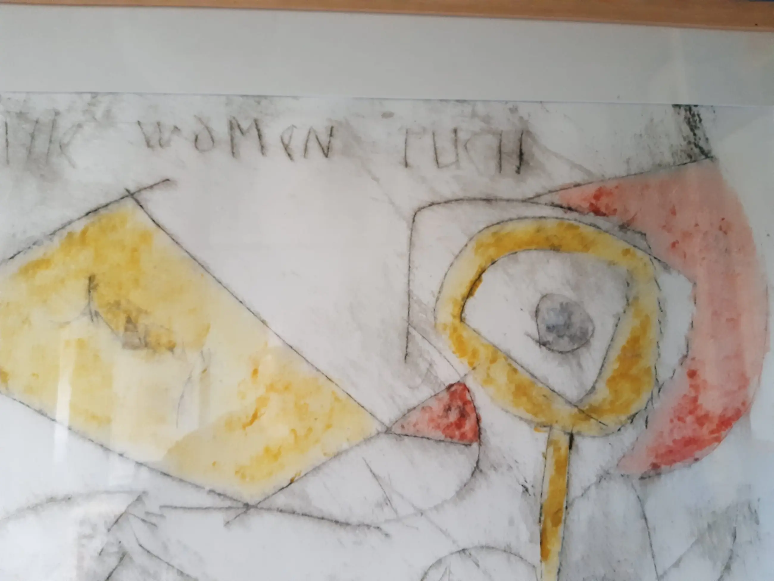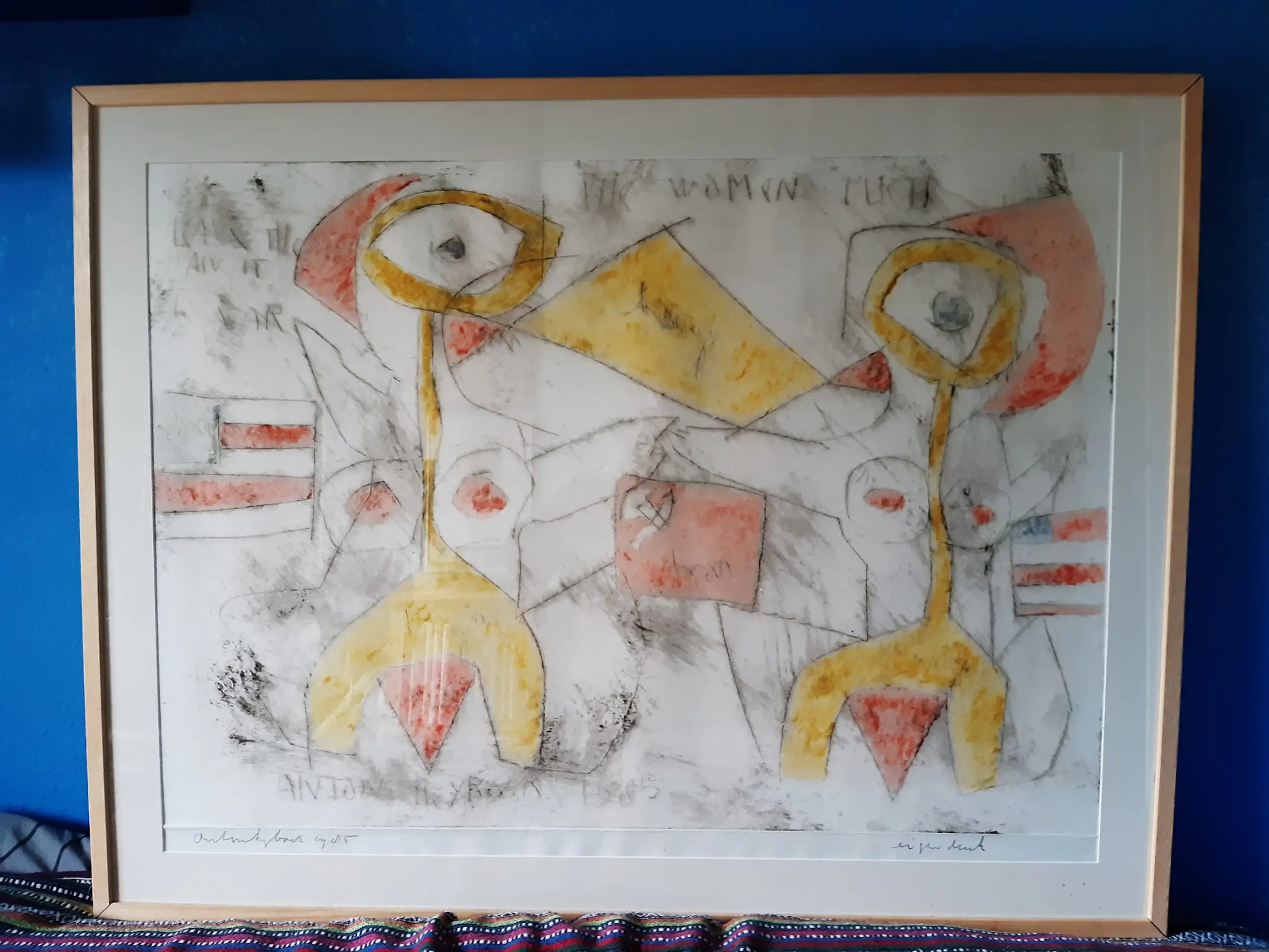 Zeer zeldzame mega-grote ingekleurde ets uit 1985 getiteld "The Women Tuch" en "Have them have Its War"