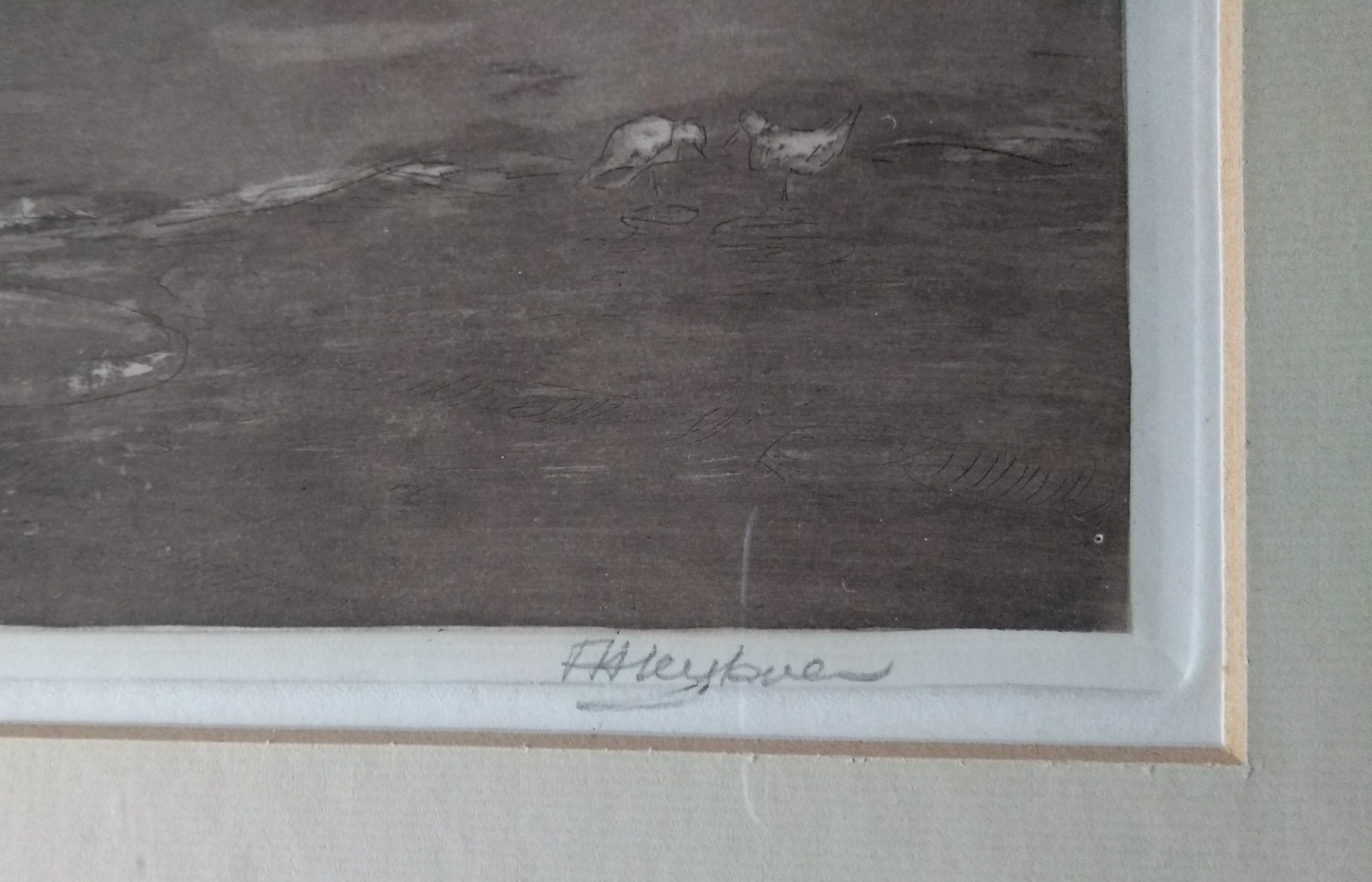 Anton Heyboer Titel van het werk is schelpenvissen Ingekleurde ets op papier Afmeting zijn ongeveer 25x53 cm Afmeting net lijst +/~ 42x67cm Gesigneerd rechtsonder en linksonder betiteld Wordt aangetekend verzonden