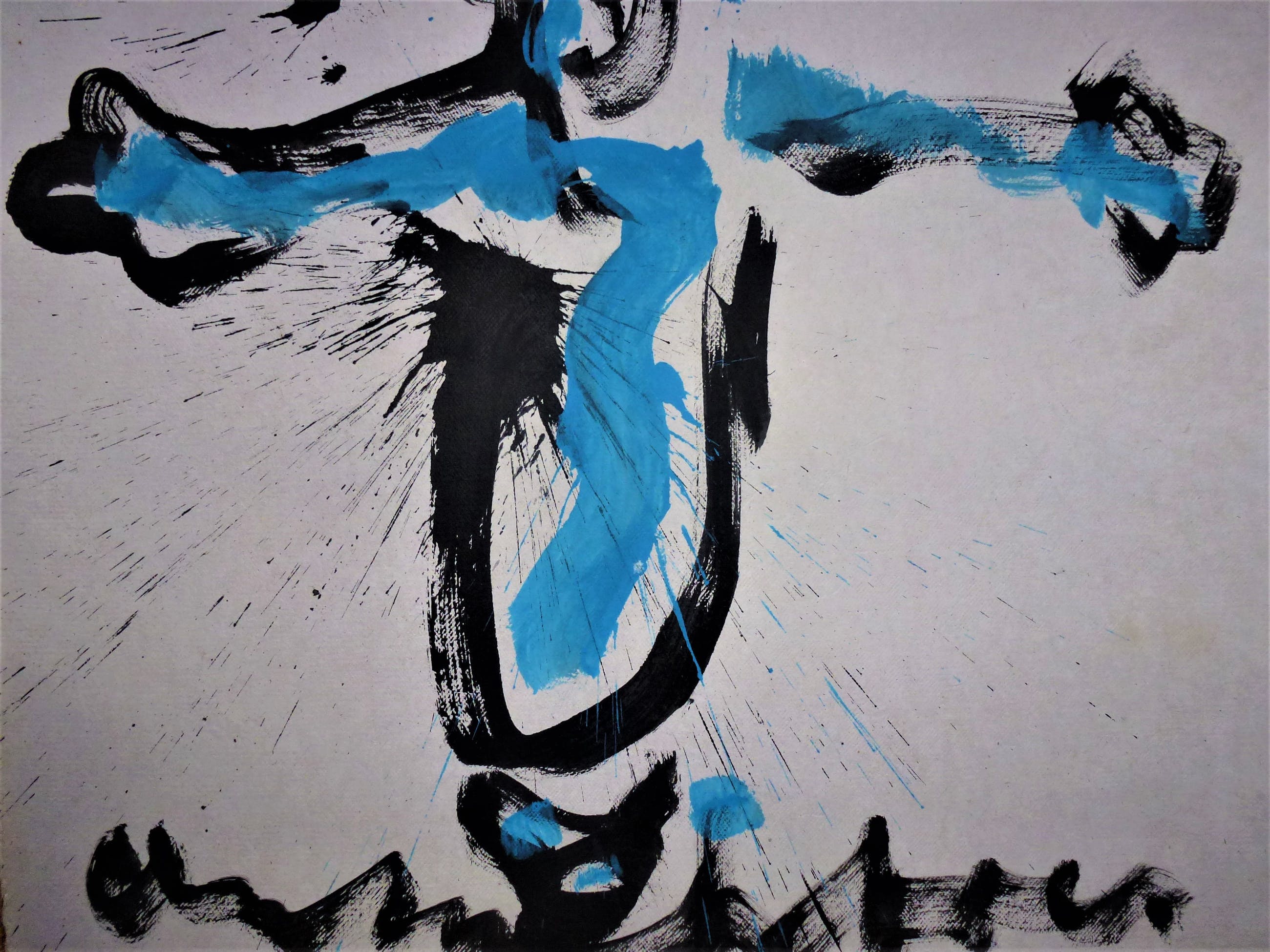 Geschilderd door Anton Heyboer in 1988 met acrylverf en oostindische inkt op hand geschept papier . Papier gemaakt door papiermolen de Schoolmeester te Westzaan van lompen . Afmetingen : 62 cm x 72 cm . Voorstelling : Swingende crucifix . Conditie : Zo goed als nieuw . Herkomst : Gekocht in 1988 van Anton Heyboer . Wordt aangetekend verzonden .
