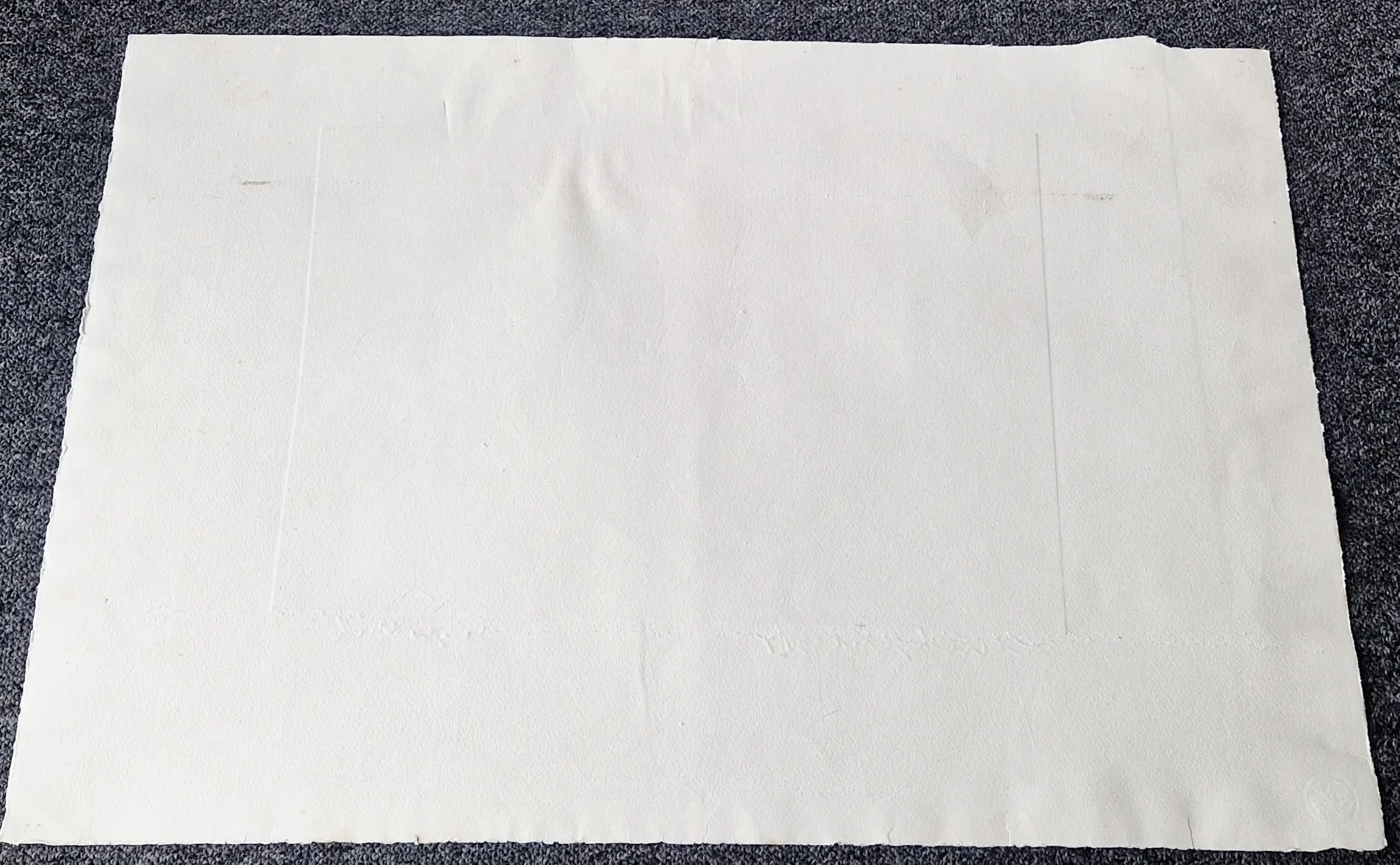 - De conditie van de Ets zelf (het beeld) is zeer goed, de omliggende marge is wat beduimeld (zichtbare vouwtjes en vlekjes).