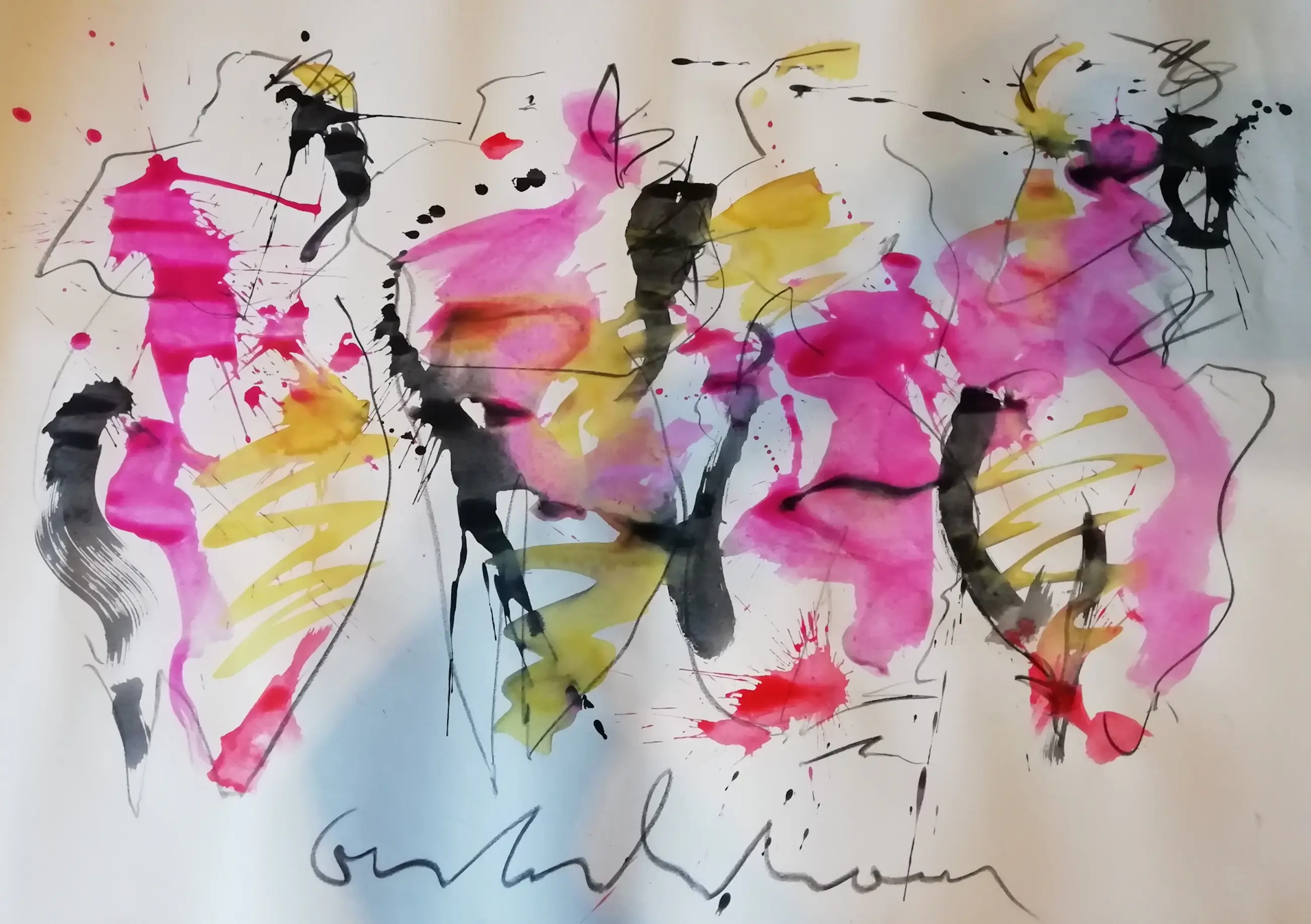 Origineel groot en apart werk van Anton Heyboer in gemengde techniek 70 x 100 cm .