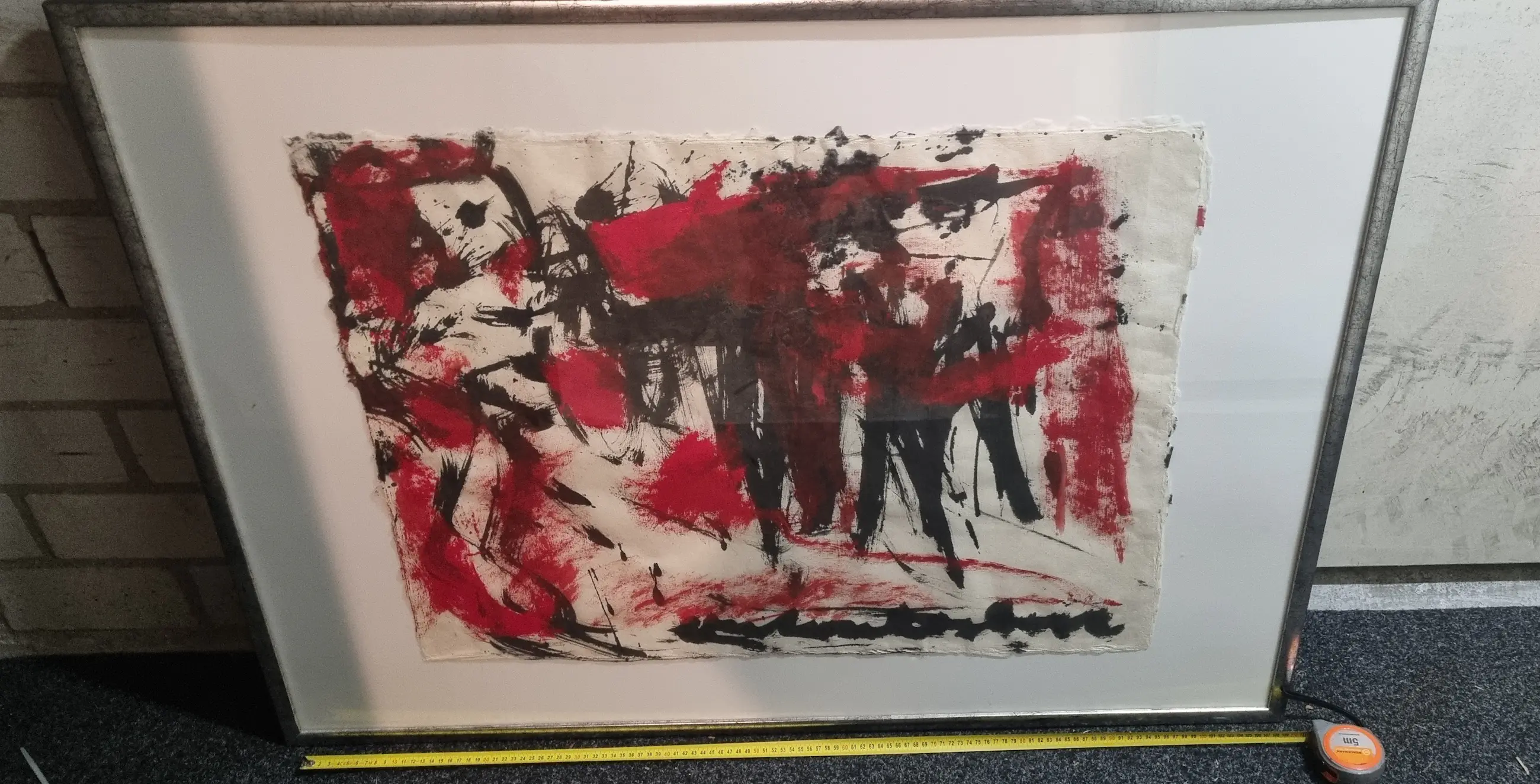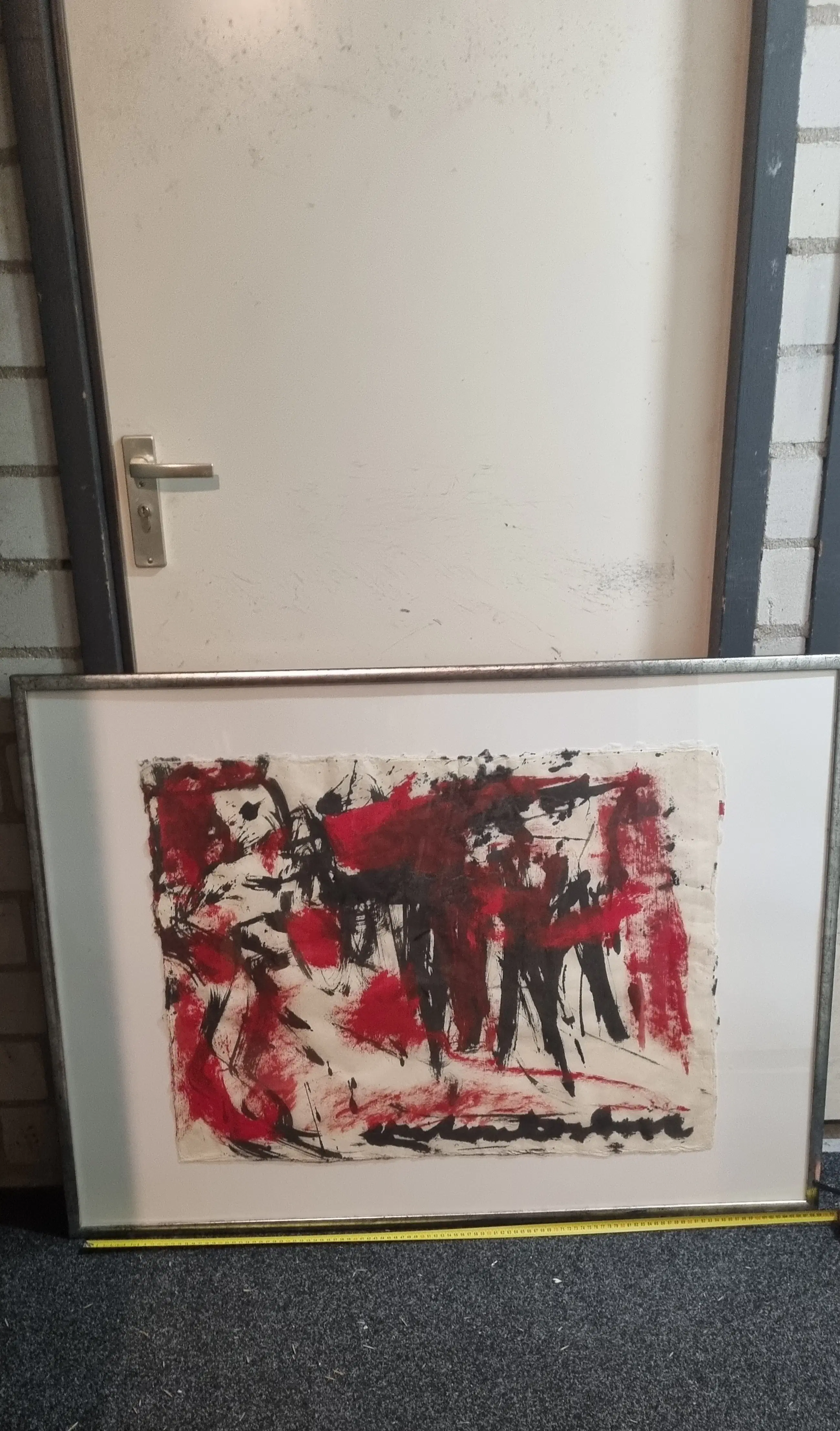 Grote acryl op papier ingelijst zelf gehaald in den Ilp bij Petra 1999