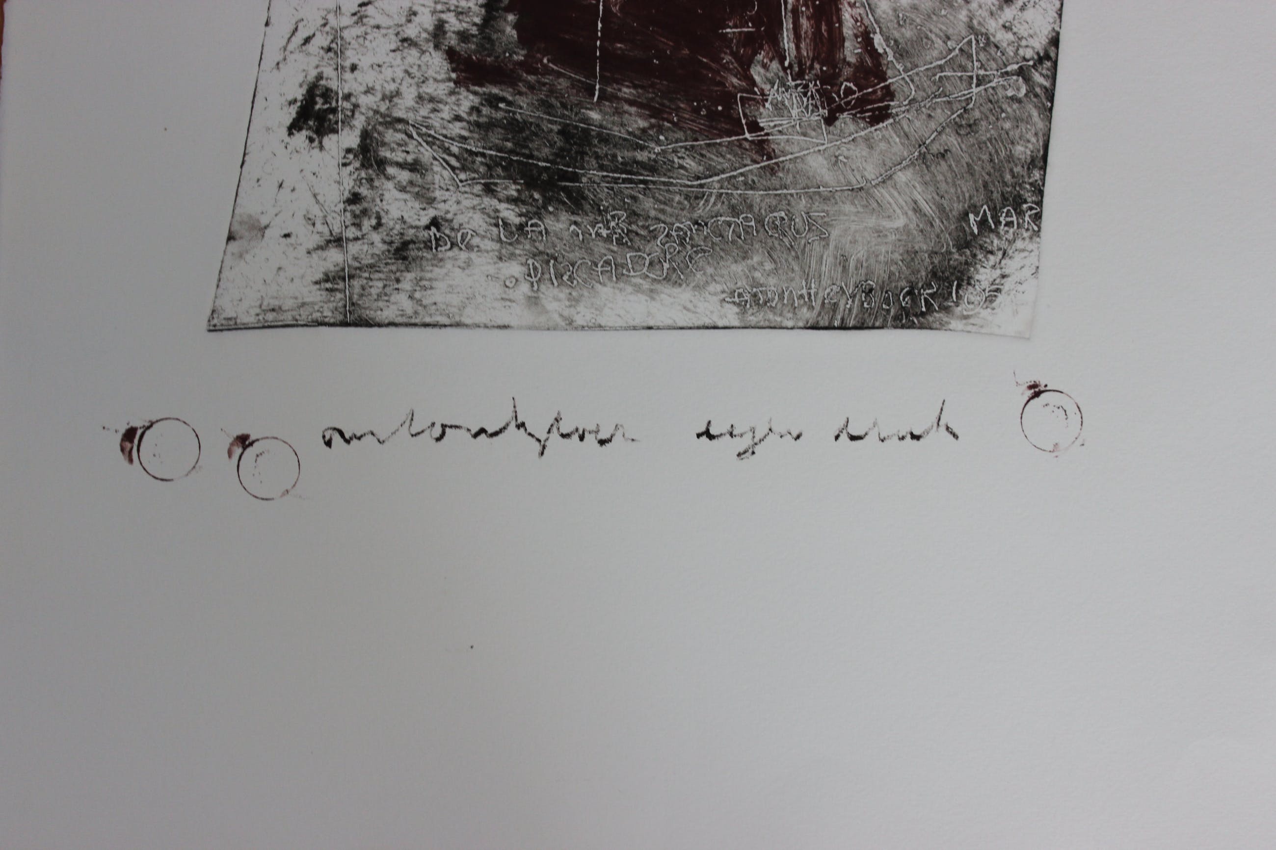 Dit werk is van Nederlandse schilder en graficus Anton Heyboer (1924-2005). Te zien aan de datering rechtsonder in het werk is het gemaakt in 1954 en behoort het tot het vroege oeuvre van de kunstenaar. Heyboer is voornamelijk bekend van zijn kleurrijke en expressionistische figuraties, maar van zijn vroege werk is minder in omloop. Het werk is meerdere keren gesigneerd en gedateerd: in de ets, met stempels en met de hand. De ets is 37 x 32 cm, het geschepte papier is 79 x 53,5 cm. Het werk is in zeer goede conditie, afgezien van kleine potloodvlekken.