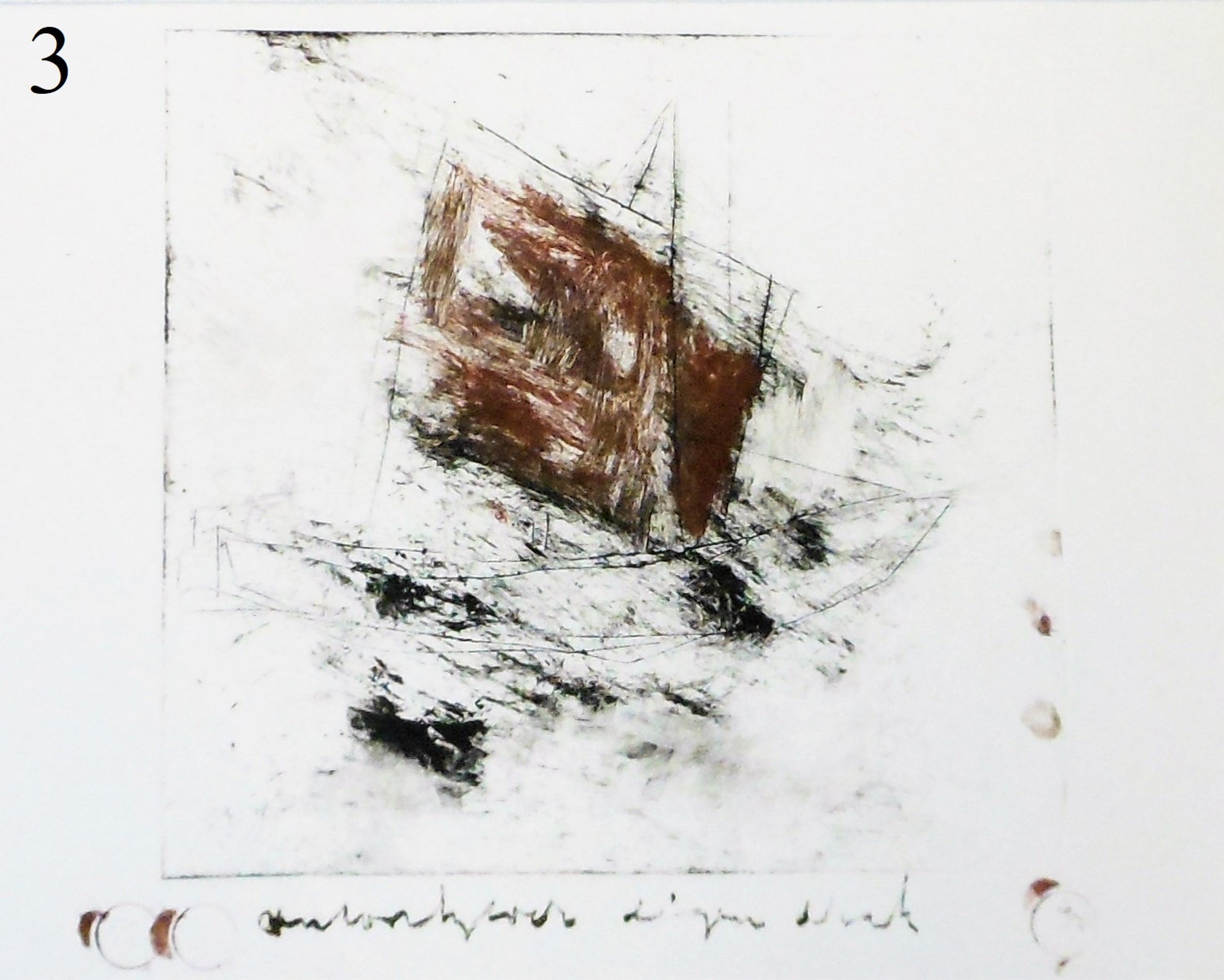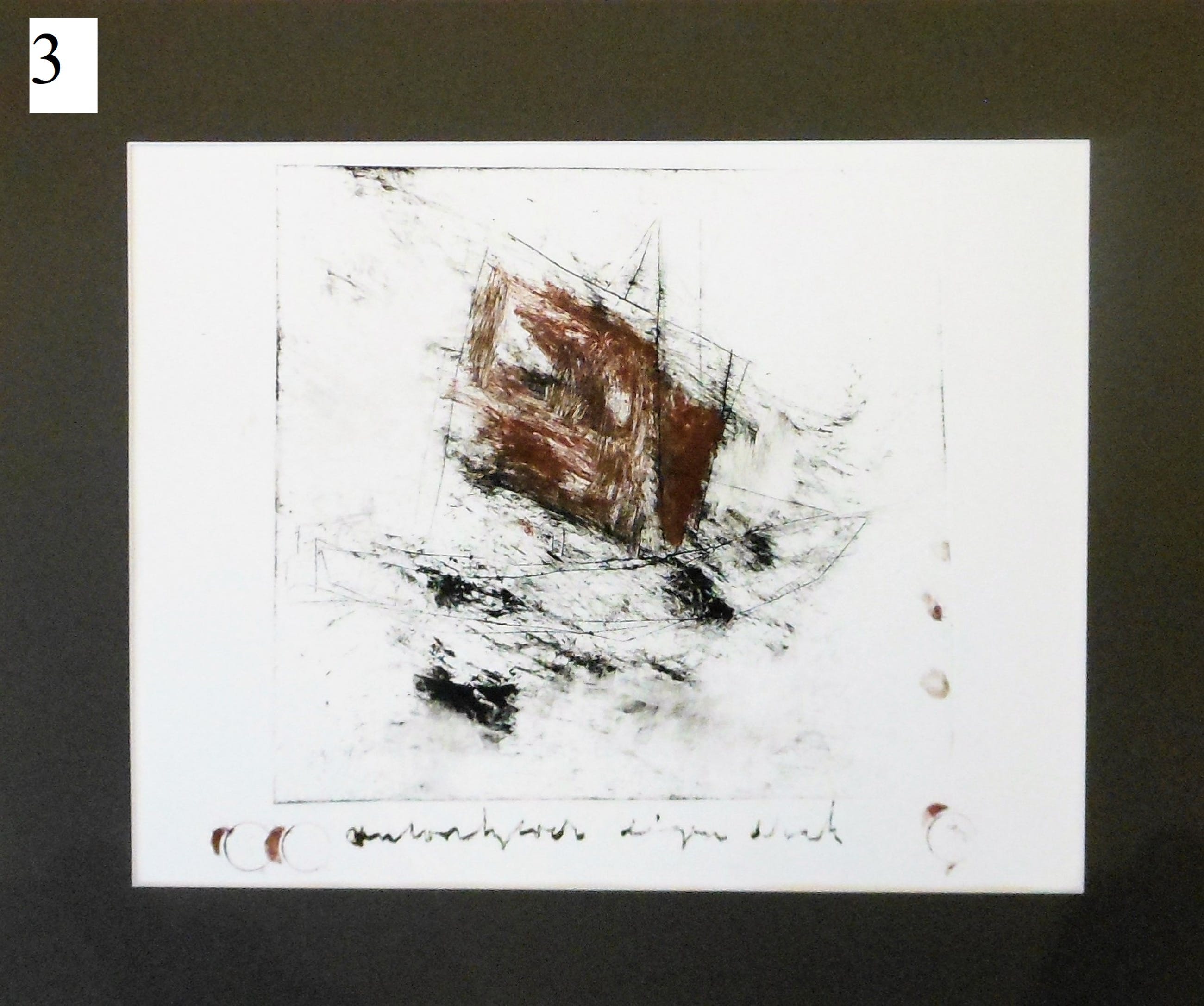 Originele 2 kleuren ets van zijn zeilschip, handgesigneerd met drukinkt, eigen druk.