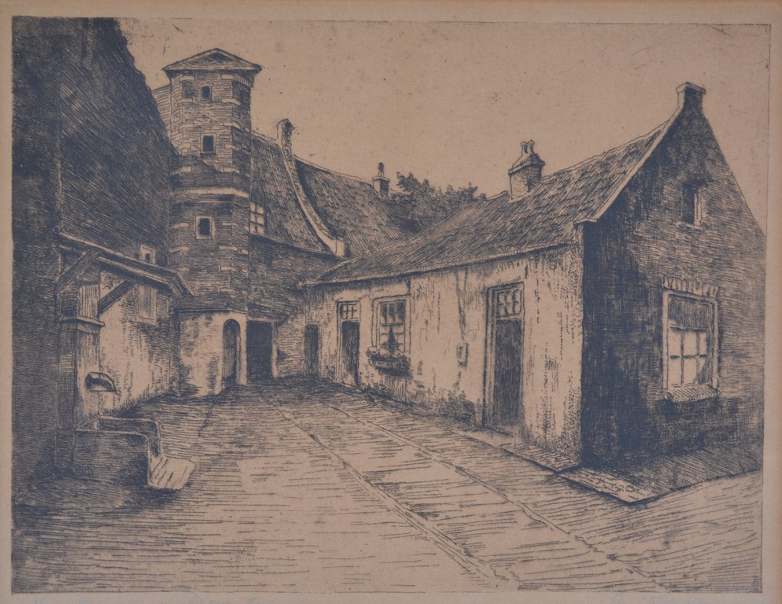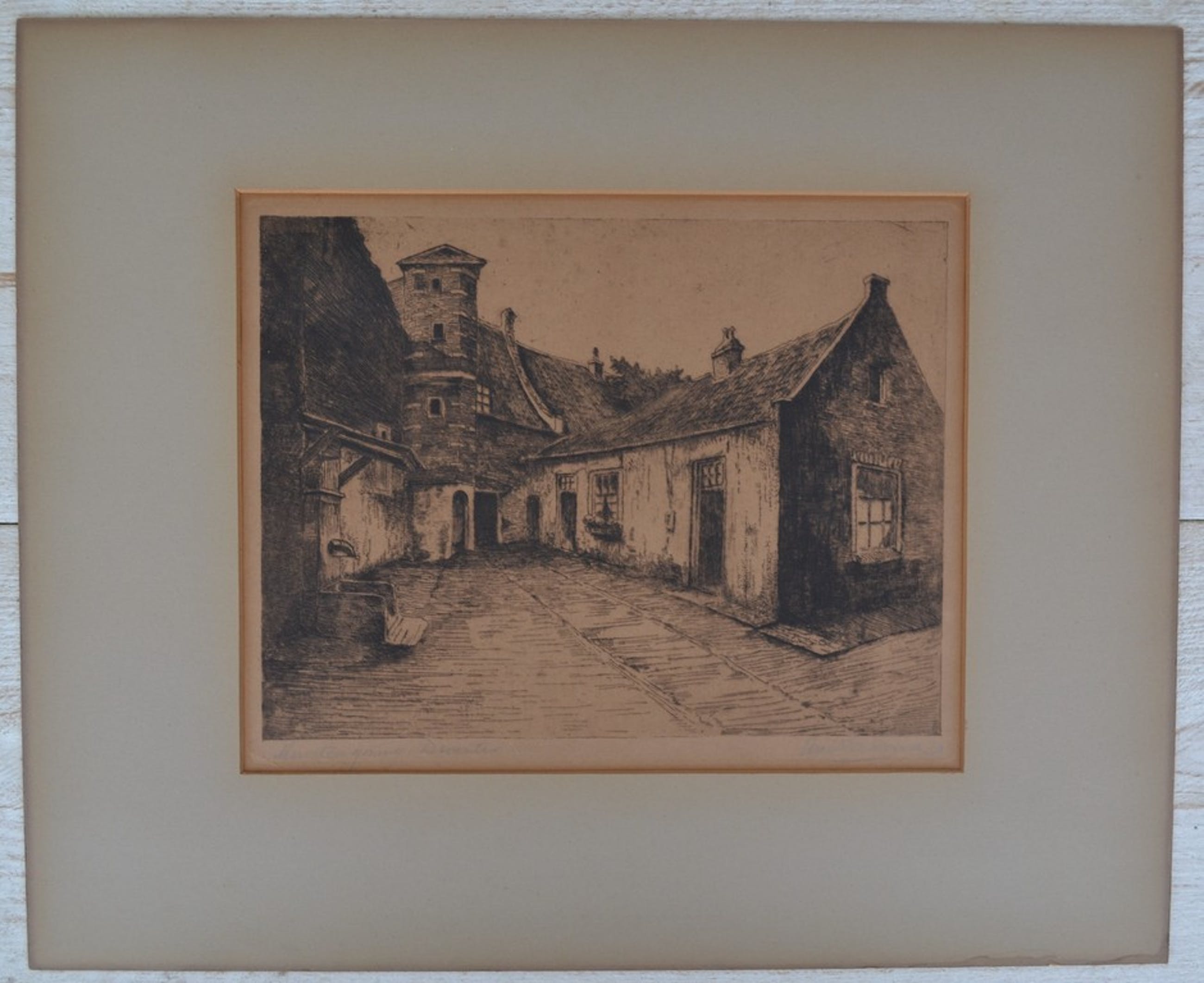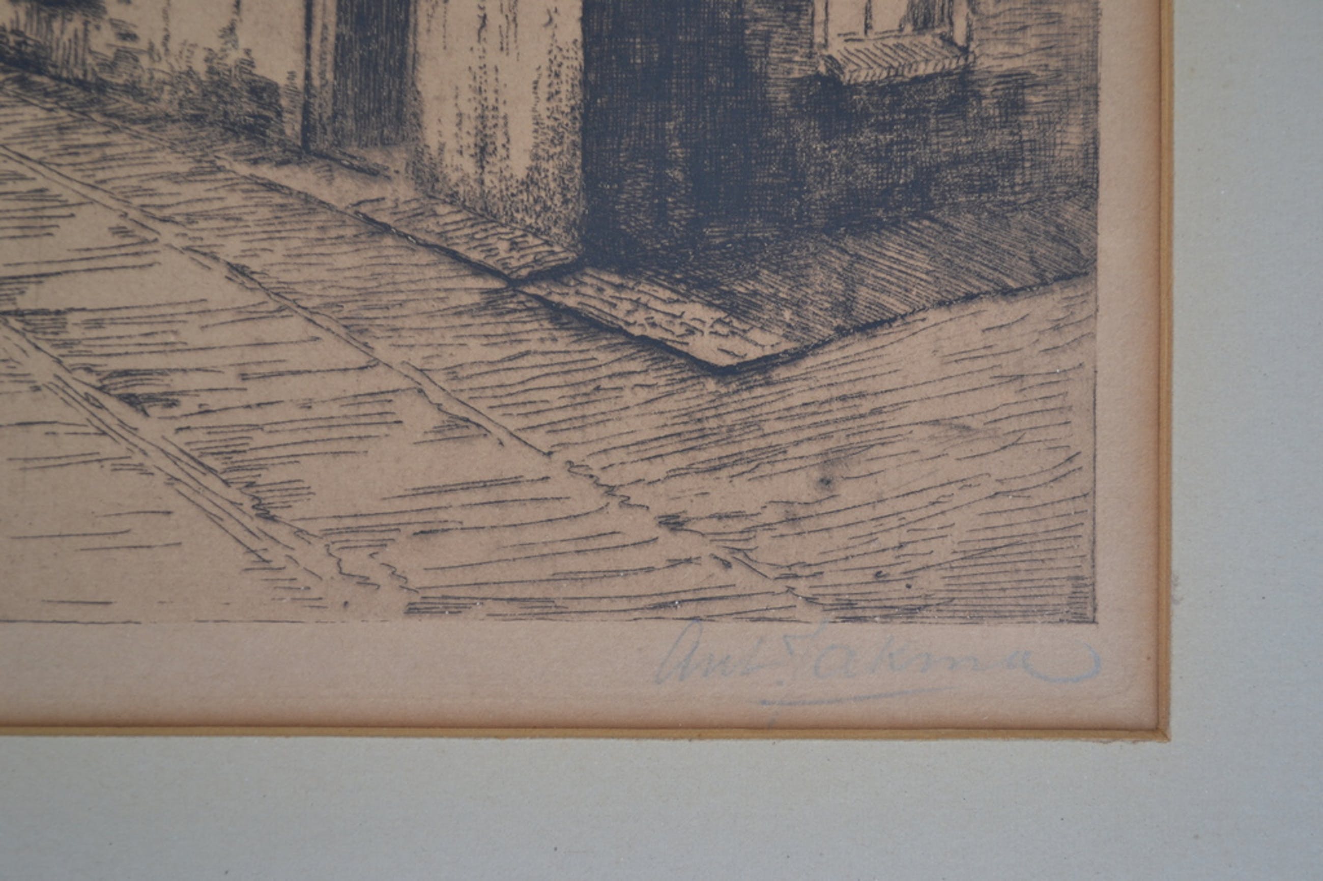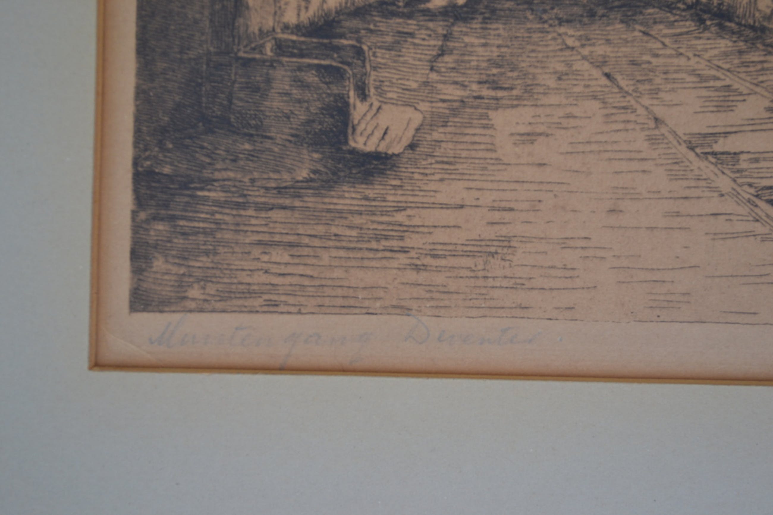 Ets van Johannes Antonius (Anton) Jakma (1880-1967) - Muntengang Deventer - r.o. in potlood gesigneerd en met passe-partout.