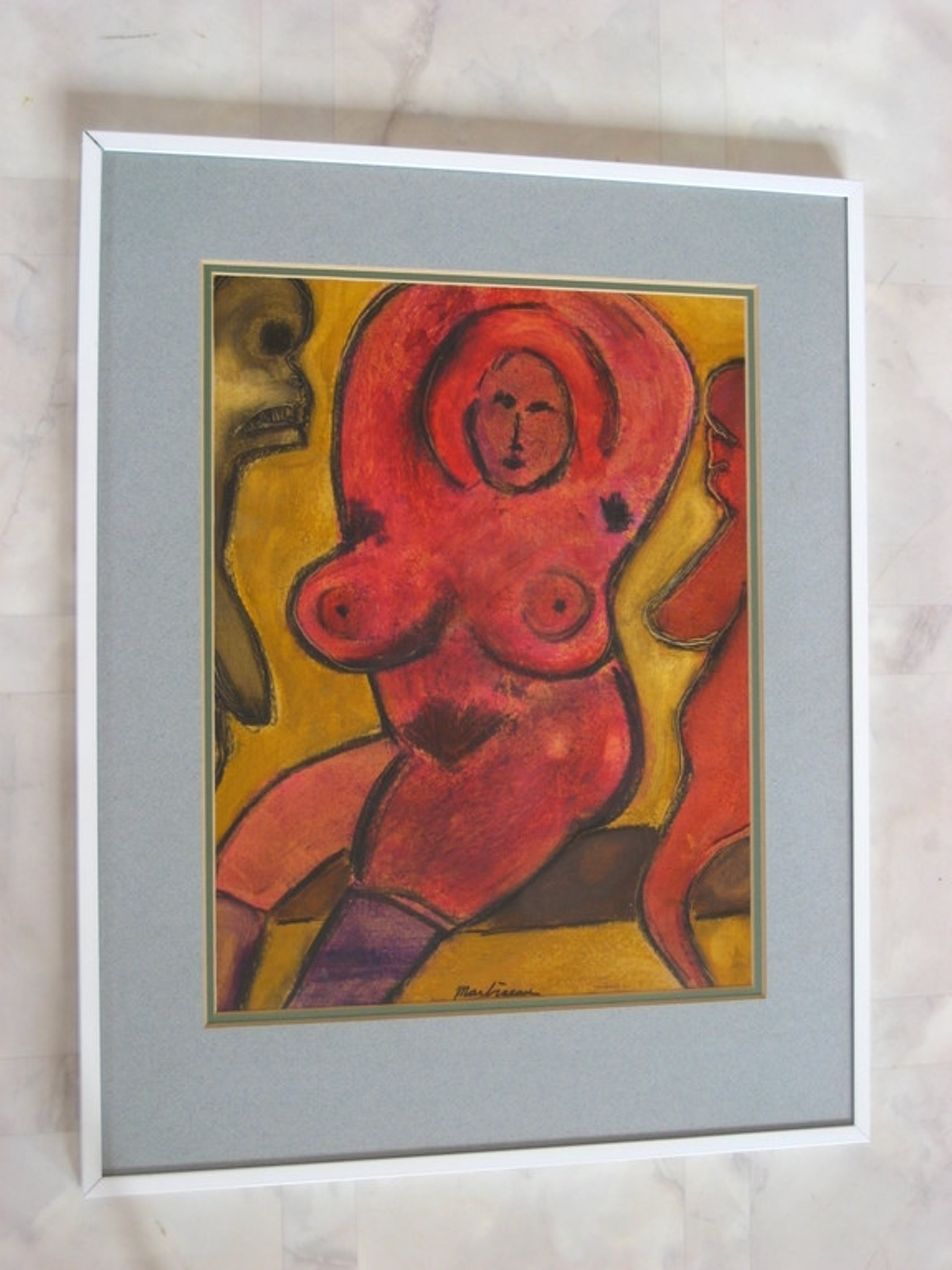 Afmeting met lijst en passe-partout achter glas: 51 cm bij 41 cm.