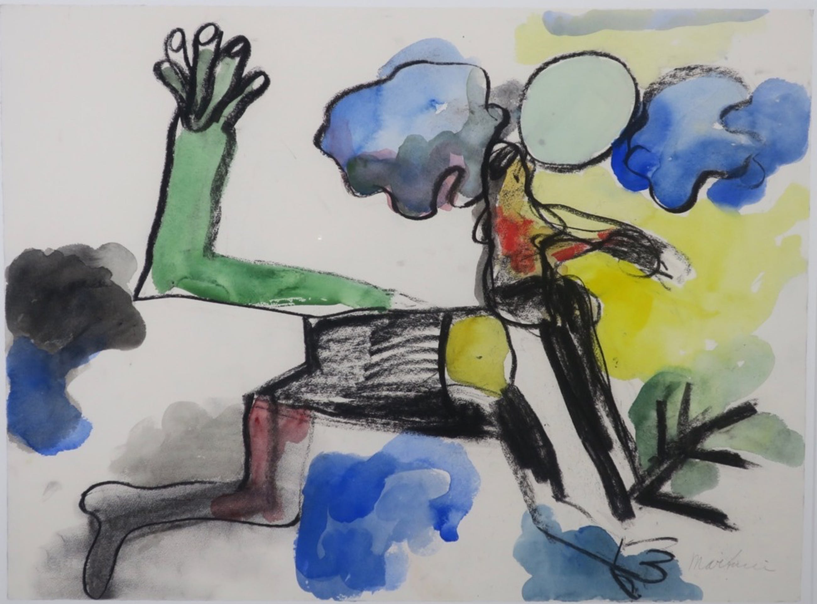Materiaal: Gemengde techniek, o.a. Krijt en Aquarel (?) op papier