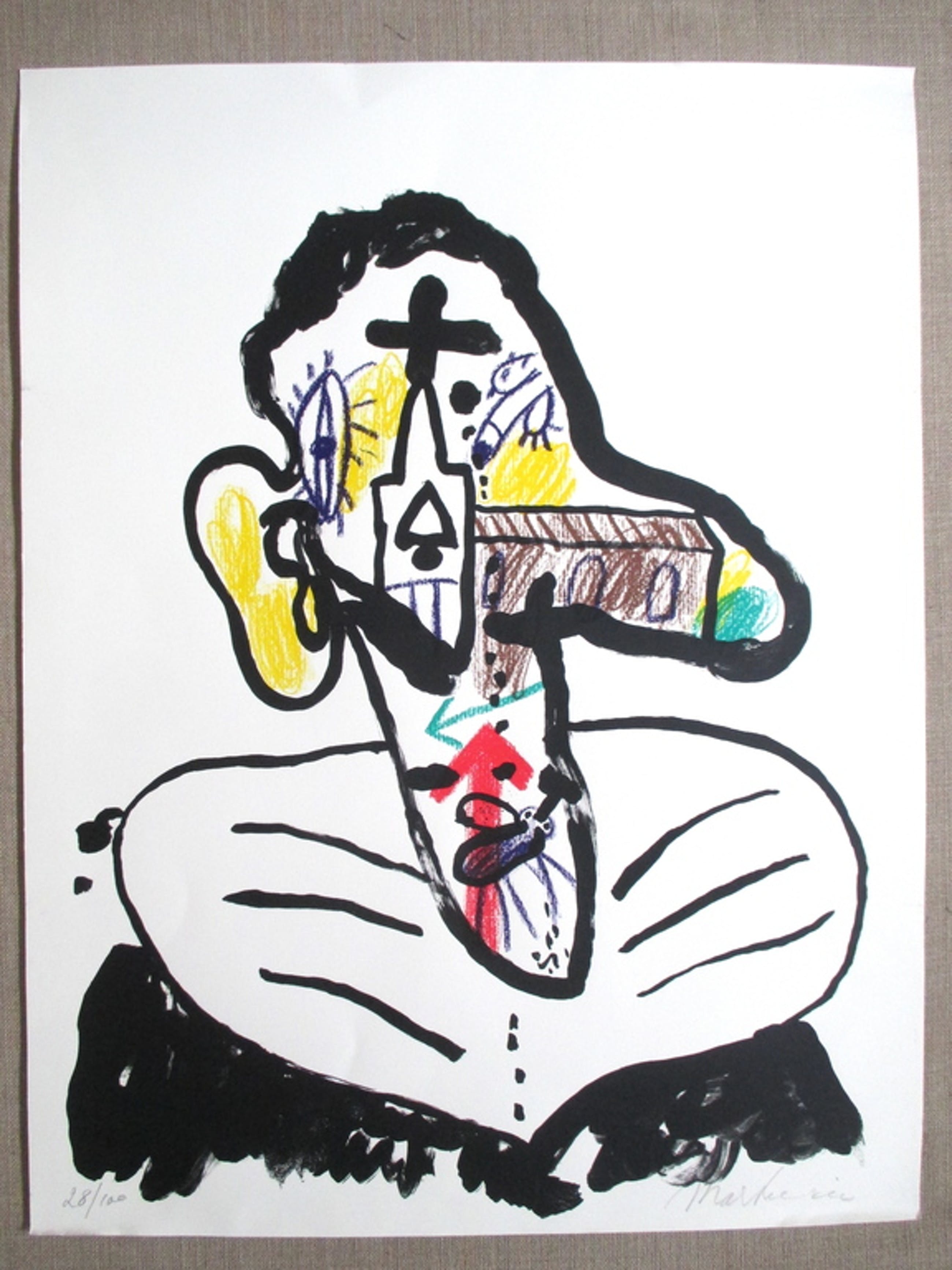 Kleurenzeefdruk uit 1997 van Anton Martineau. Genummerd 28/100 en gesigneerd in potlood. Dit was een uitgave t.g.v het 150-jarig bestaan van schilderkundig genootschap Pulchri Studio. De druk is van Bernard Ruygrok. Afm. blad 65x50 cm.