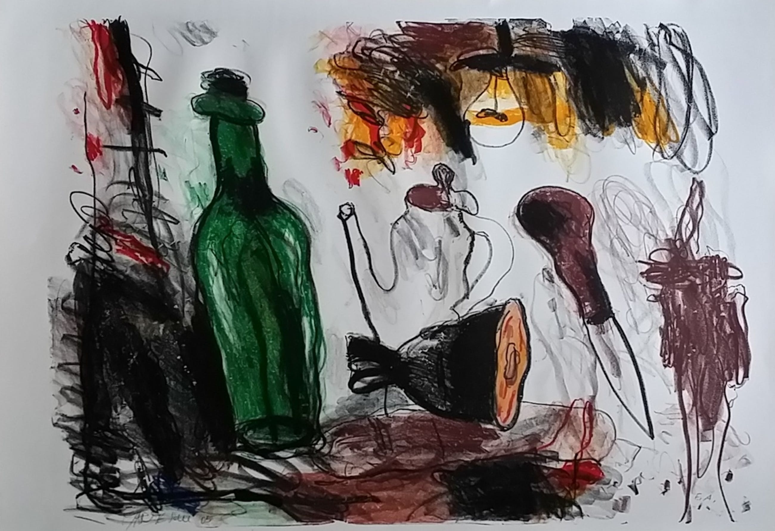 Stilleven met ham - gesigneerde zeefdruk - oplage E/A ex.