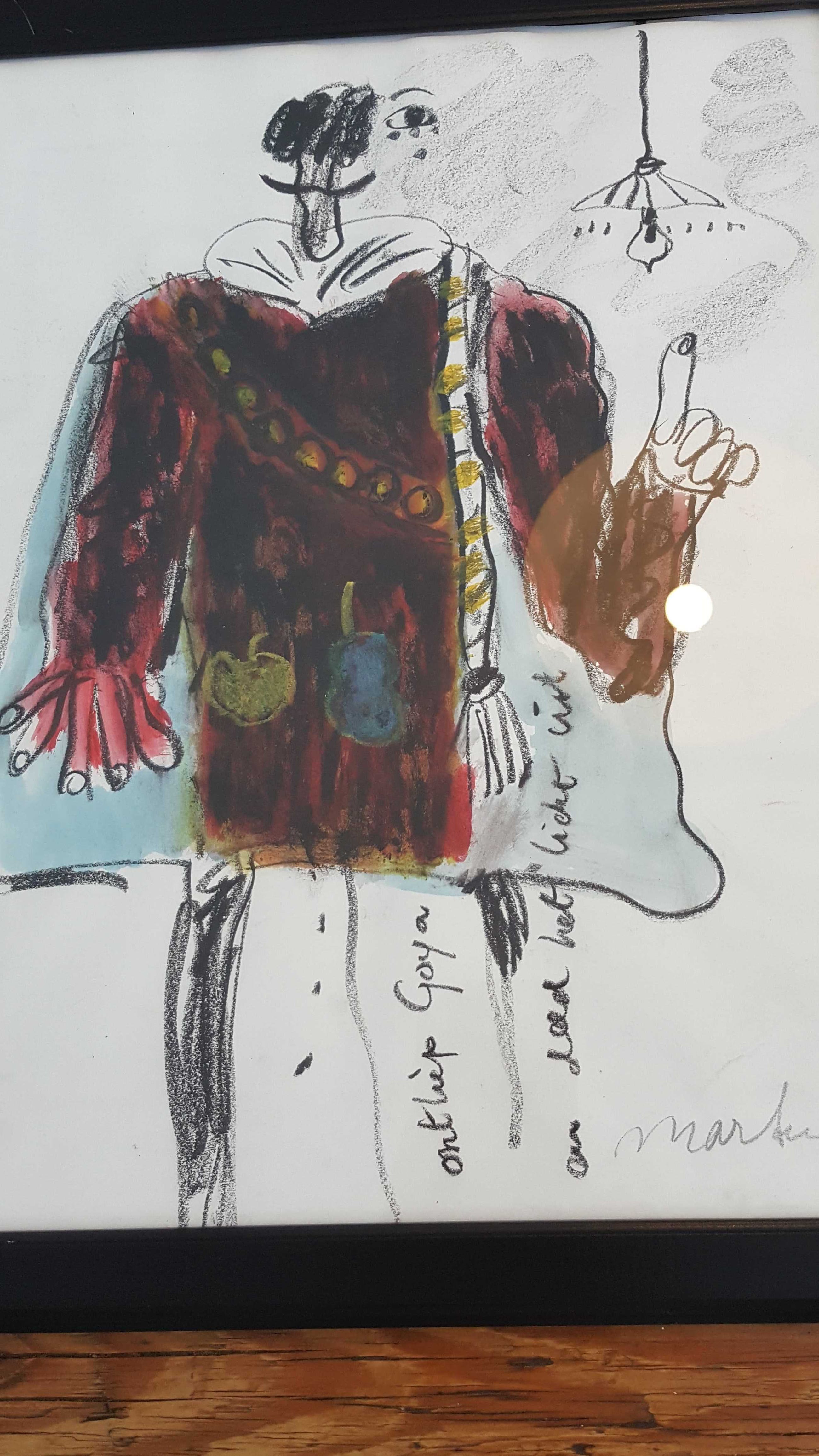 Gesigneerd rechts onder met annotatie : Ontliep Goya en deed het licht uit.