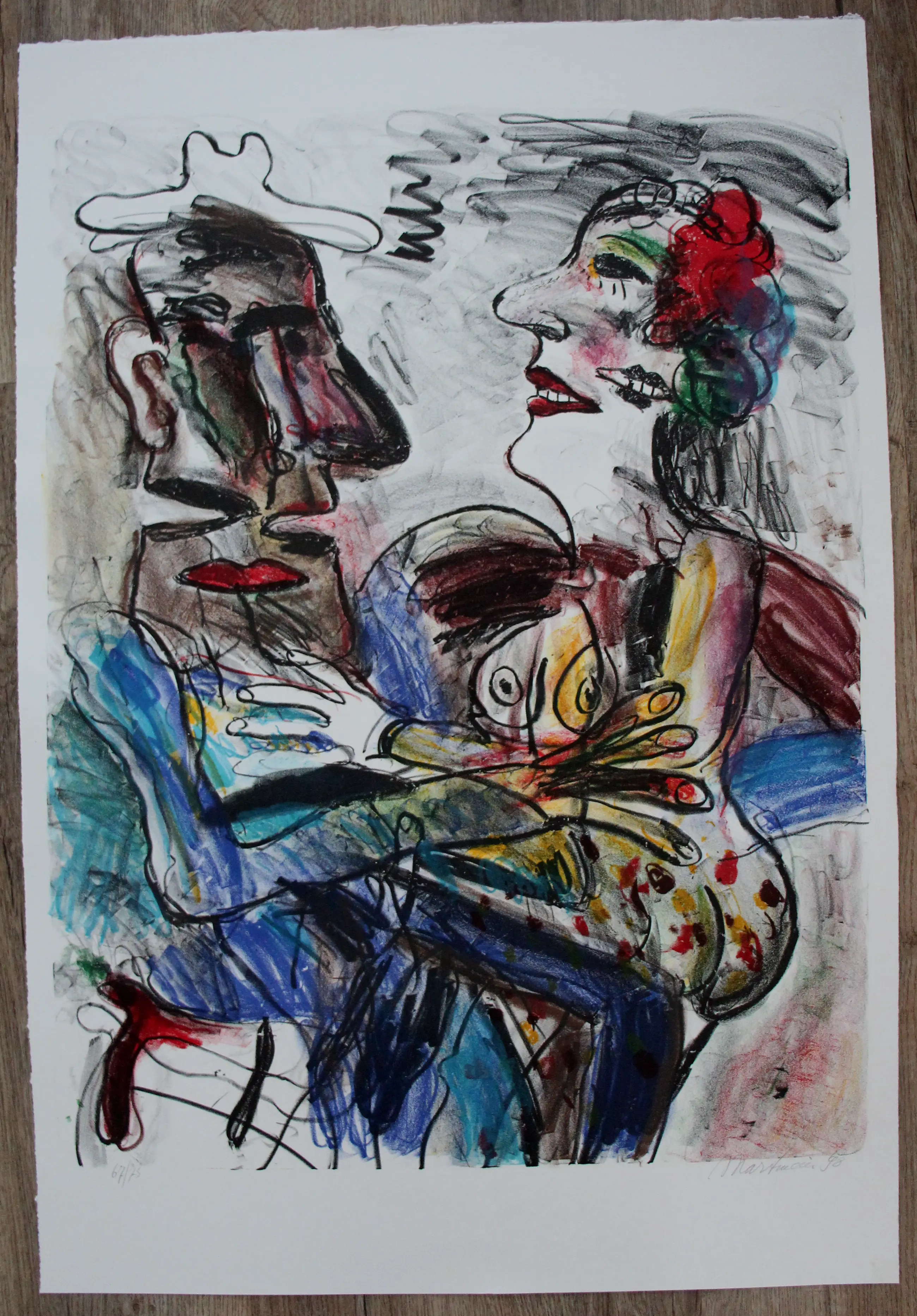 Kleurrijke litho van Anton Martineau. Titel: Appasionato IV. Jaar: 1998. Nummer: 67/75. Afmetingen voorstelling: H84 x b62cm. Afmetingen blad: H100 x b68cm.