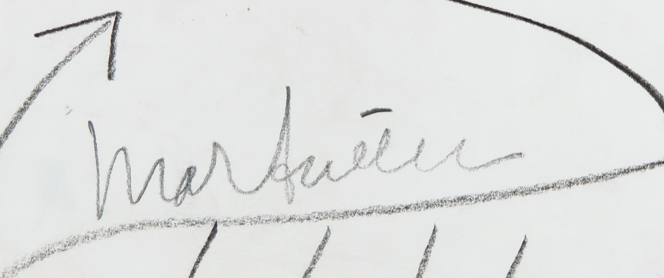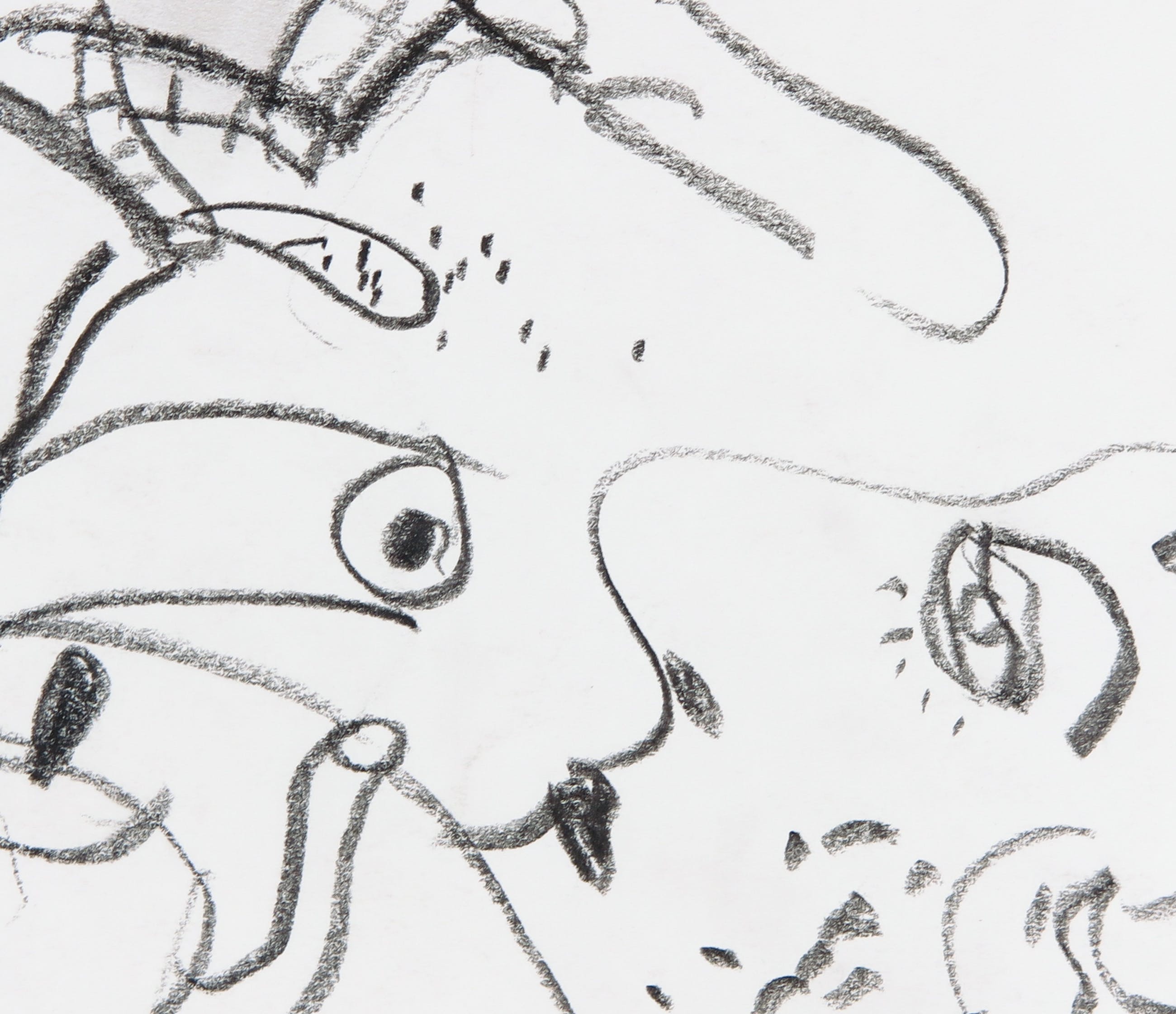 | In het beeld enkele veegjes, wat komt door het houtskool en een paar kleine vlekjes links. | |||
