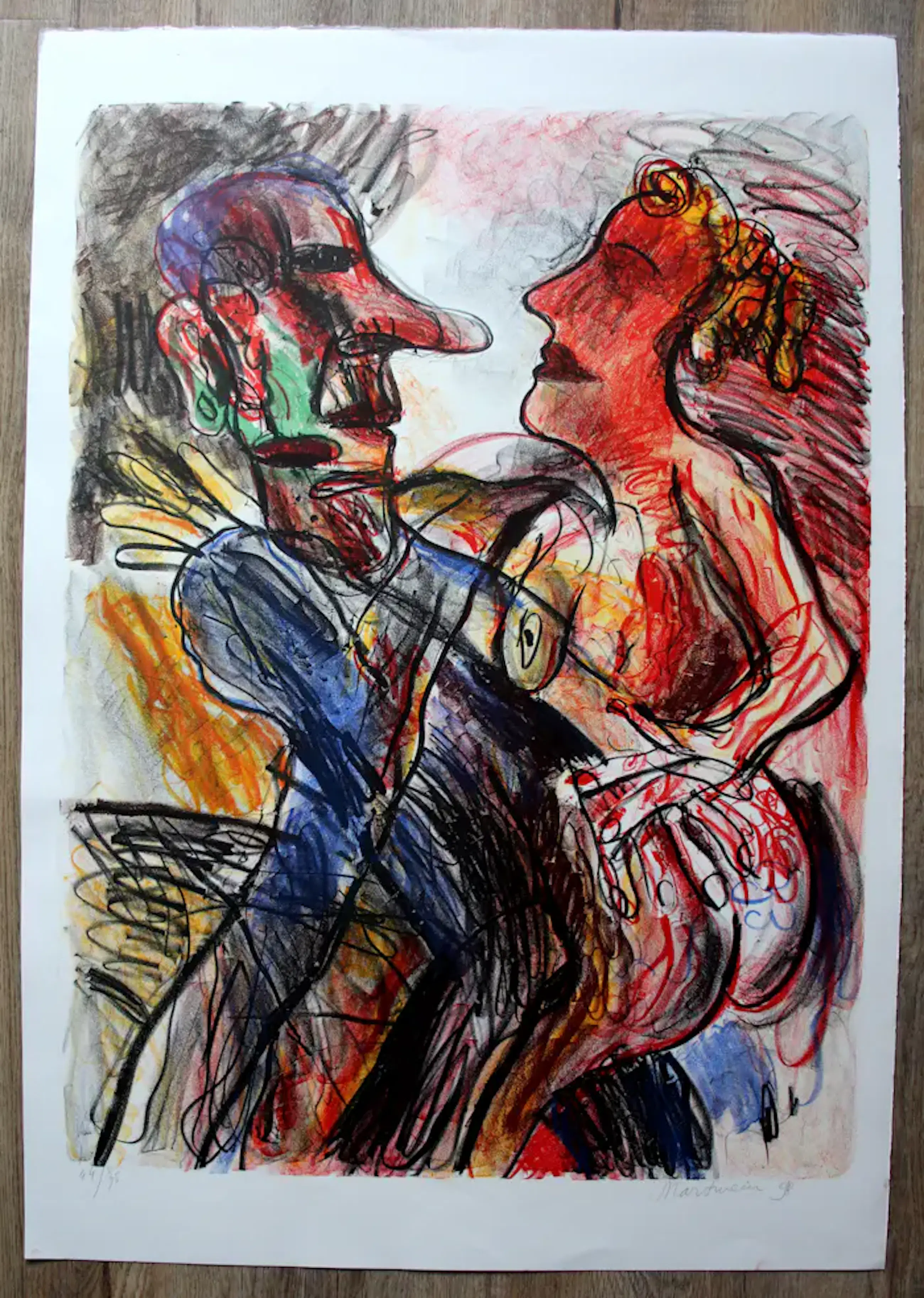 Litho van Anton Martineau uit 1998. Oplage: 44/75. Afmetingen blad: H100 x b72cm. Afmetingen voorstelling: H86 x b63cm. Het werk is rechts onderaan, met potlood gesigneerd, door de kunstenaar. De authenticiteit van het aangeboden werk wordt volledig gegarandeerd. Een certificaat van echtheid kan, op aanvraag worden gemaild.