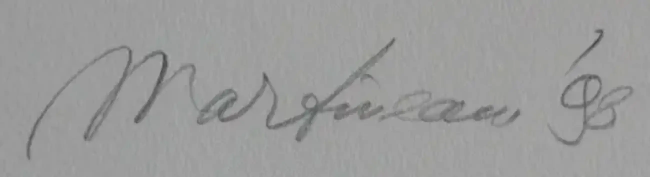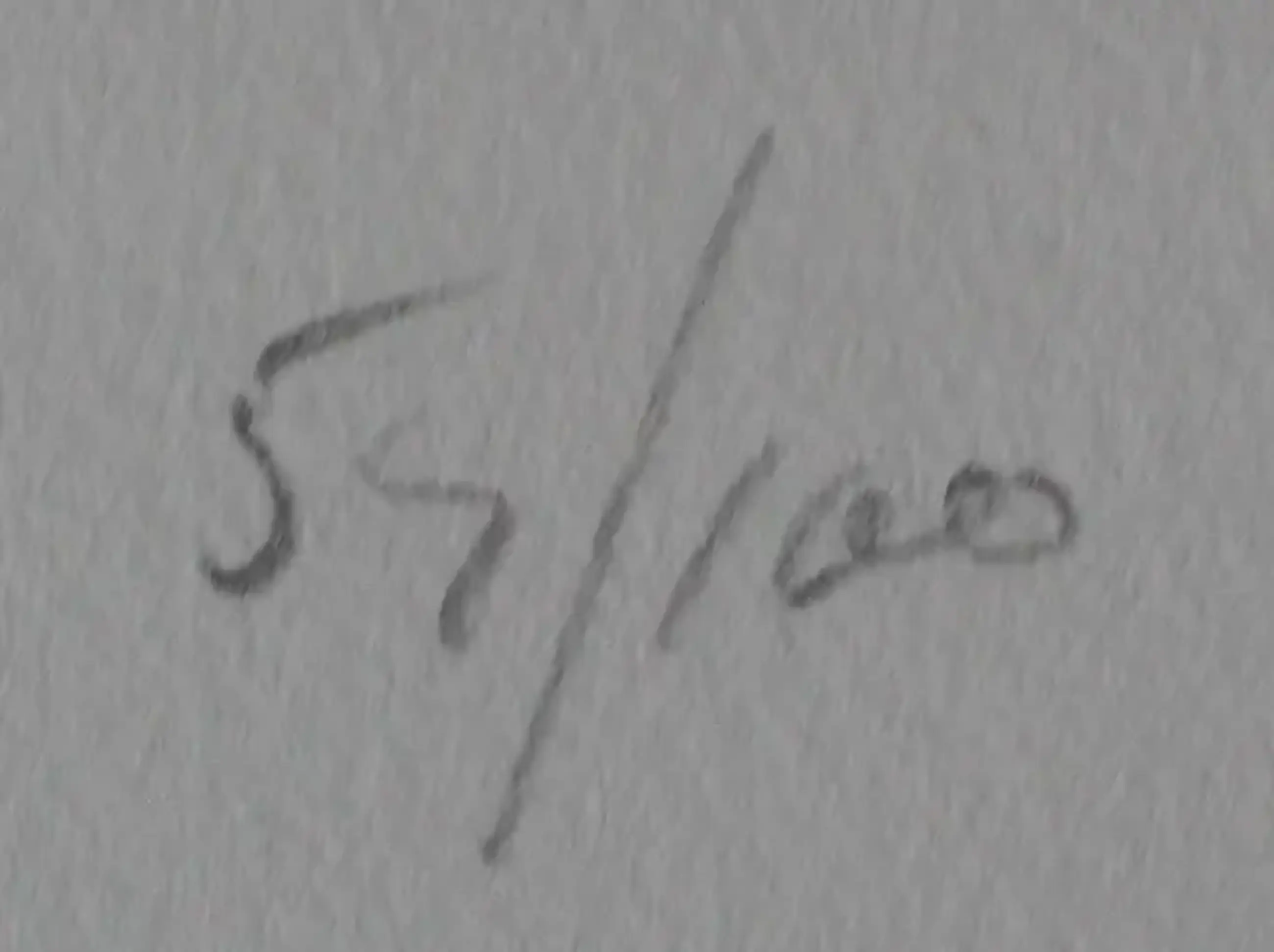 Het werk is rechts onderaan, gesigneerd door de kunstenaar. De authenticiteit van het, aangeboden, werk wordt volledig gegarandeerd. Een certificaat van echtheid kan, op aanvraag, worden gemaild.