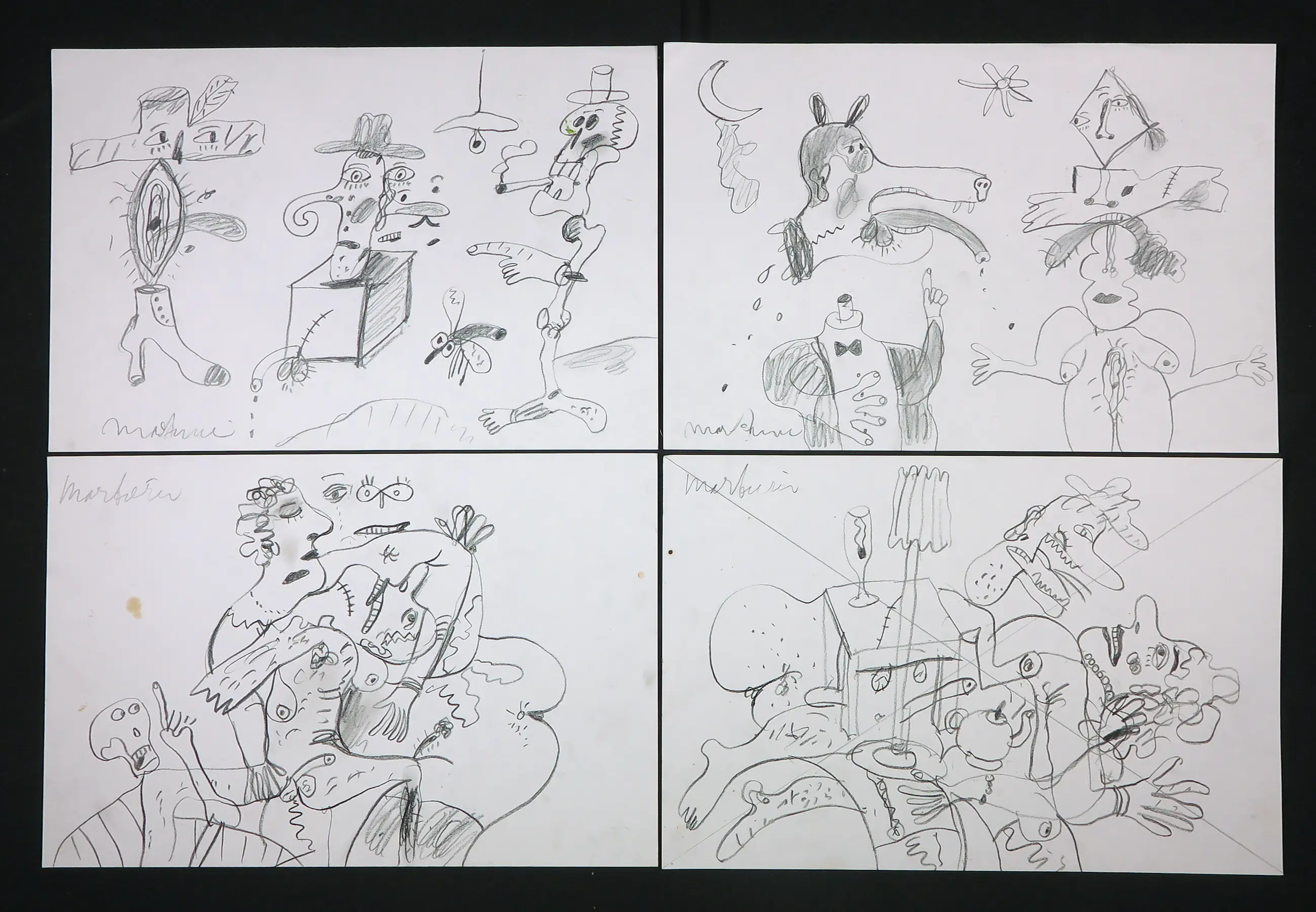 Lot van 4 unieke werken op papier van Anton Martineau (potlood/krijt).