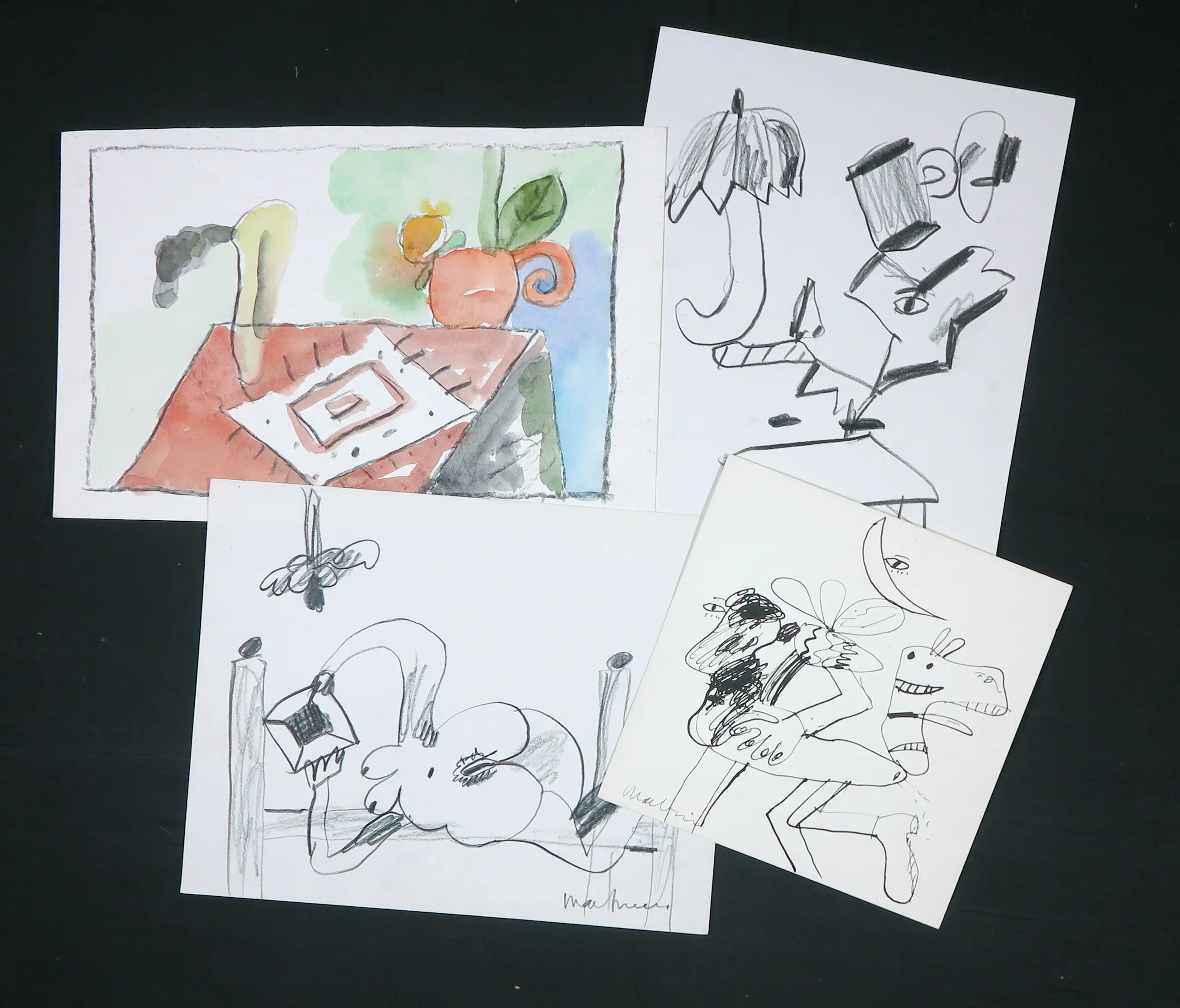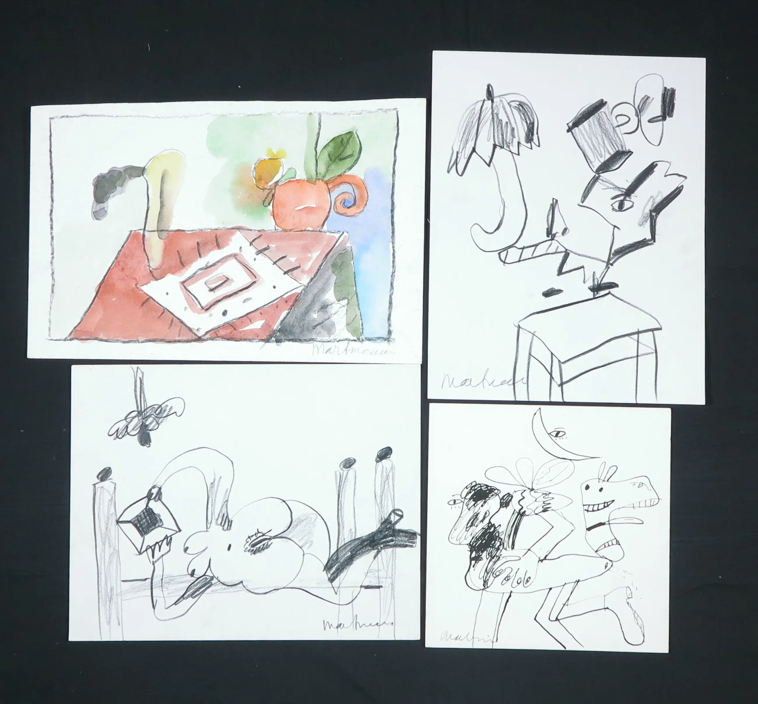 Lot van 4 unieke werken op papier van Anton Martineau.