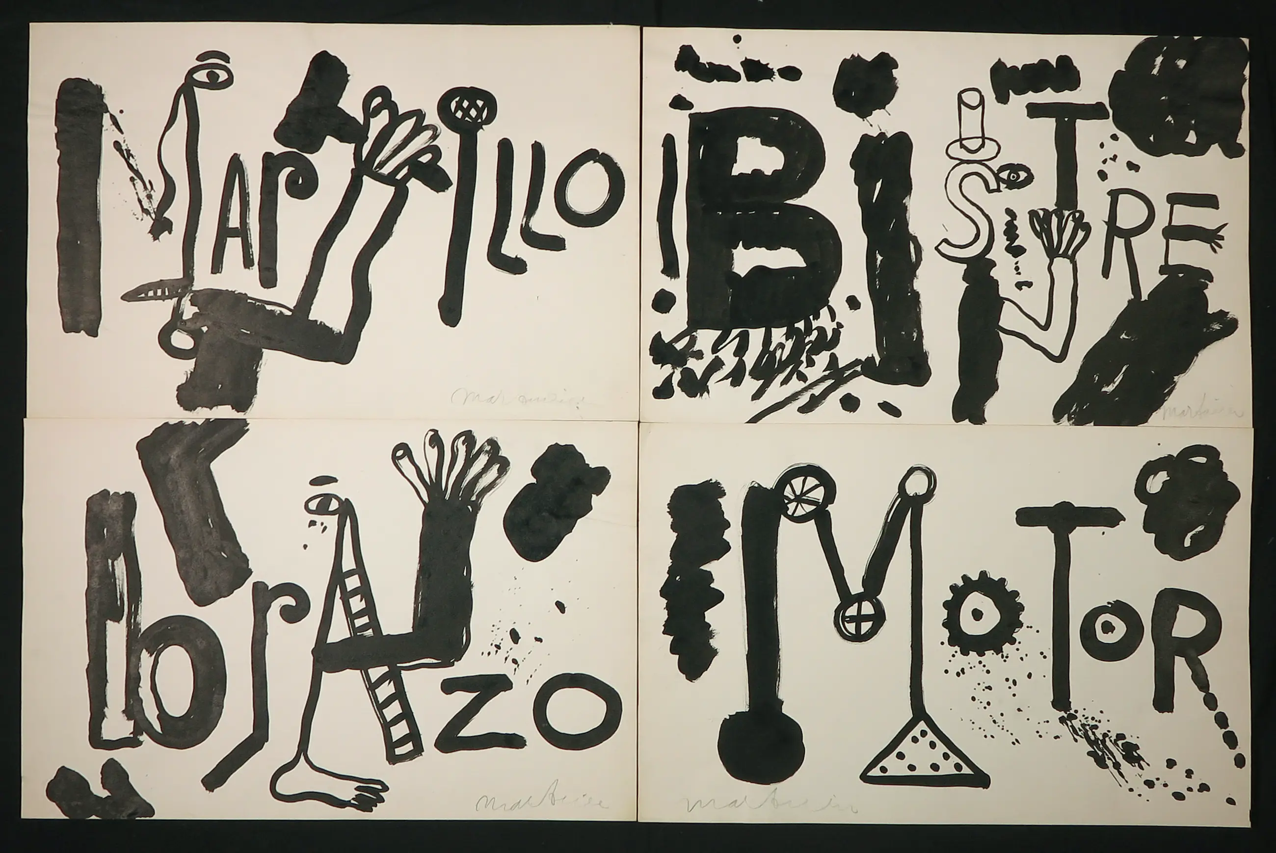 Lot van 4 unieke werken op papier van Anton Martineau.