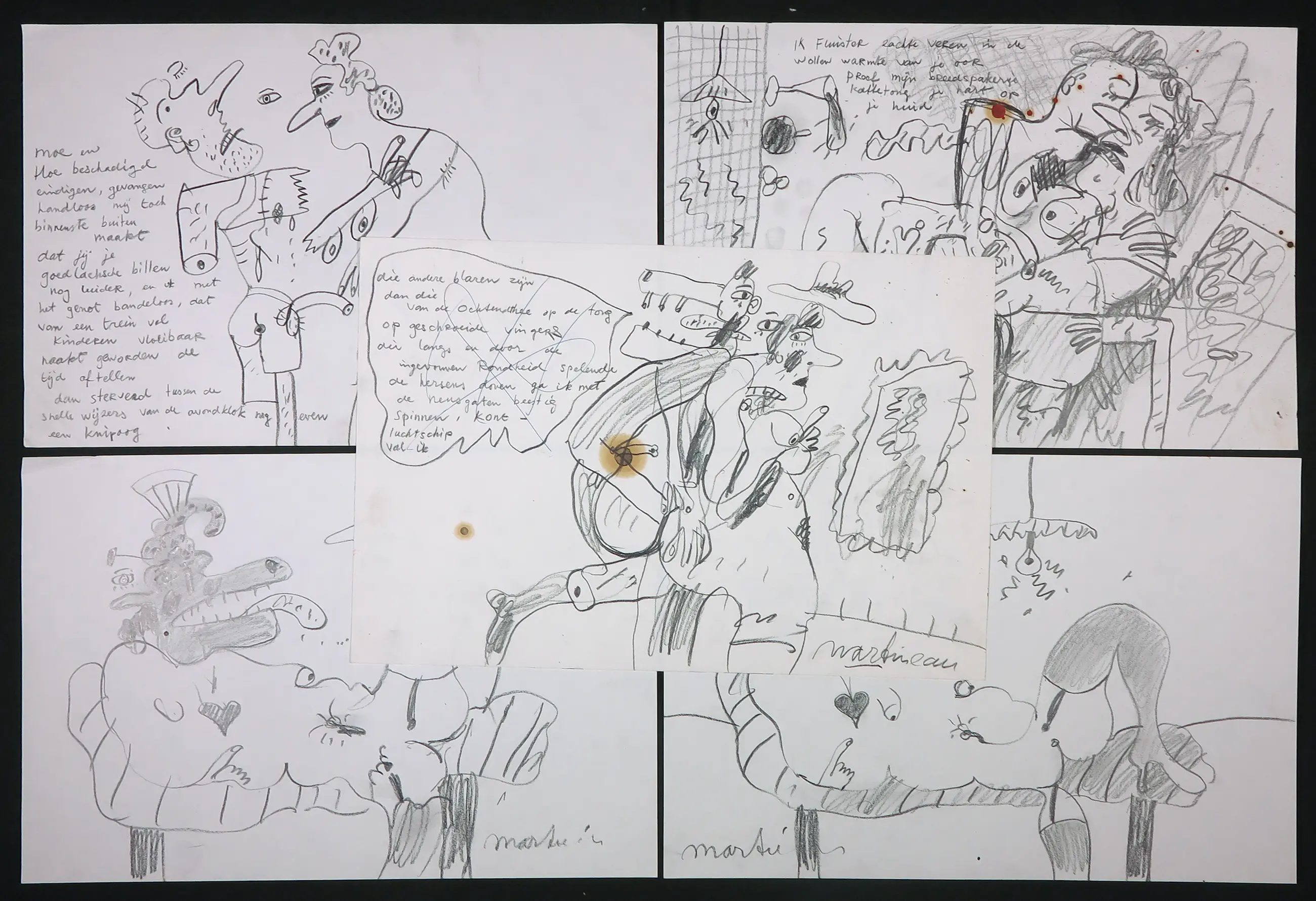 Lot van 5 unieke werken op papier van Anton Martineau (potlood/krijt).