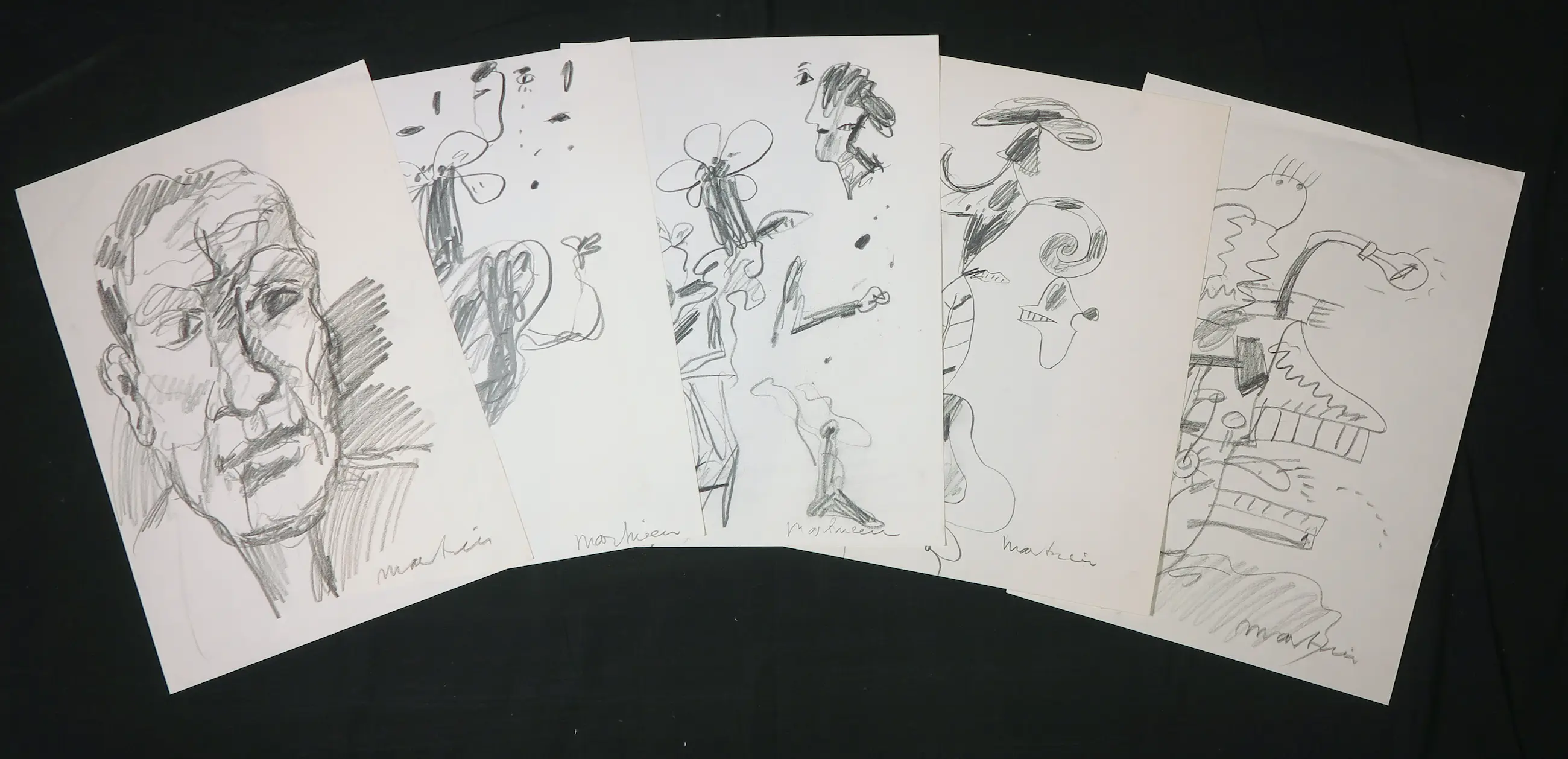 Lot van 5 unieke werken op papier van Anton Martineau.