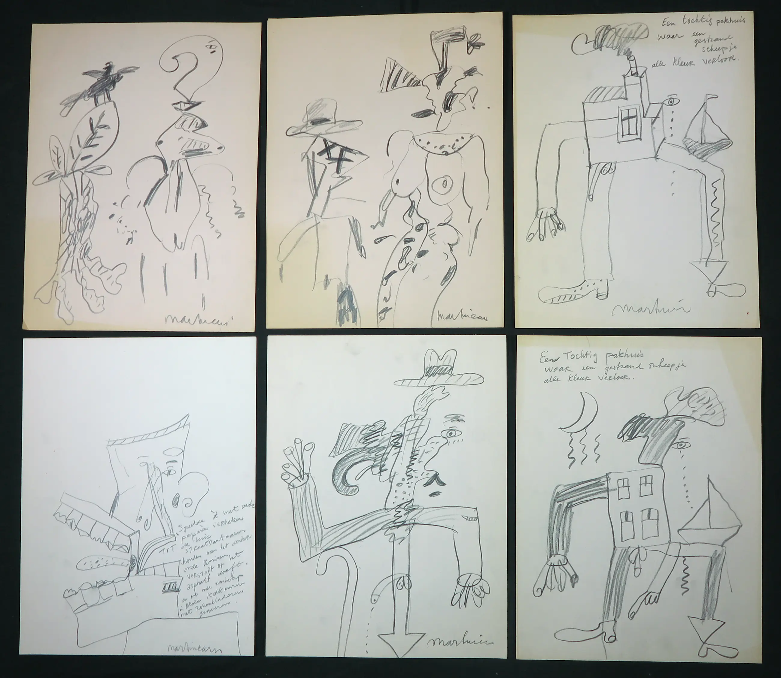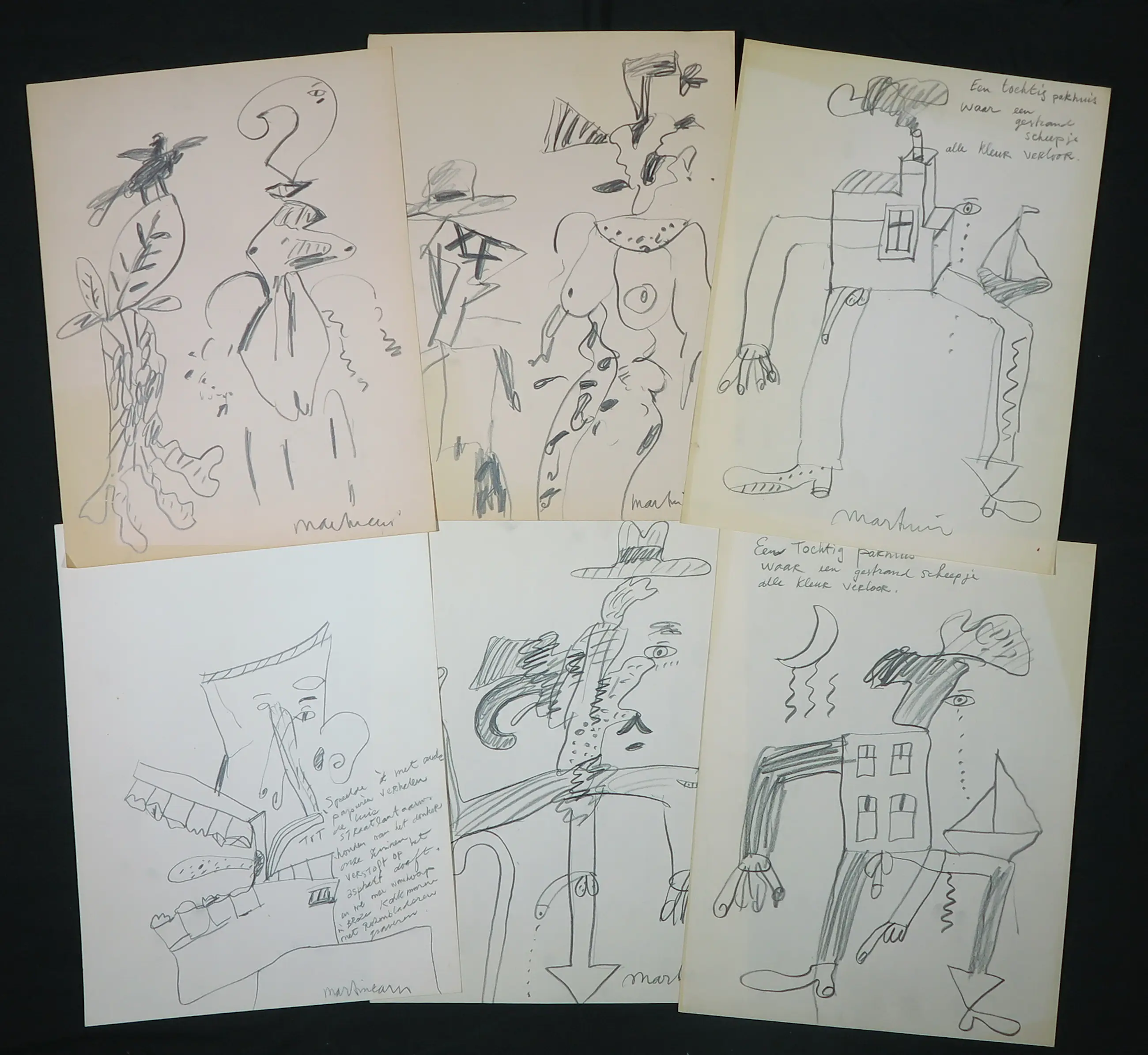 Lot van 6 unieke werken op papier van Anton Martineau (potlood).