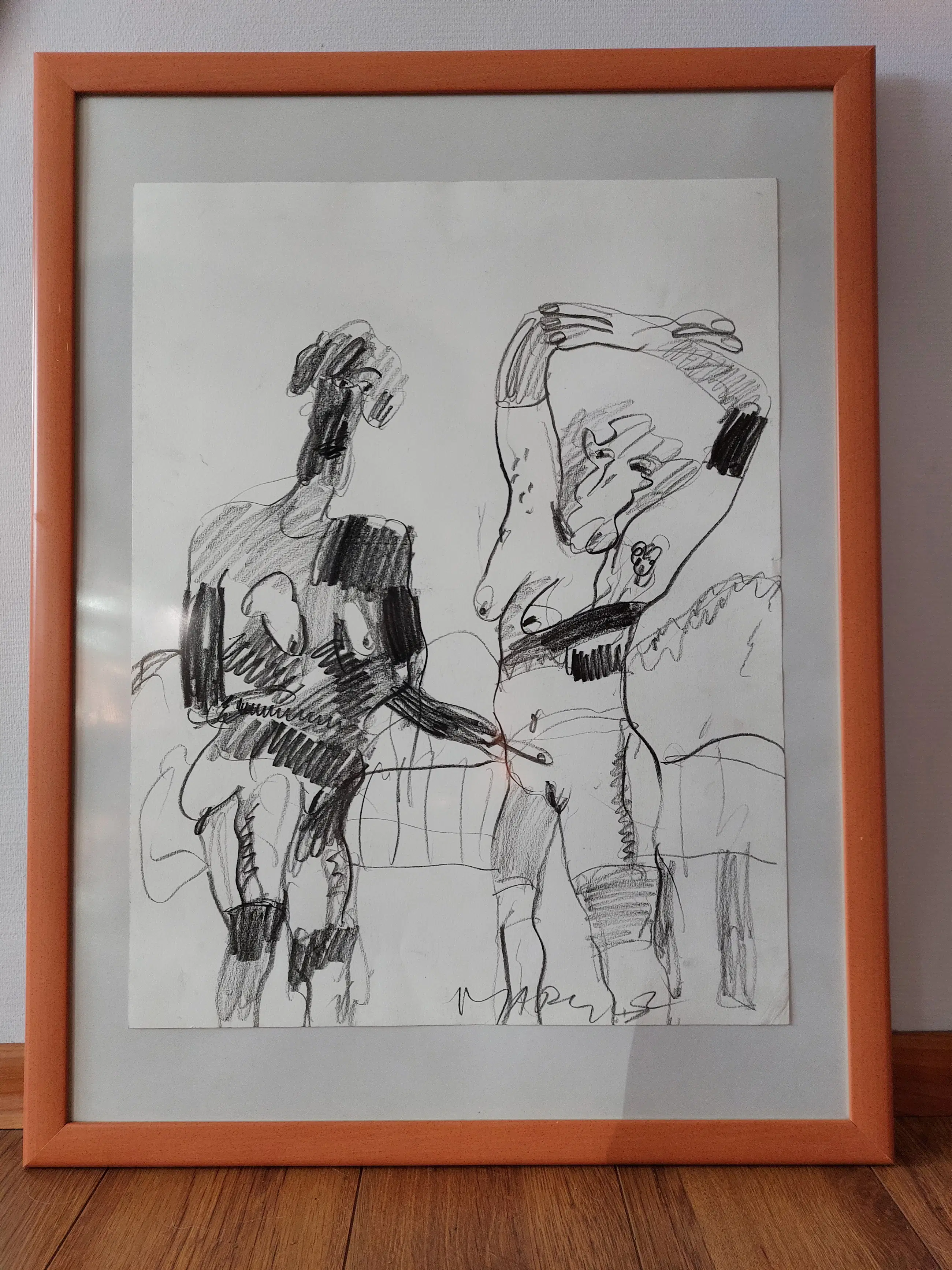 Inkt tekening van 65 x 50 cm. Mooi ingelijst. 80 x 60 cm.