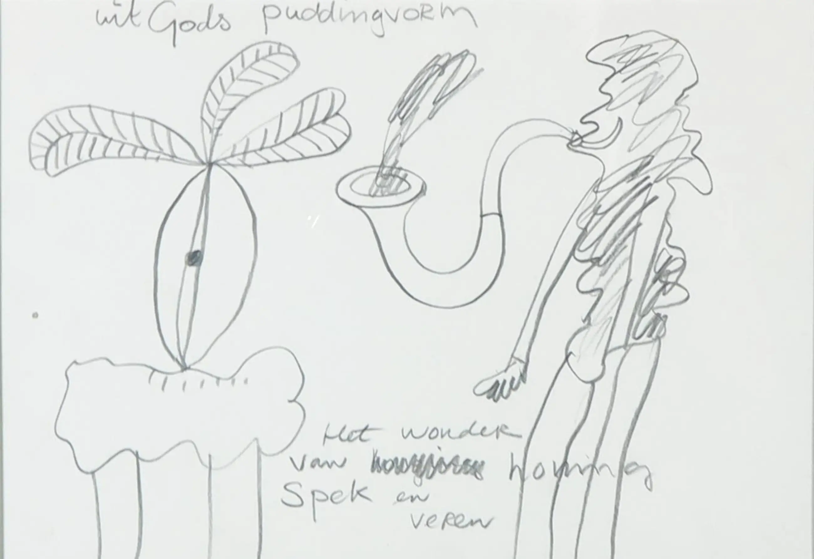Anton Martineau - Potloodtekening, Uit Gods puddingvorm - Verkocht