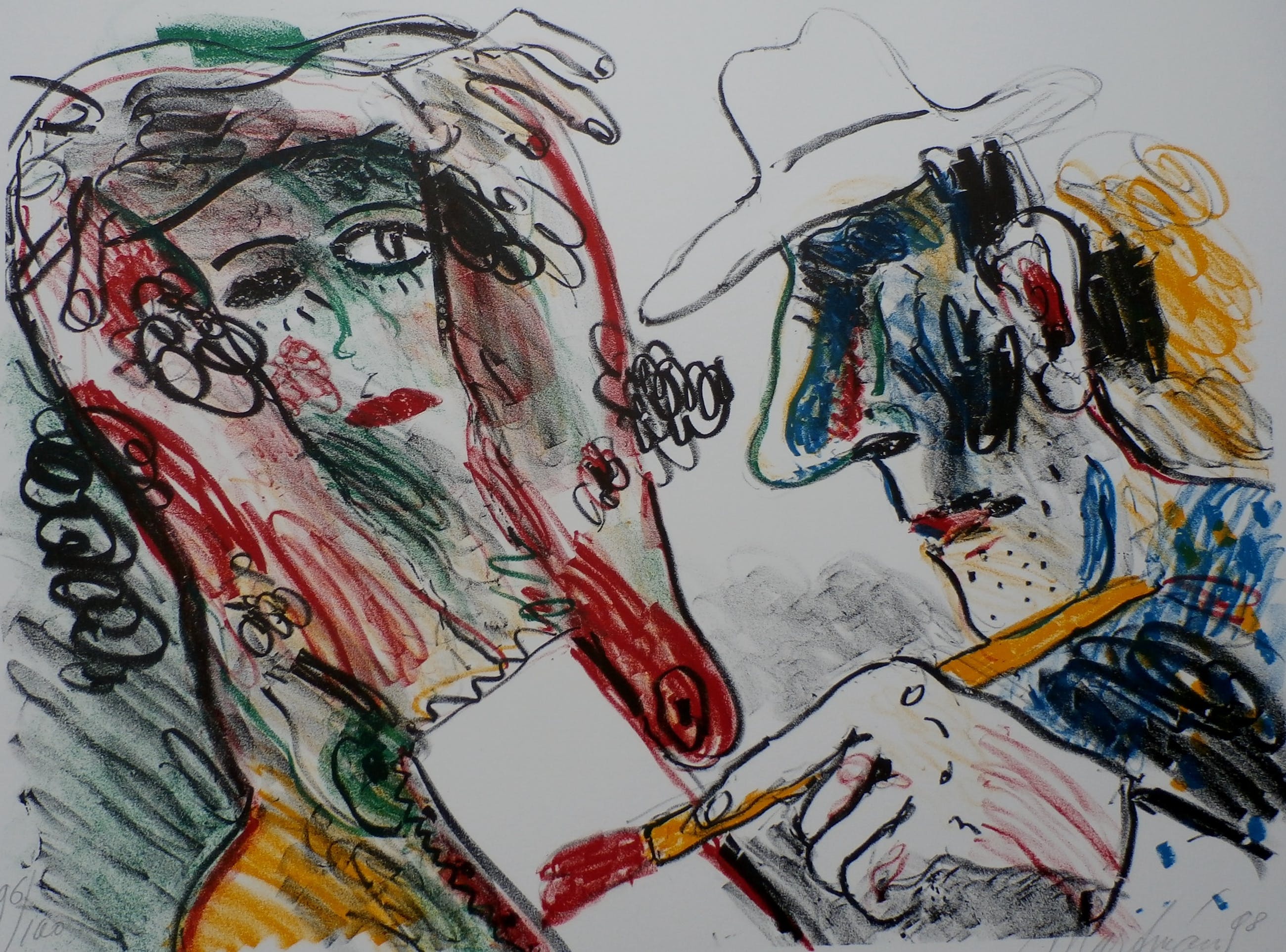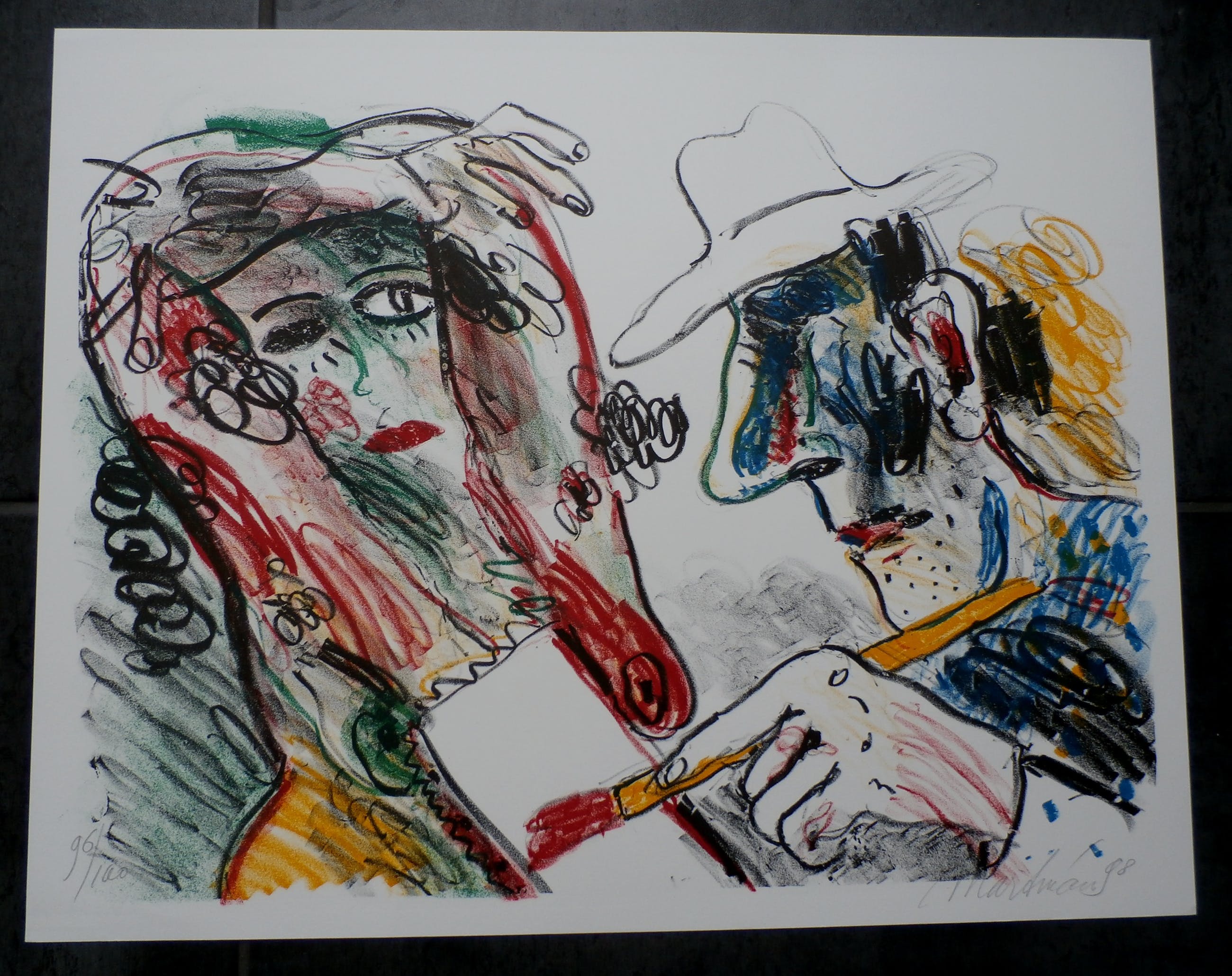 Kleurrijke zeefdruk van Anton Martineau. Deze zeefdruk is speciaal uitgegeven voor het Cobra Museum in Amstelveen. Daar had hij in 1999 een tentoonstelling. De oplage is uitverkocht. Nummer: 96/100. De oplage is slechts 100 stuks. Afmetingen: H45 x b56 cm. De authenticiteit van het, aangeboden, werk wordt voor 100% gegarandeerd. Een certificaat van echtheid kan, op aanvraag, worden meegestuurd.