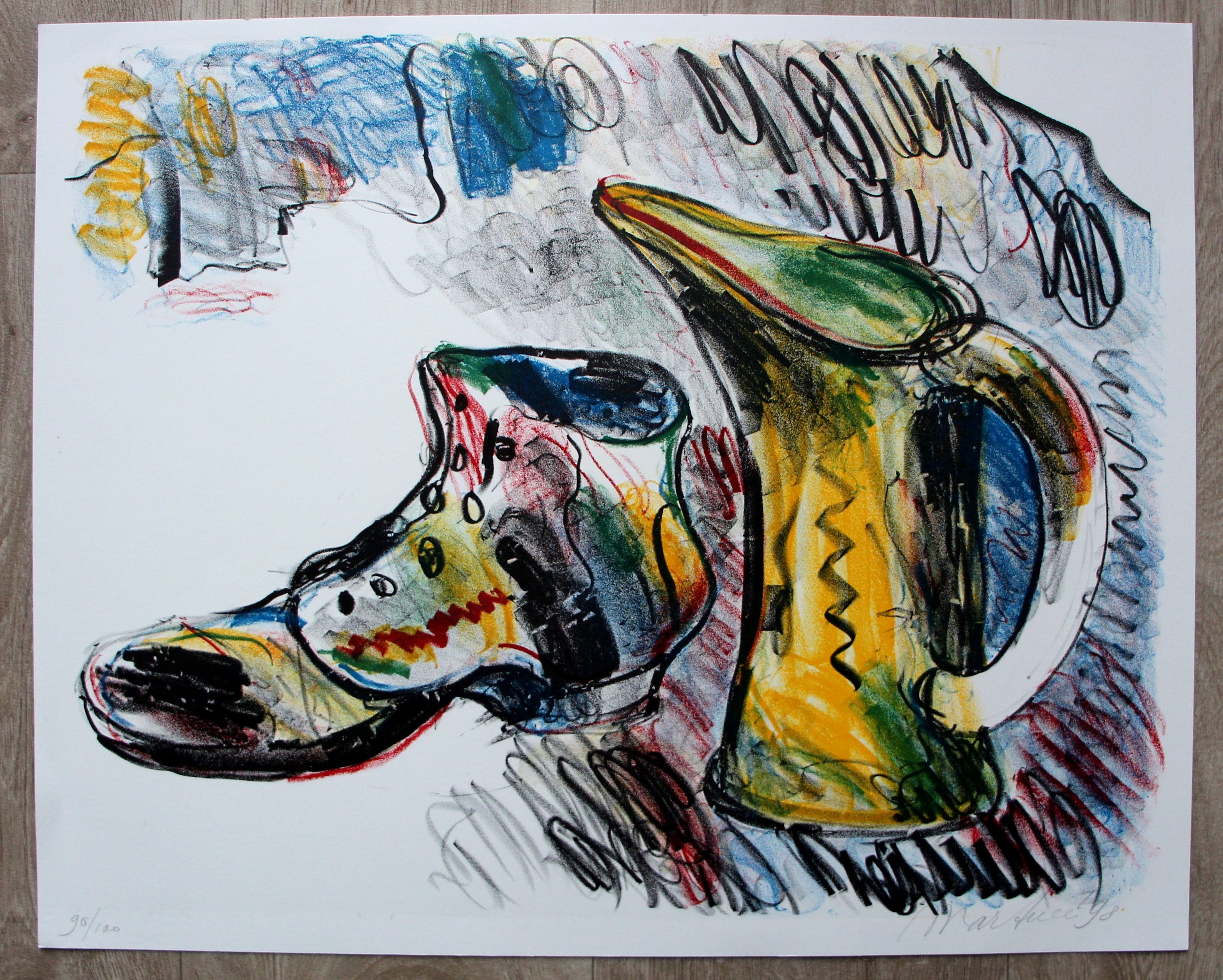 Kleurrijke zeefdruk van Anton Martineau. Deze zeefdruk is speciaal uitgegeven voor het Cobra Museum in Amstelveen. Daar had hij in 1999 een tentoonstelling. De oplage is uitverkocht. Nummer: 88/100. De oplage is slechts 100 stuks. Afmetingen: H45 x b56 cm. De authenciteit van het, aangeboden, werk wordt voor 100% gegarandeerd. Een certificaat van echtheid kan, op aanvraag, worden gemaild.