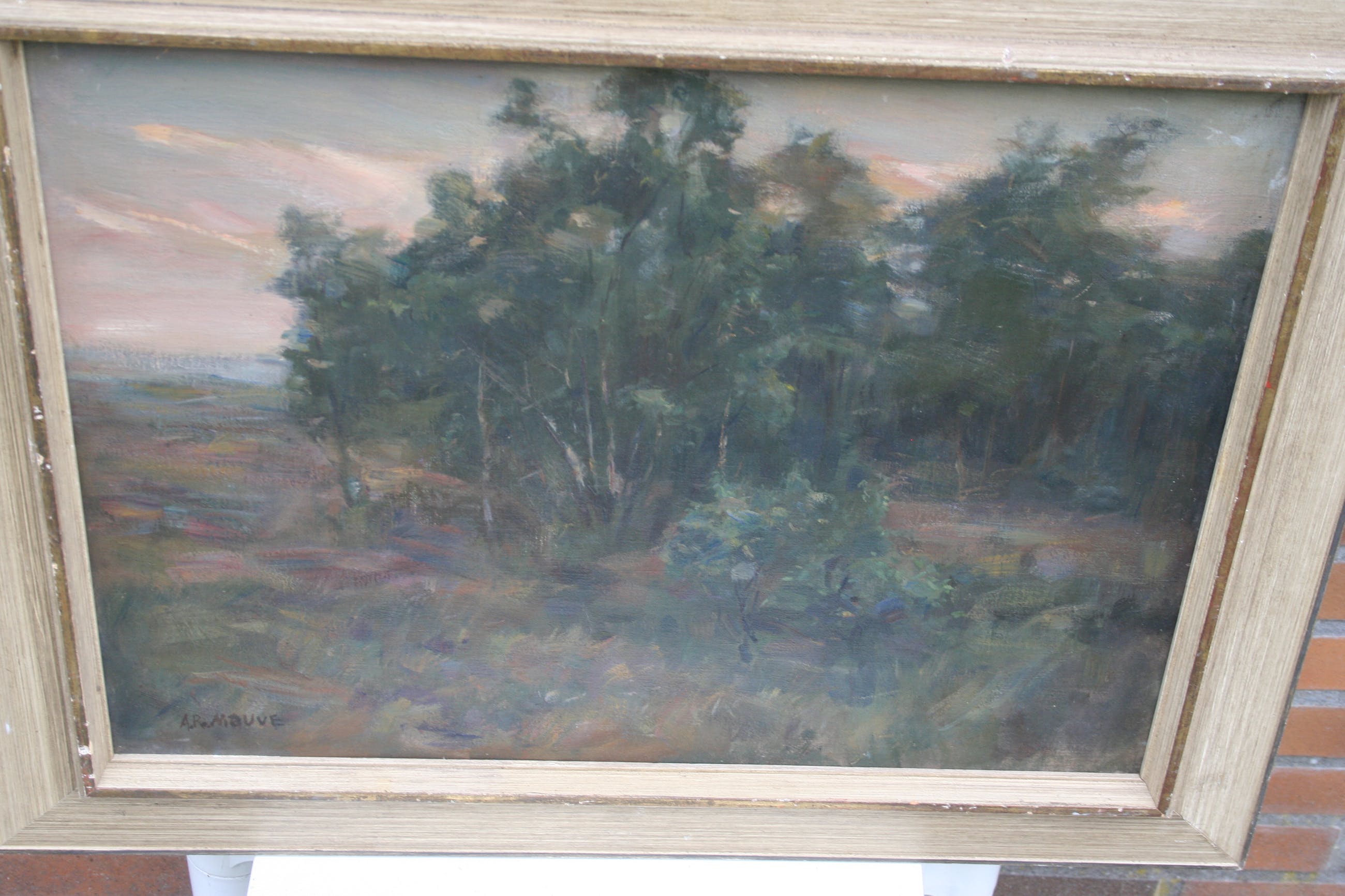 A.R. Mauve was een zoon van de beroemde schilder Anton Mauve,een leraar van Van Gogh.Mauve junior schilderde landschappen,zeegezichten en portretten.Hij was lid van de Gooise schildersvereniging.Ook dit schilderij is waarschijnlijk in het Gooi geschilderd.