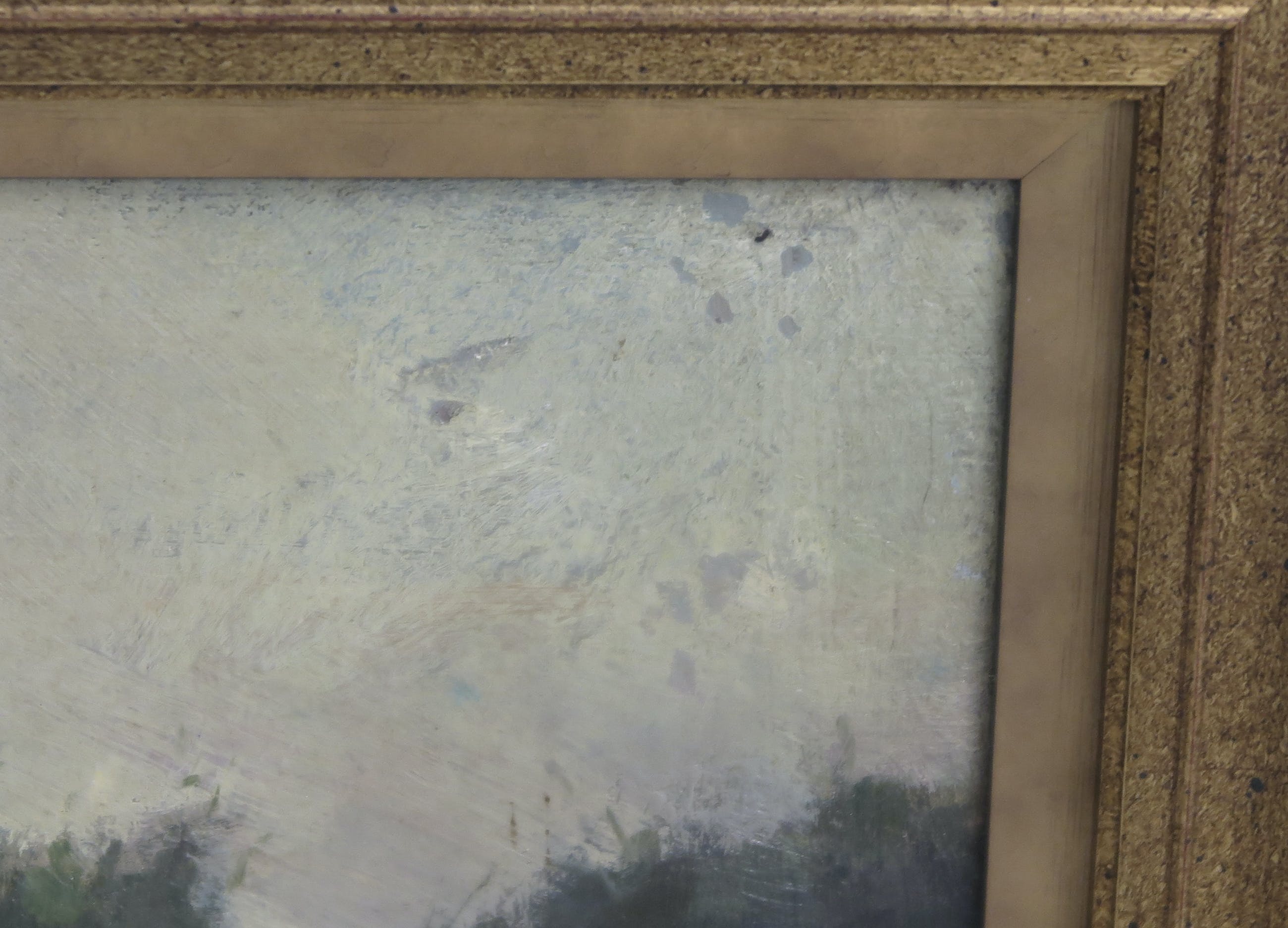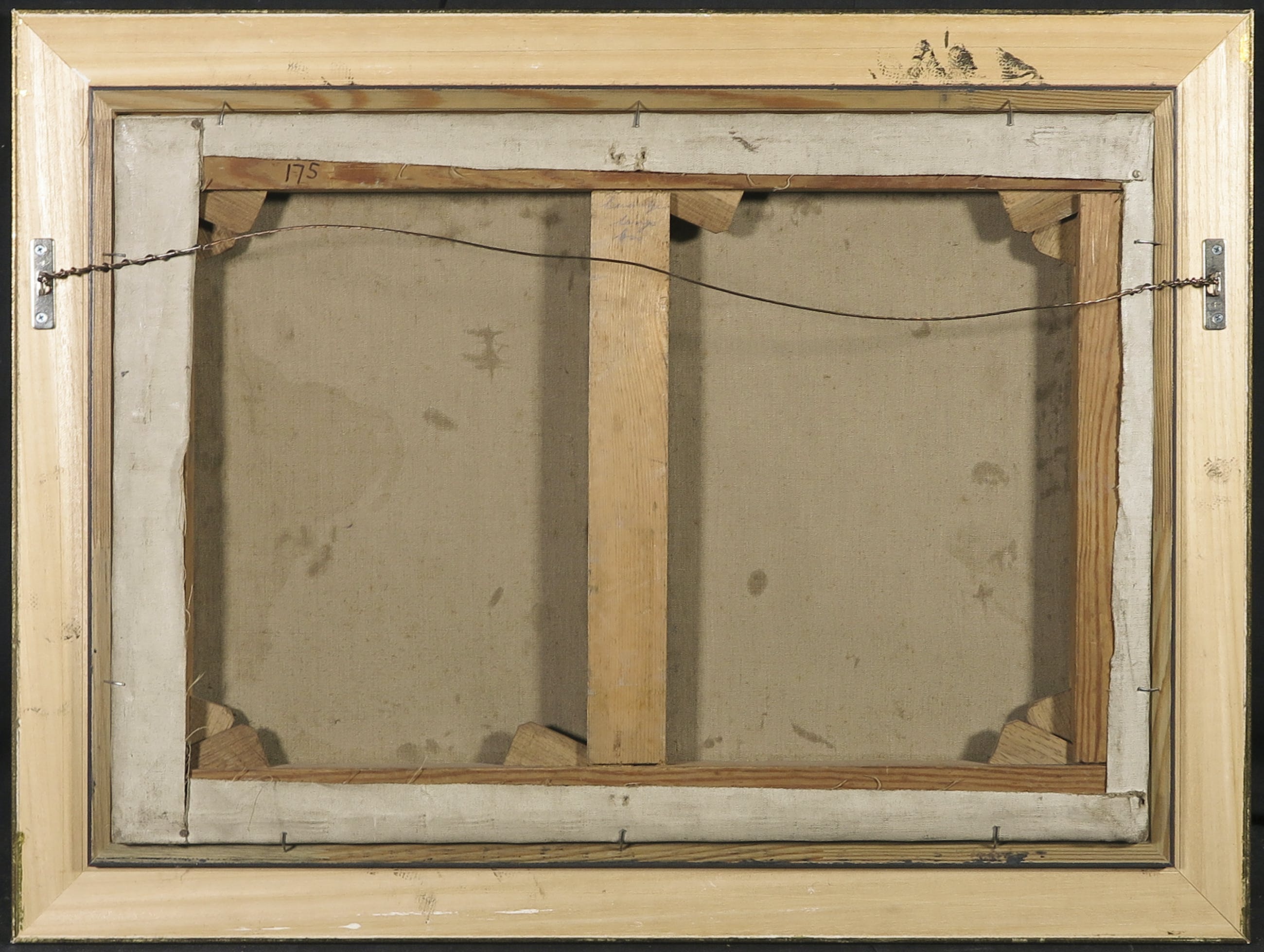 | Het doek verkeert in goede staat. Langs de rand en in de hoek rechtsboven een enkele zeer lichte beschadiging (lacune) van de bovenste verflaag. Zie ook detailfoto. | |