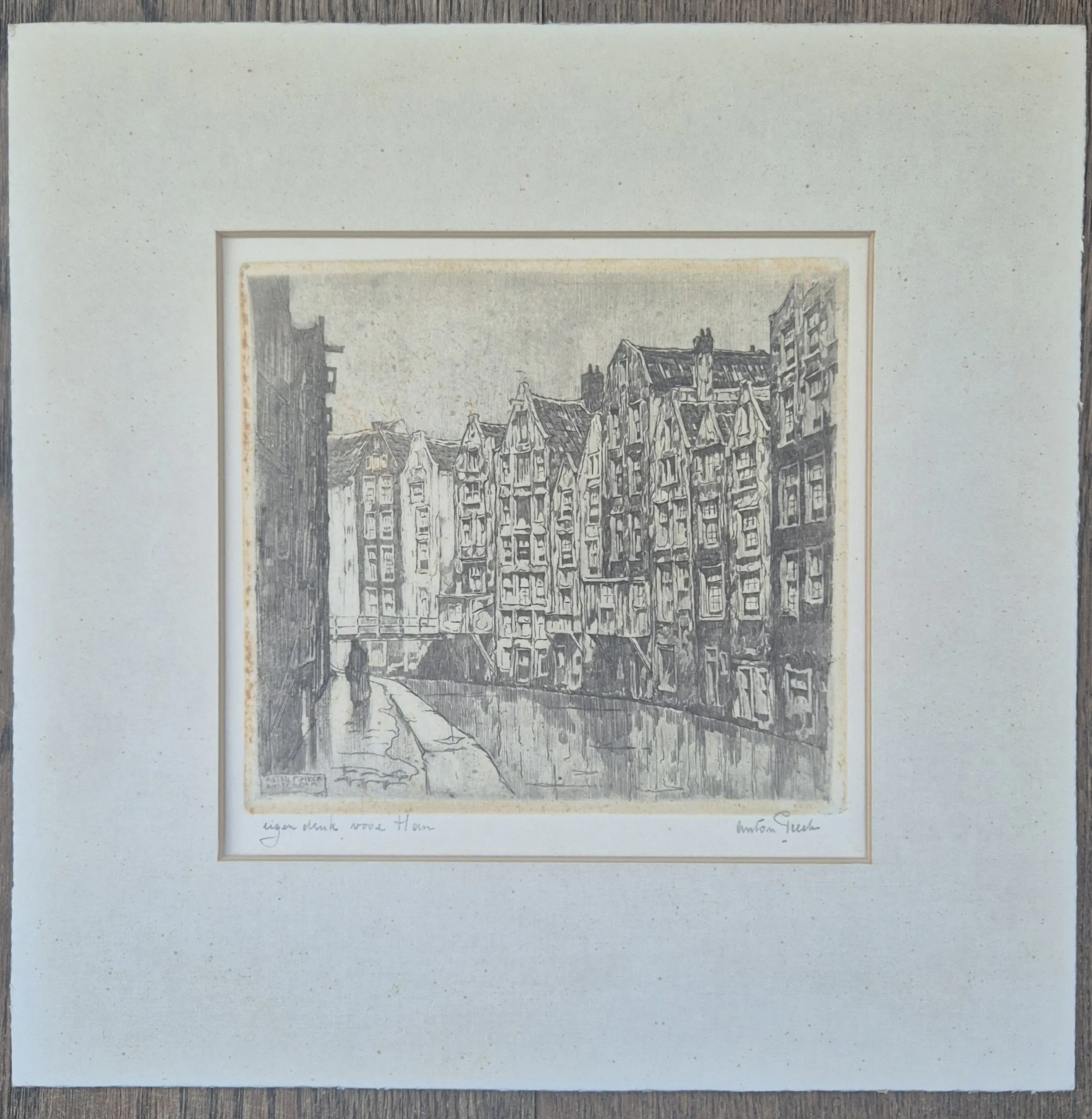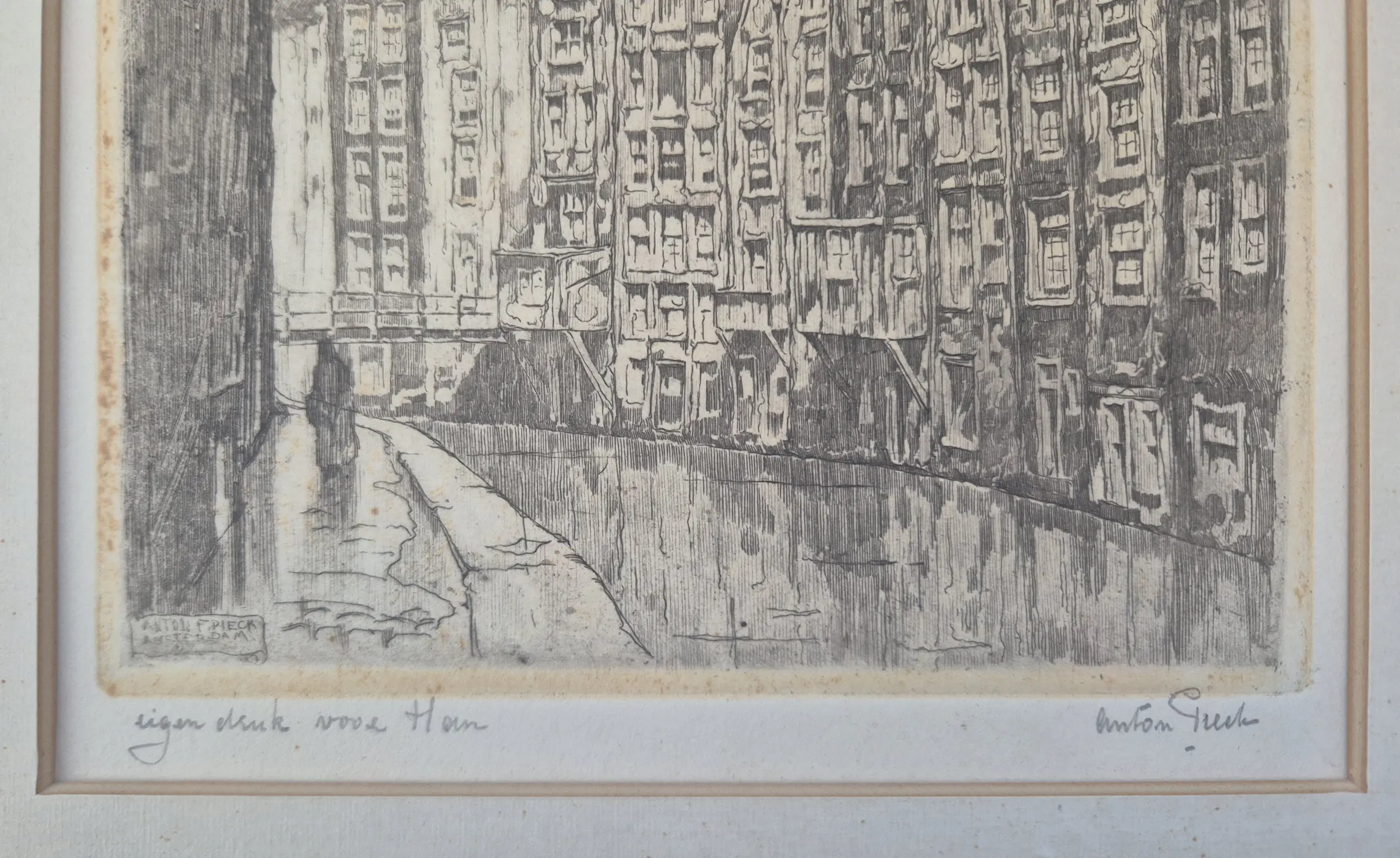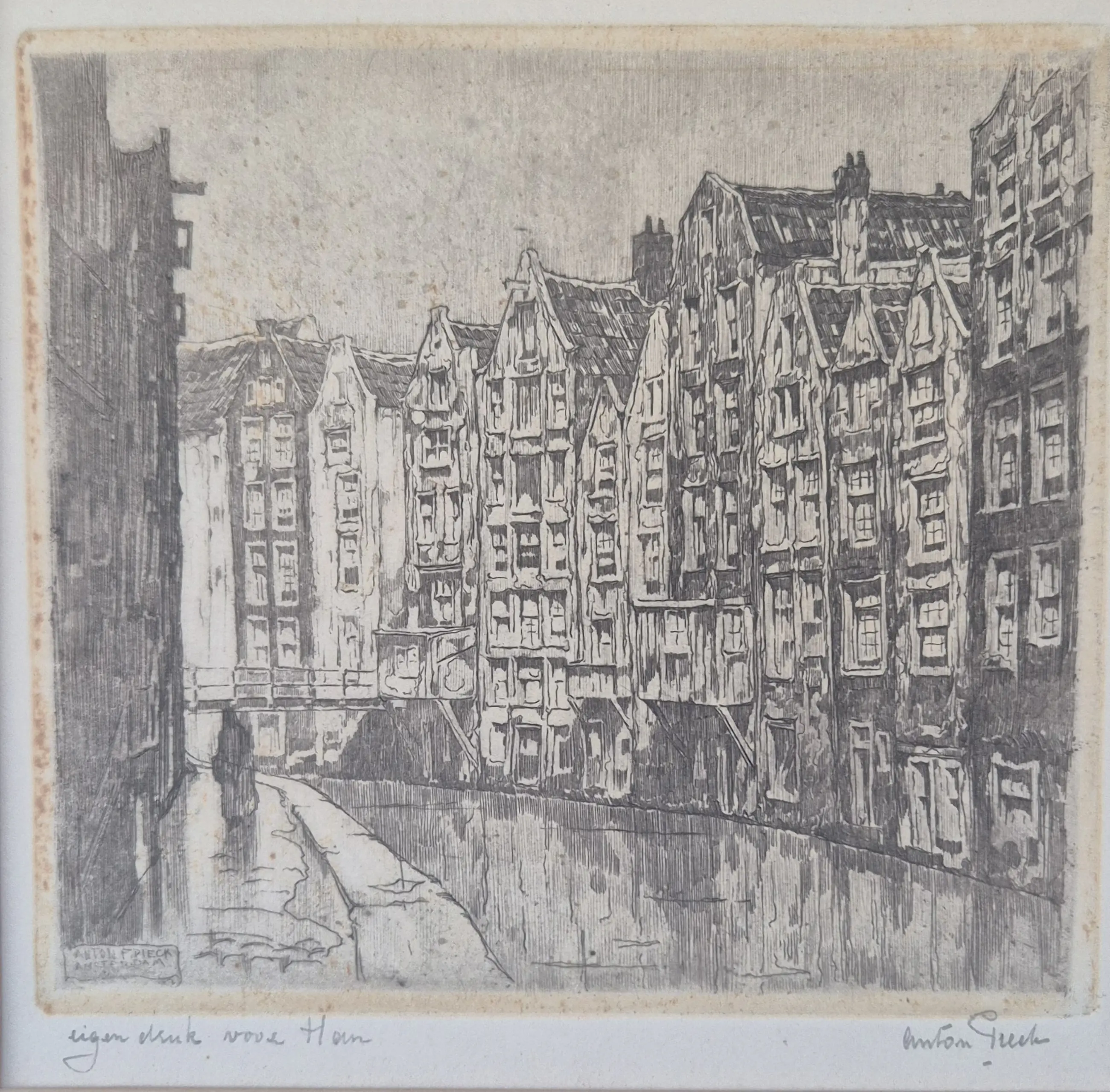 Anton Pieck - Amsterdamse gracht - eigen druk met opdracht
