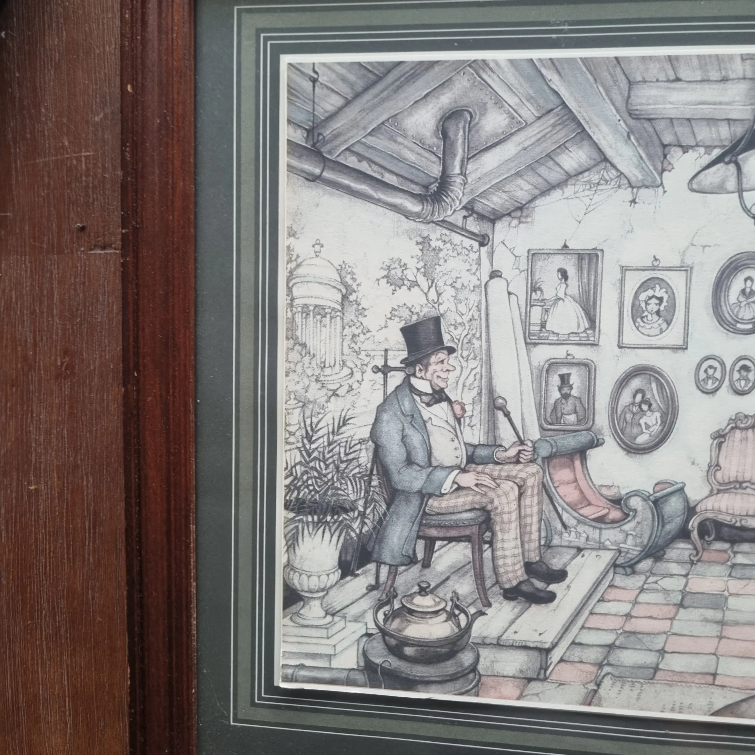 Een originele bijzondere tekening die er gewoon weer piekfijn uitziet met .met oog voor detail en fantasie. De strakke Passe-partout met de lijst erom heen .bied bijna werkelijkheid ( met een knip oog )