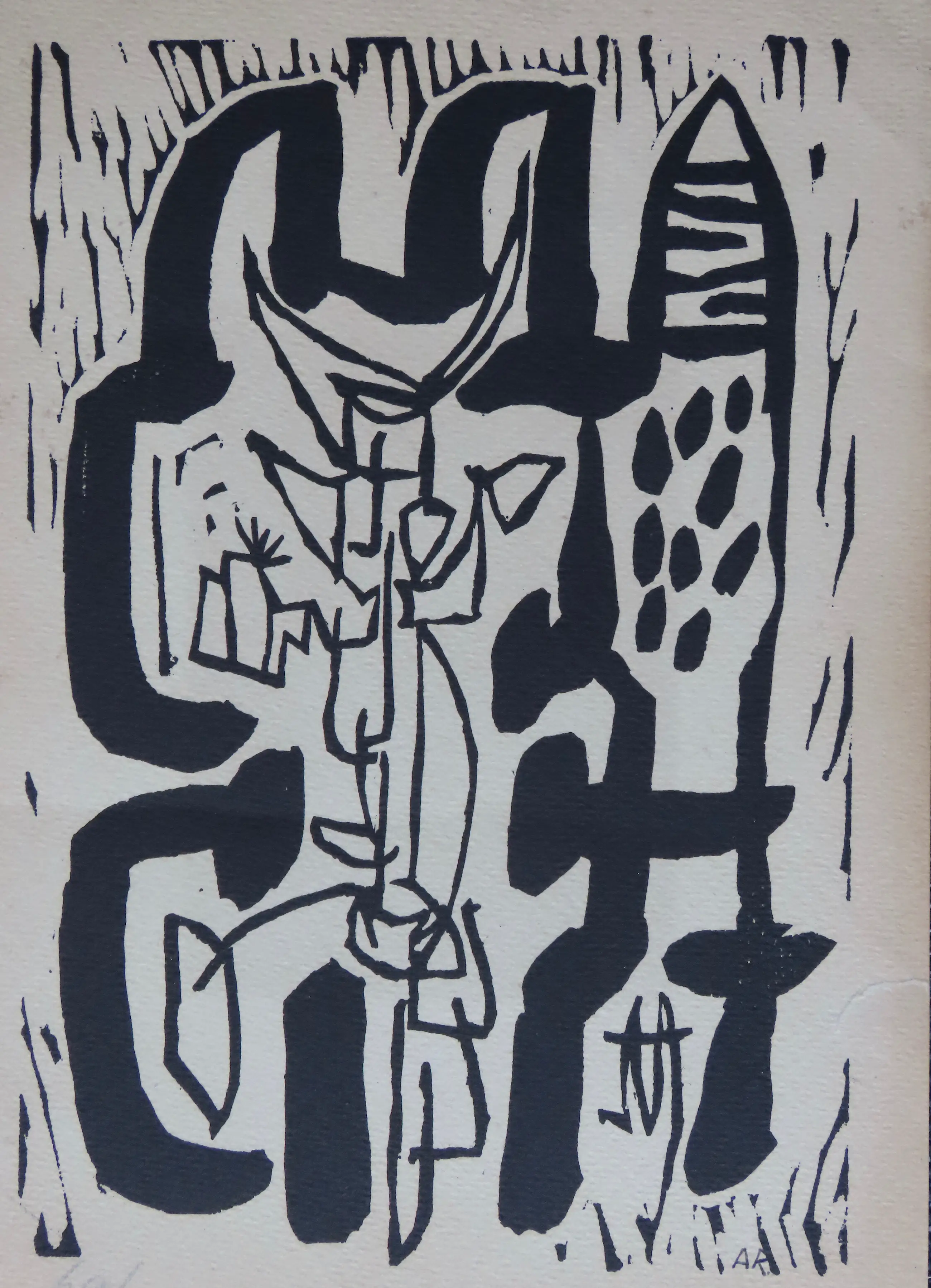 Bijzonder werk uit de periode dat Anton Rooskens zich aangetrokken ging voelen tot de nieuwe vrije expressie en aansluiting vond bij de experimentele kunstenaars Karel Appel, Eugene Brands en Corneille via de tentoonstelling in 1946 in het Stedelijk Museum. Deze kunstenaars, die de oprichters werden van de Experimentele Groep Holland in 1948 gingen op in de internationale CoBrA -beweging waar Constant en zijdelings ook zijn broerJan Nieuwenhuys, toe behoorden.
