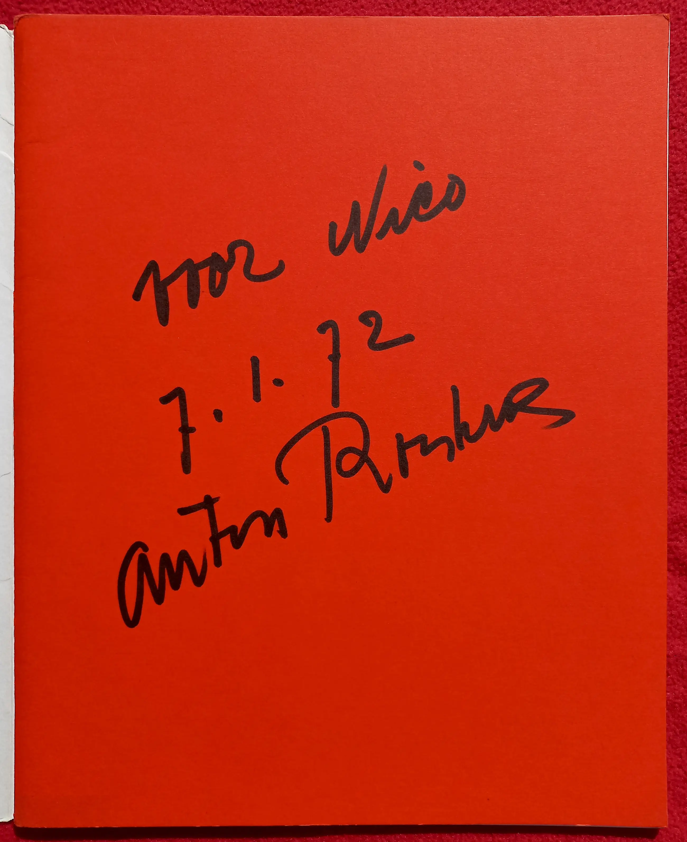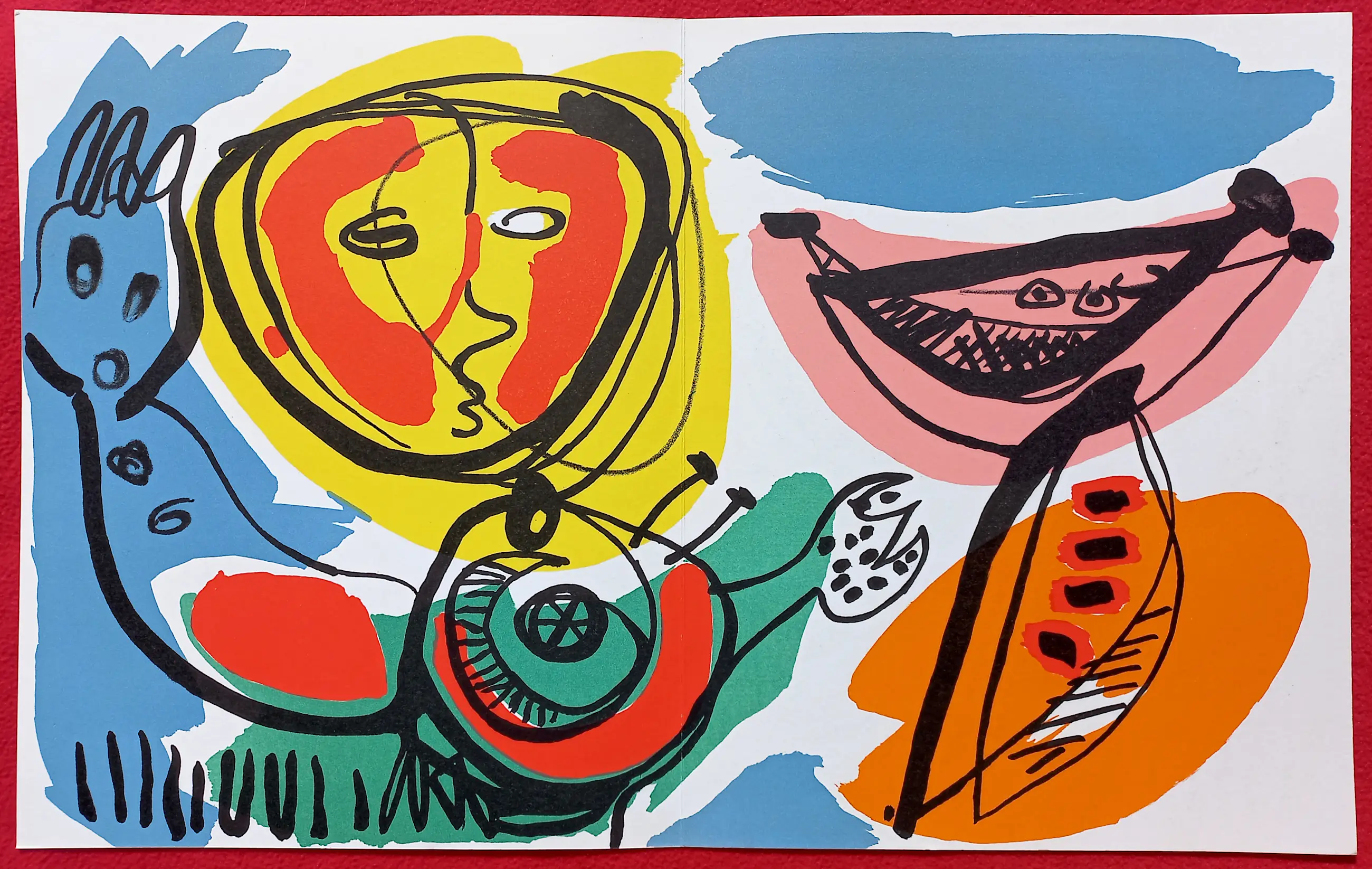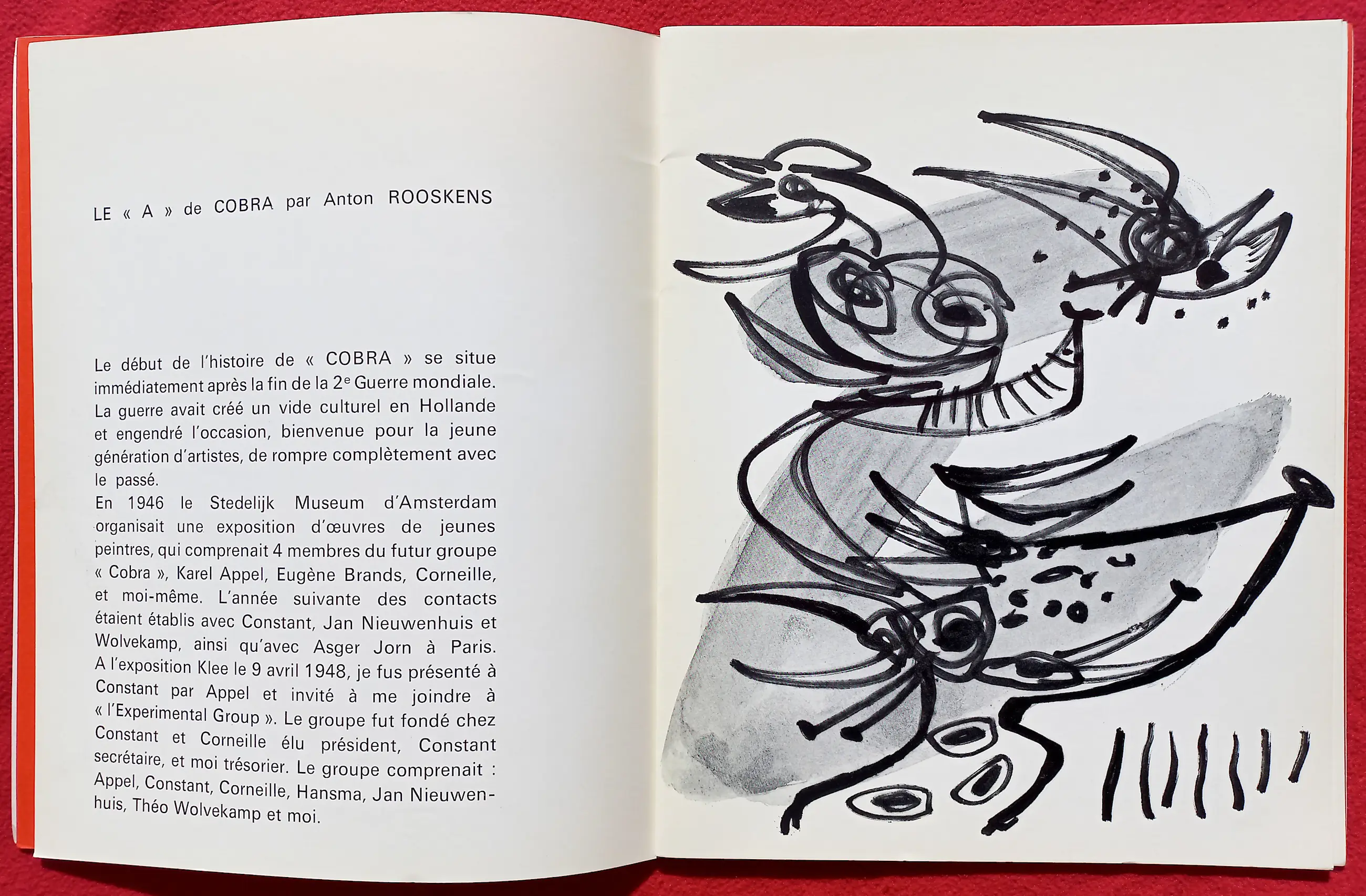 Complete en zeer verzamelwaardige publicatie van galerie Ariel (Parijs) ter gelegenheid van een expositie met werk van Anton Rooskens in 1972. De omslag en de “centerfold” zijn losbladige dubbelpagina litho’s. De centerfold heet “L’enfant aux Fleurs” (1971). Het eerste binnenblad van de publicatie is gesigneerd, gedateerd (7.1.72) en met opdracht (“voor Nico”). De publicatie werd uitgegeven in een oplage van 600, dit exemplaar is nummer 162. In zeer goede conditie; omslag linksboven wel een paar vlekjes.