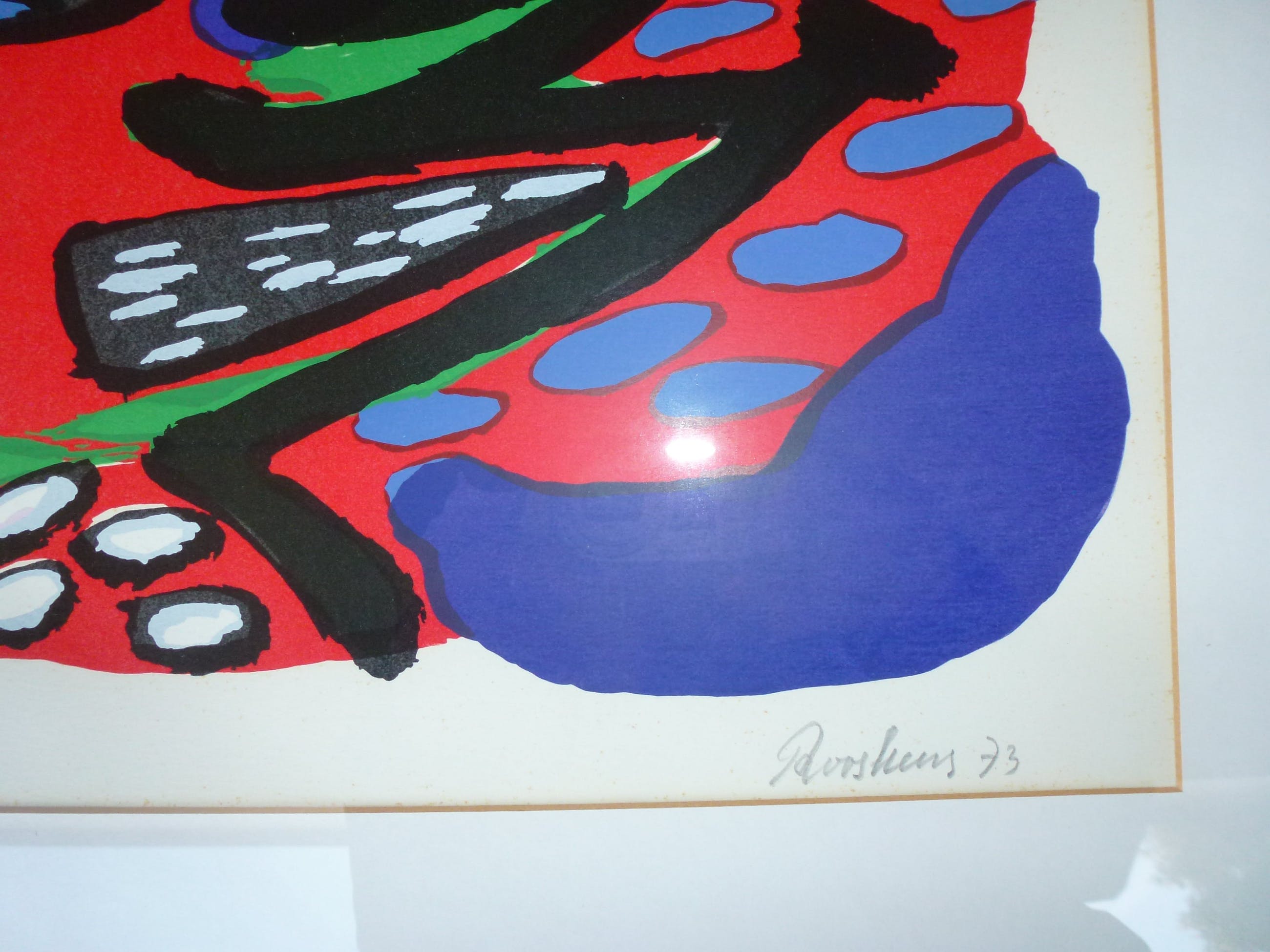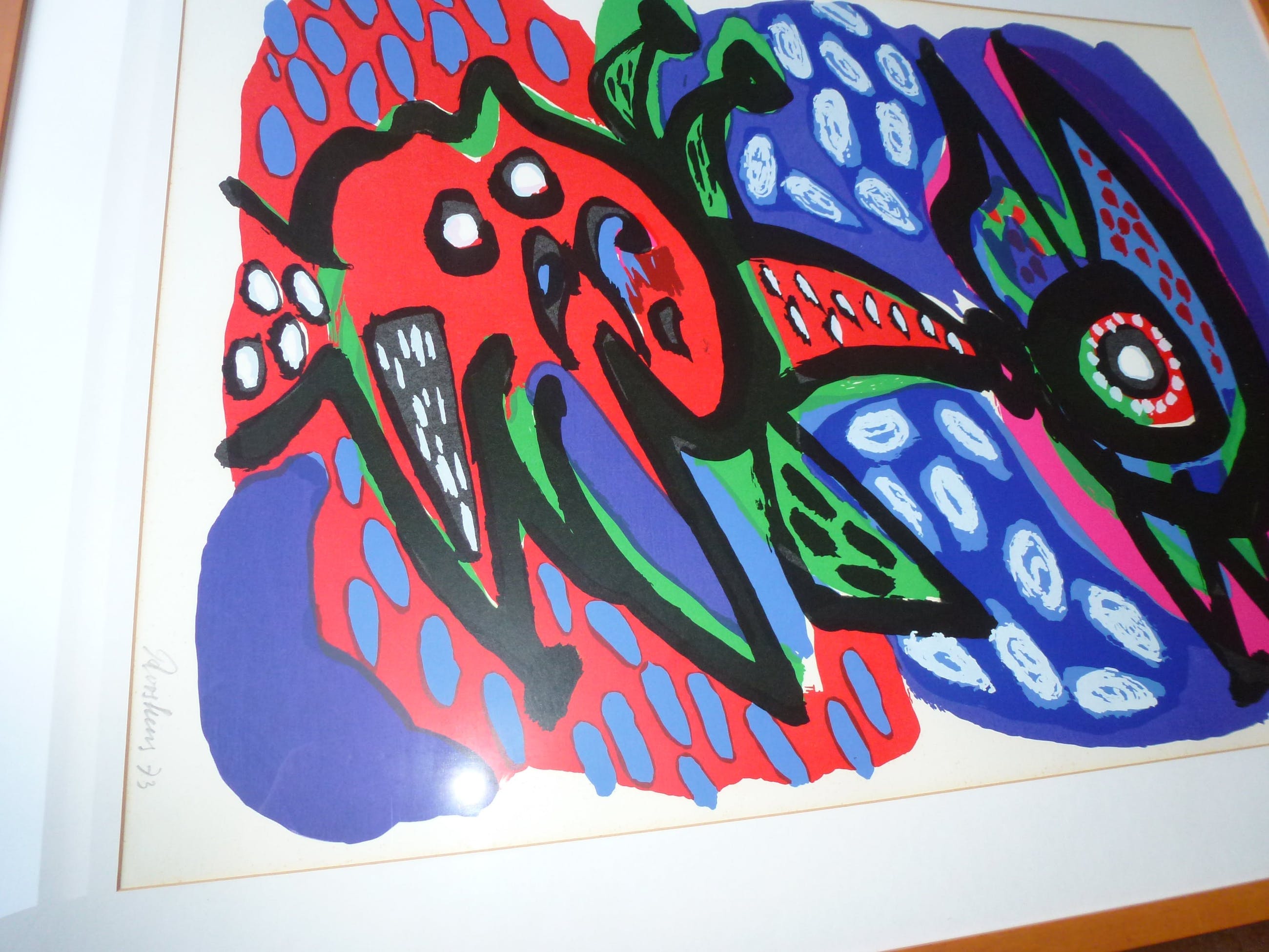 Zeer fraaie kleurrijke en genummerde hand gesigneerde grafiek van Anton Rooskens uit 1973.