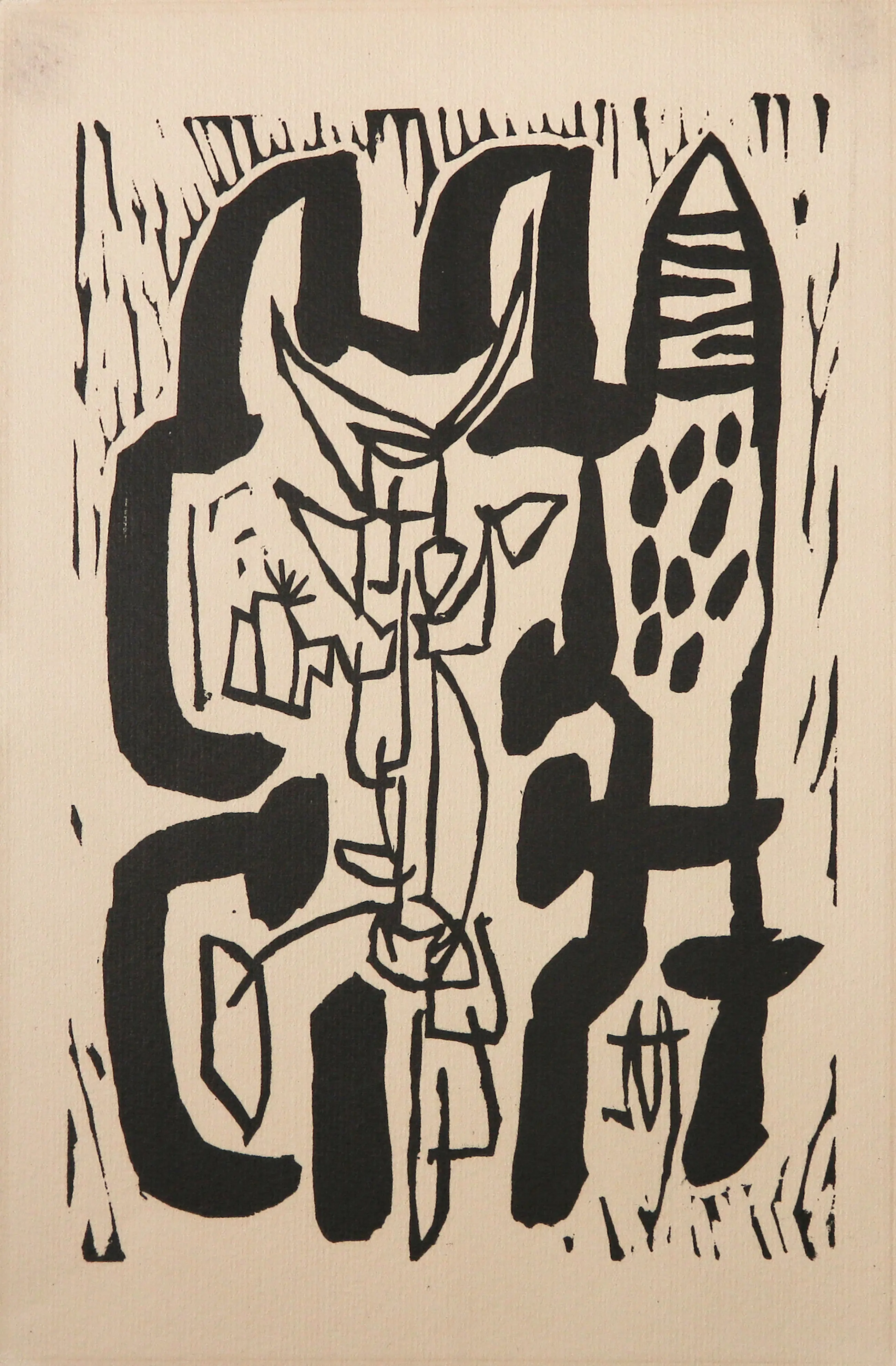 Linosnede van Anton Rooskens. Let op: dit werk is ongesigneerd.