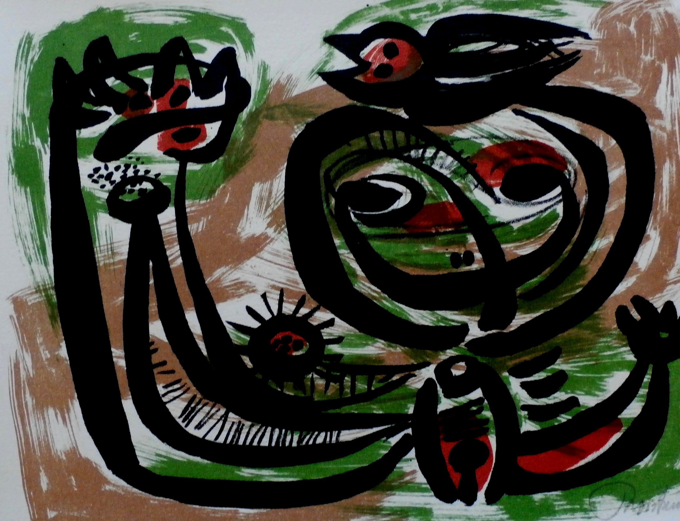 Litho van Anton Rooskens uit 1967. Titel: Compositie. Nummer: XII/XXV . Afmetingen blad : H30 x b38.5 cm. Afmetingen voorstelling: H25.5 x b34.5. De litho is , met potlood, rechtsonder gesigneerd door de kunstenaar. De authenticiteit van dit werk wordt voor 100% gegarandeerd. Een certificaat van echtheid kan, op aanvraag, worden meegestuurd.