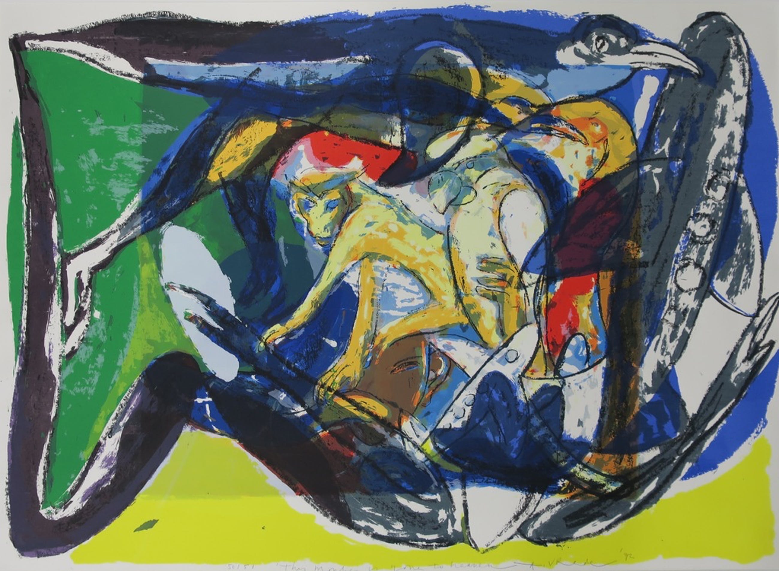 Afmetingen blad: 100 cm x 130 cm (werk: 79 cm x 109 cm)