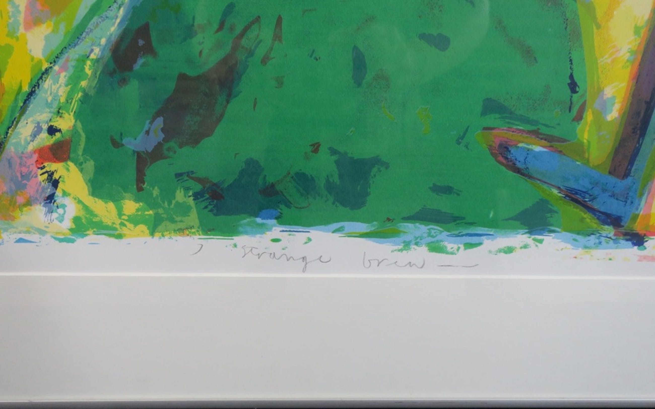 Titel: Strange bres Jaartal: 1990 Afmetingen lijst: 80,5 cm x 110,5 cm (Beeld: 65 cm x 89 cm) Oplage: 74/90 Gesigneerd: Ja, handgeschreven met potlood (rechtsonder) Materiaal: Litho op papier Ingelijst: Ja, in aluminium lijst Conditie: In zeer goede staat.
