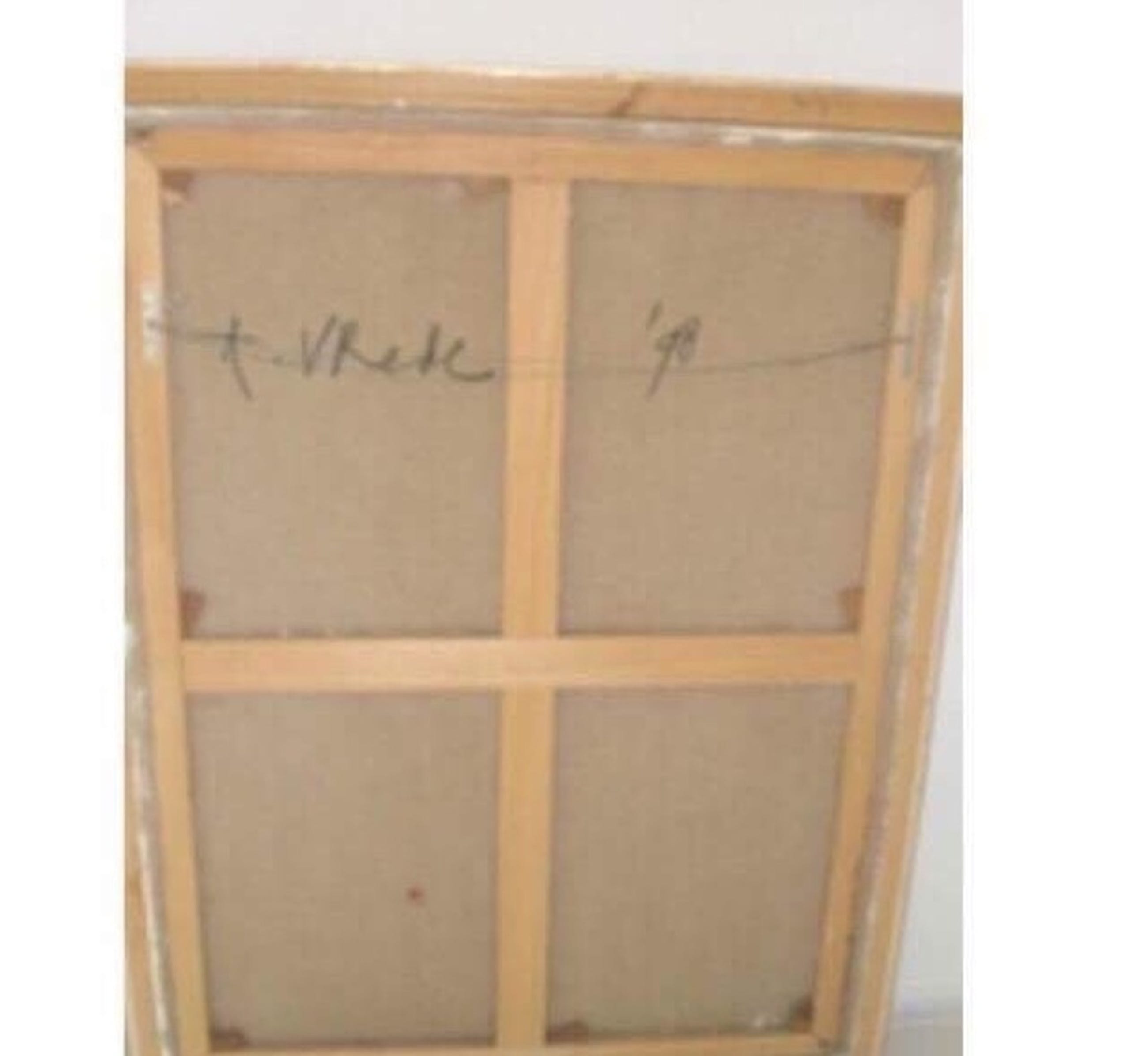 Mooi groot schilderij ingelijst afmetingen breed 104 hoogte 134. Certificaat van echtheid erbij