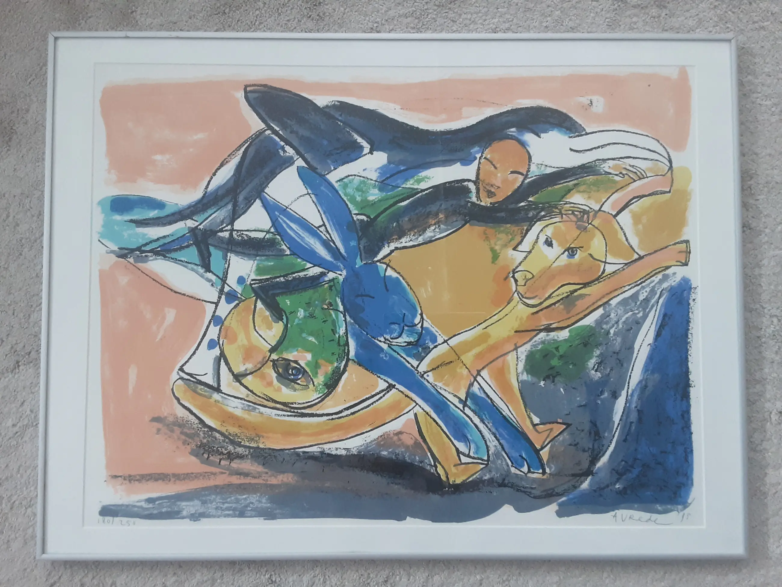 Fraaie levendige zeefdruk door Anton Vrede in uitstekende conditie nummer 180 uit een oplage van 250 stuks handgesigneerd rechtsonder gedateerd '95