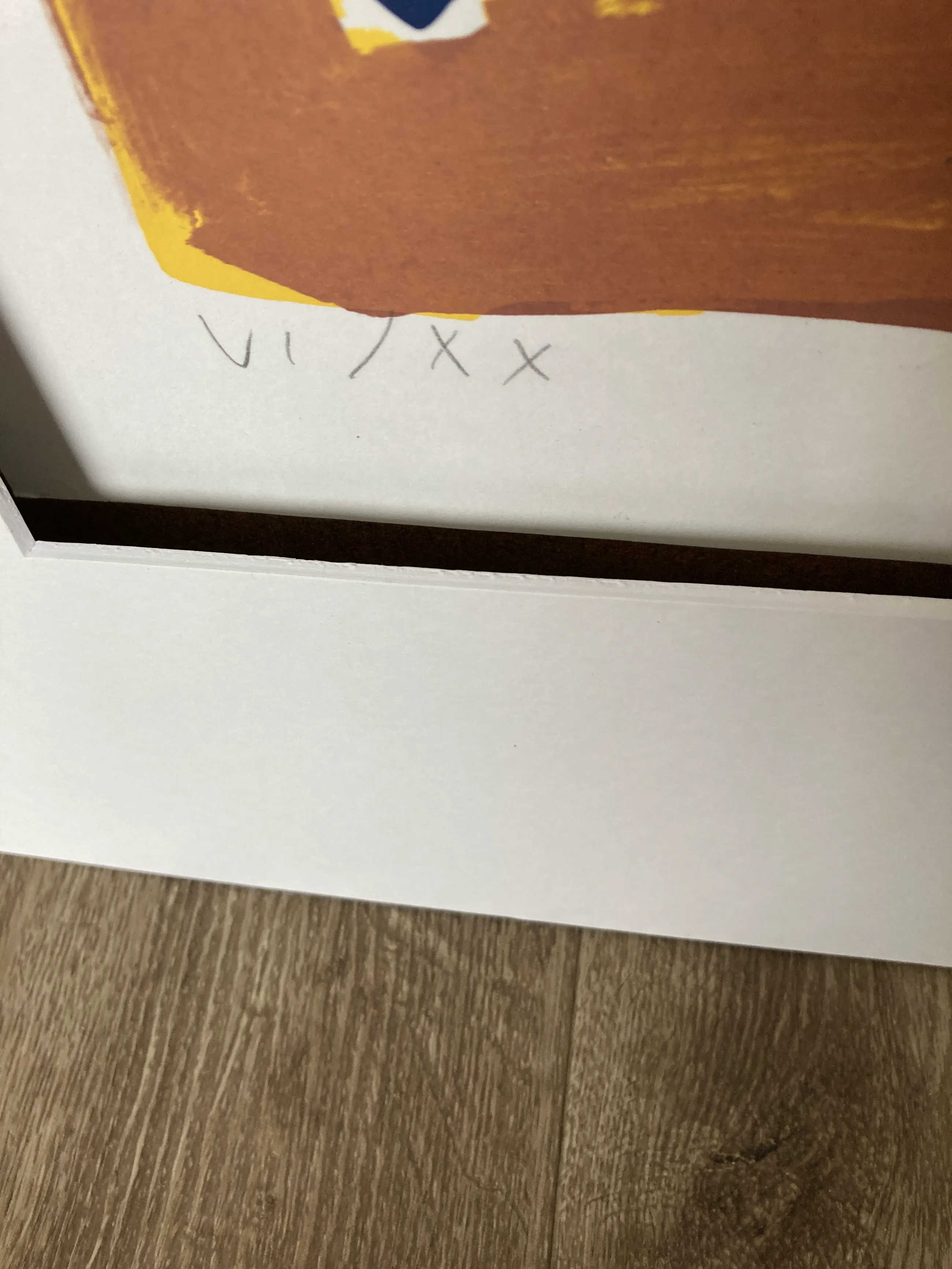Vrolijke, kleurrijke en grote litho. Deze litho is verlijmd op een onderbrak ( 100 x 130 ). Met l.o. VI/XX met potlood , in het midden Double Jump met potlood en r.o. A. Vrede ‘ 93 met potlood.
