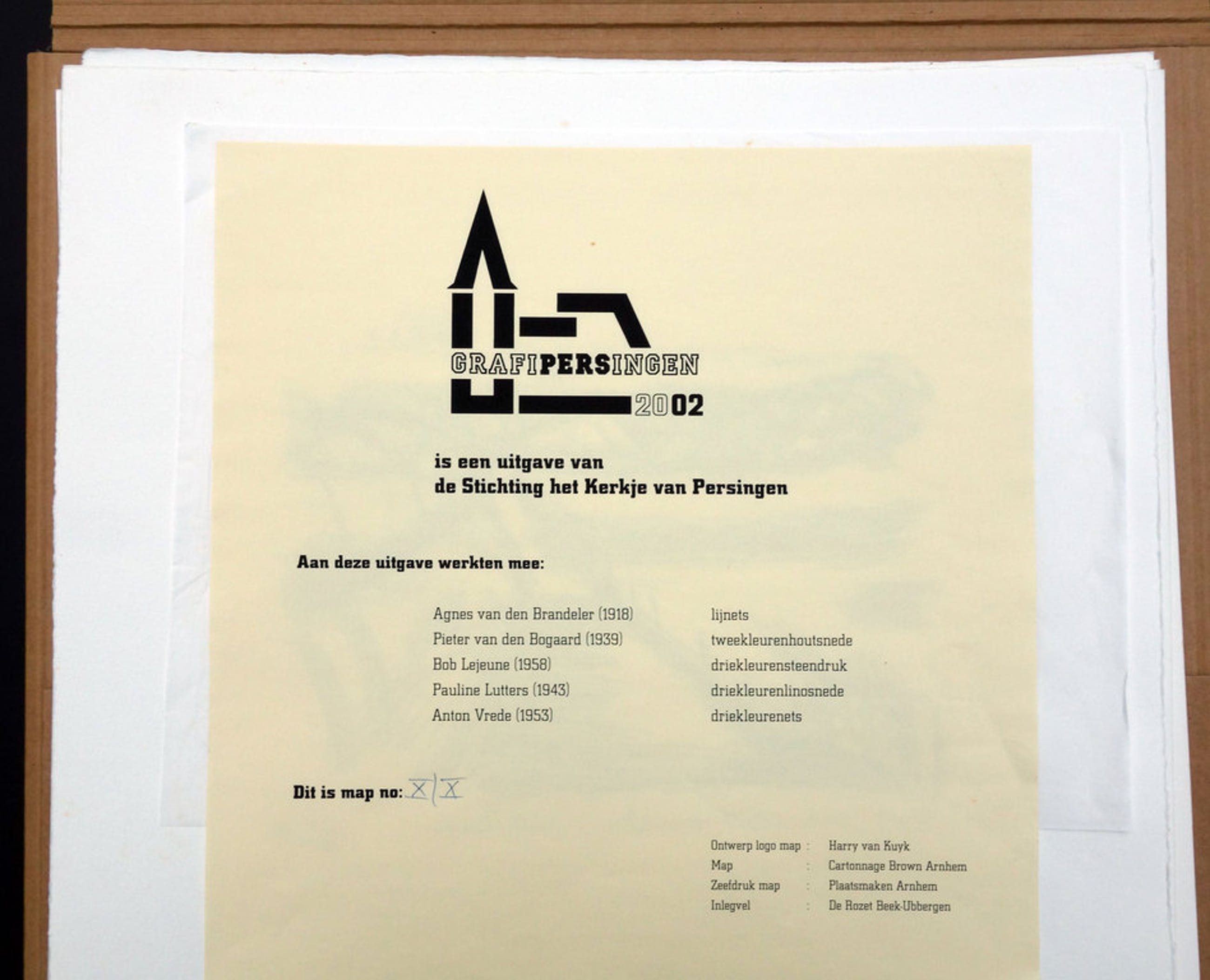 Map ‘Grafipersingen’ 2002 met werk van vijf kunstenaars.