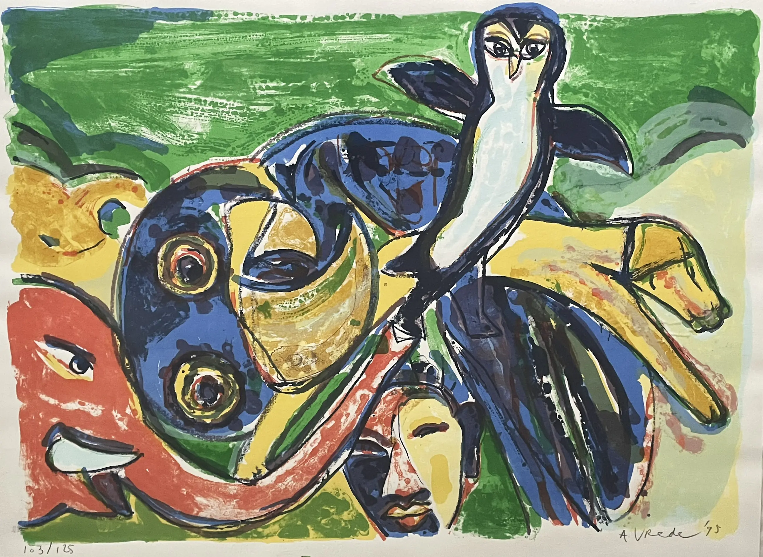 Explosie van kleur met de bekende dieren van Anton Vrede, boordevol fraaie beeldelementen. Veel te zien en te fantaseren. Typisch voor de stijl van deze Surinaams/Nederlandse kunstenaar.