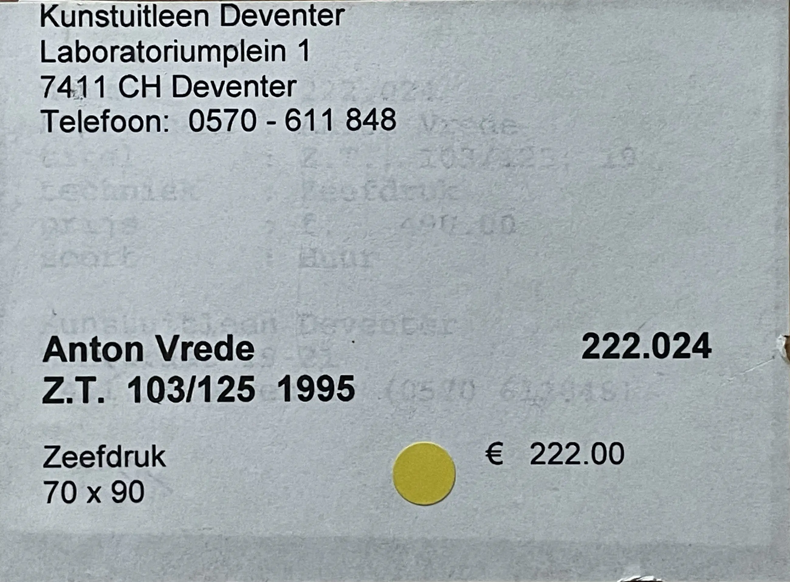 De verkoper neemt de volledige verantwoordelijkheid voor dit item. Kunstveiling biedt slechts het platform bij deze transactie, welke direct met de verkoper afgehandeld dient te worden. Meer informatie .