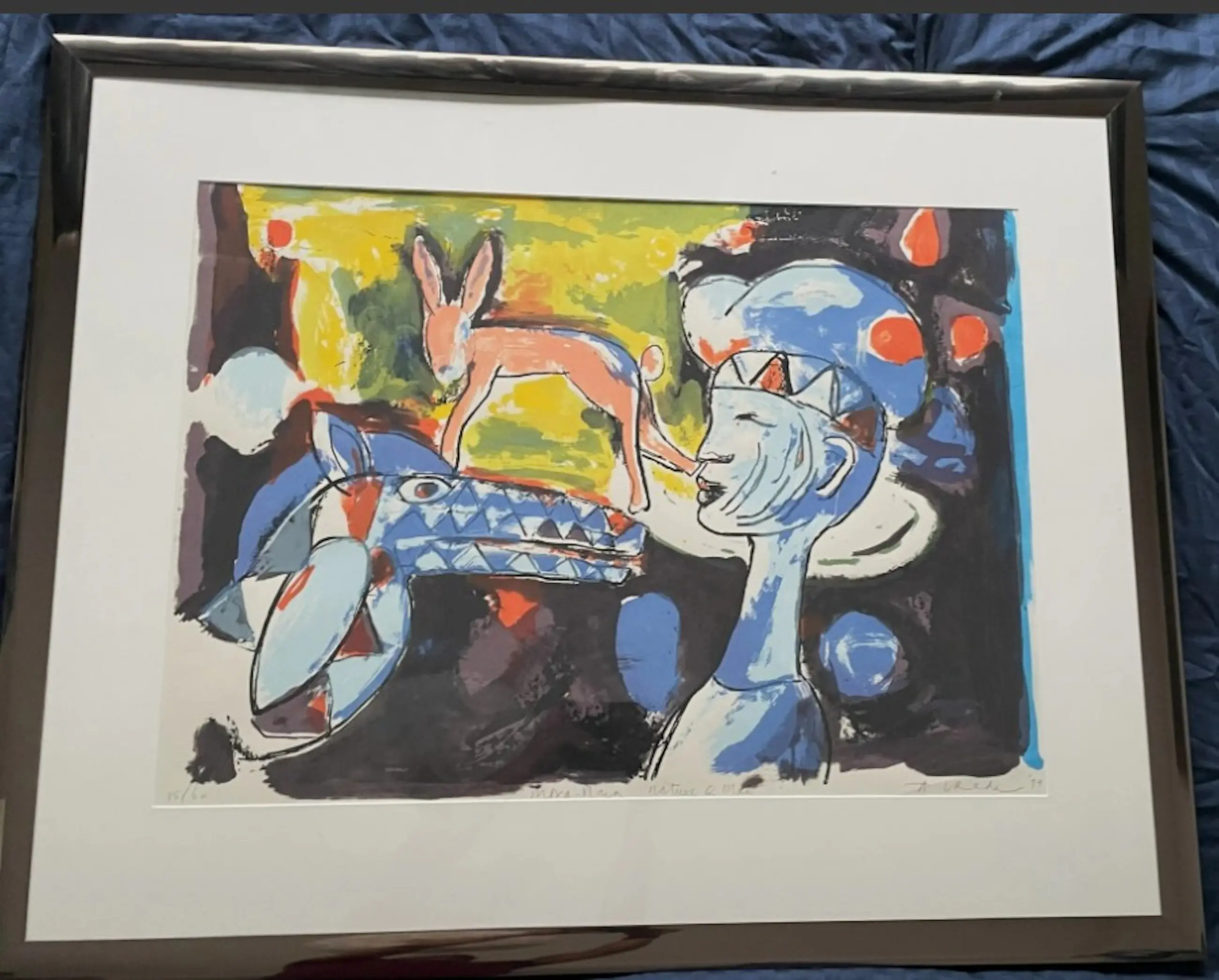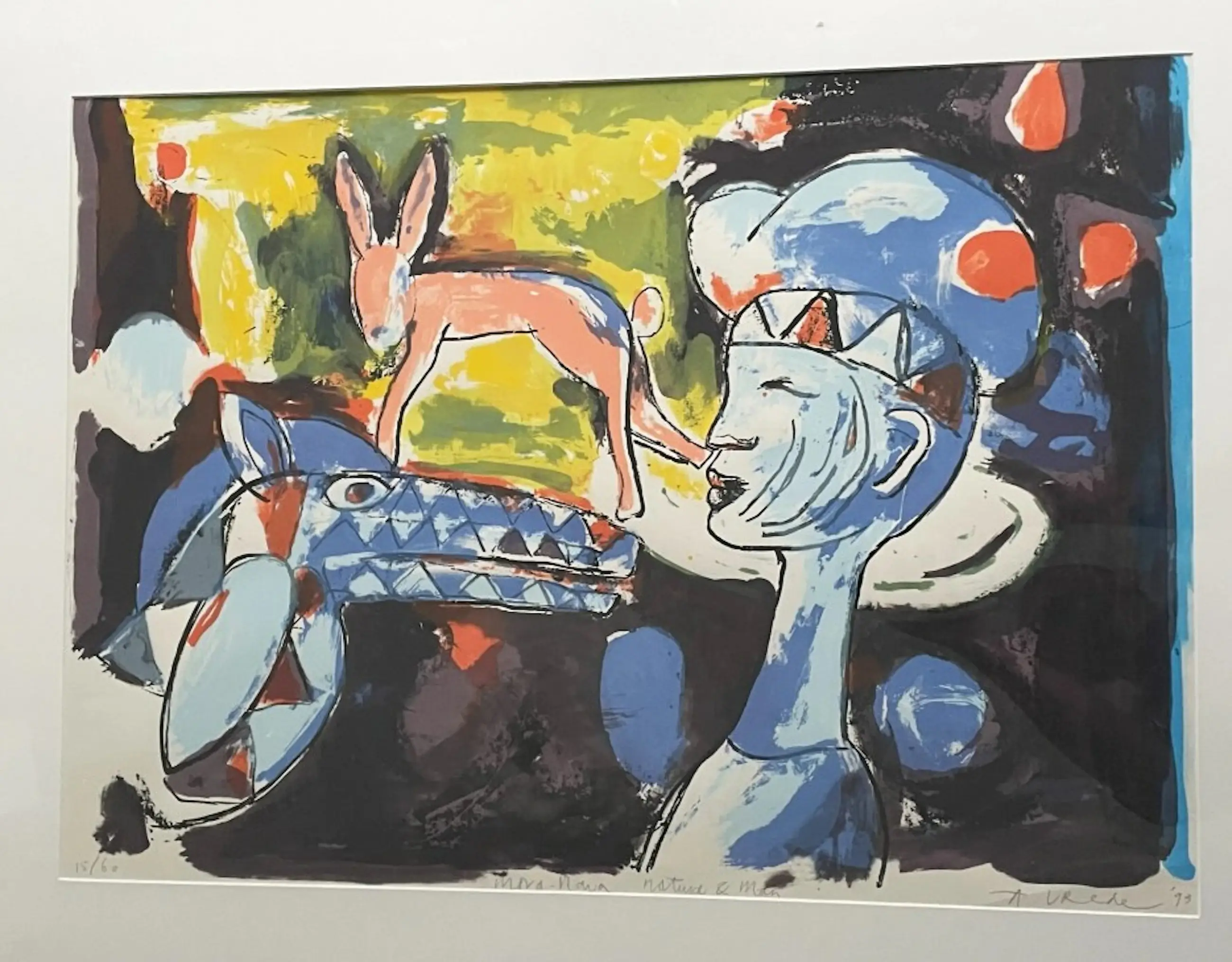 Grote kleurrijke zeefdruk van Anton Vrede op papier. Het werk verkeert in uitstekende conditie.