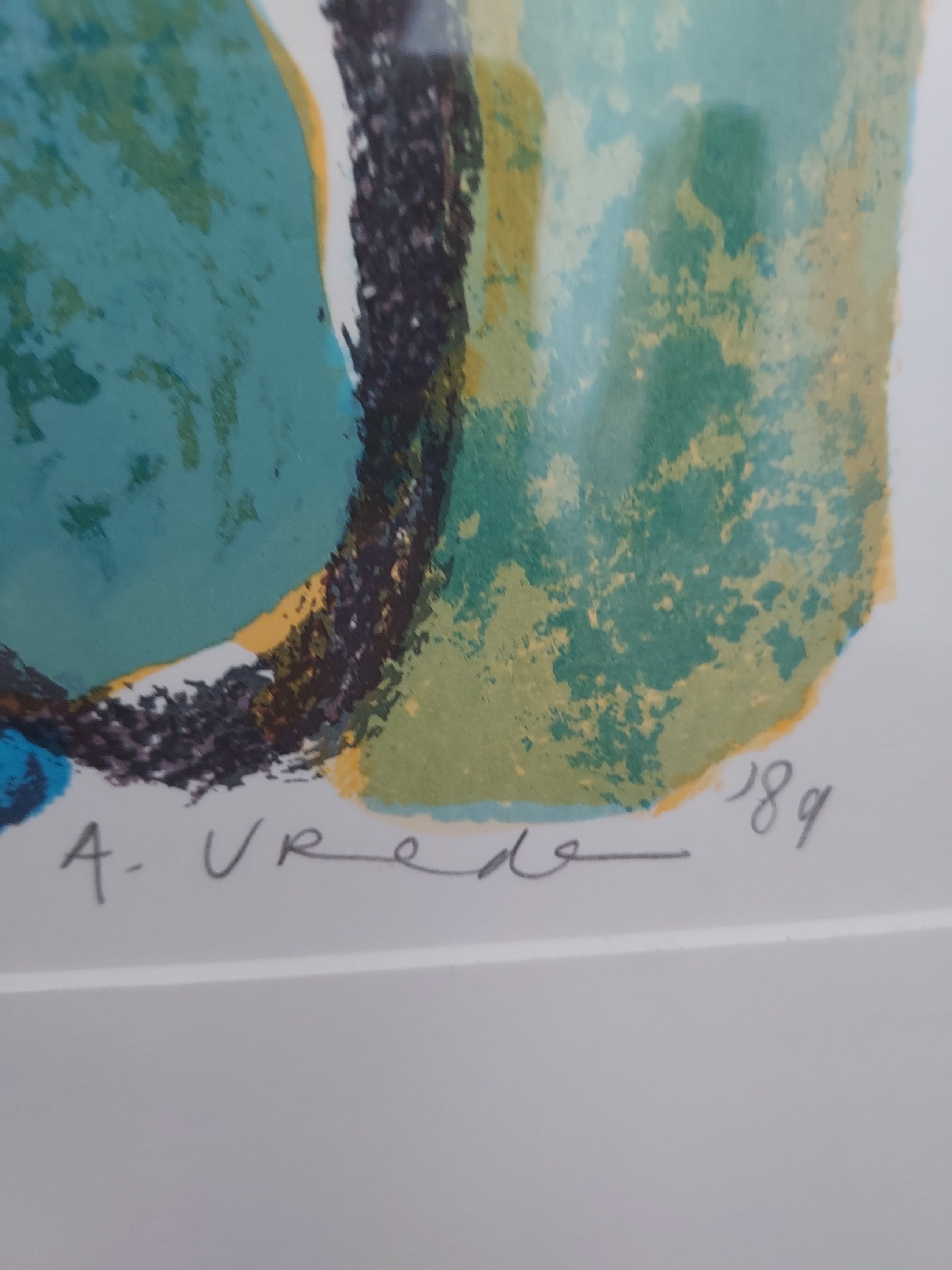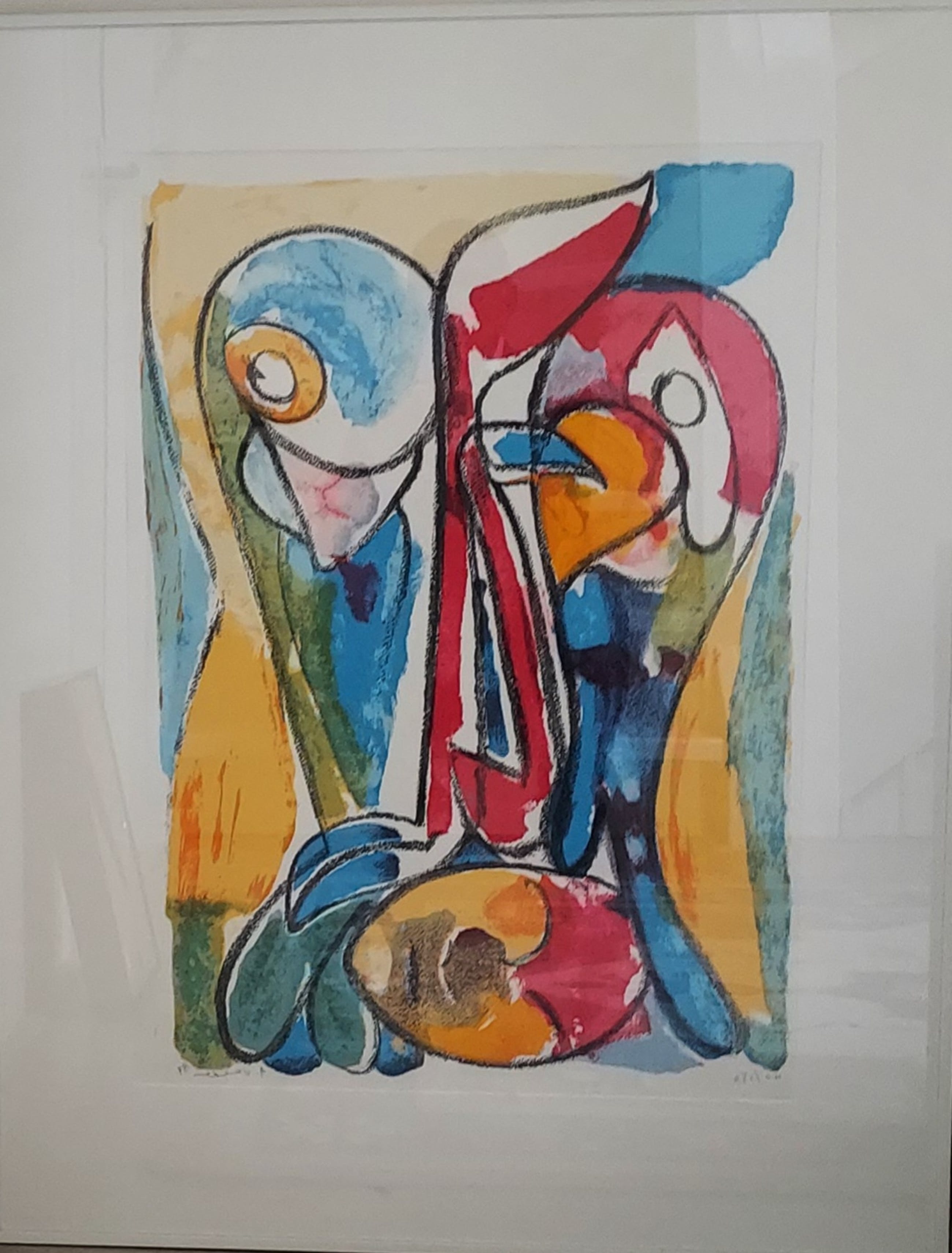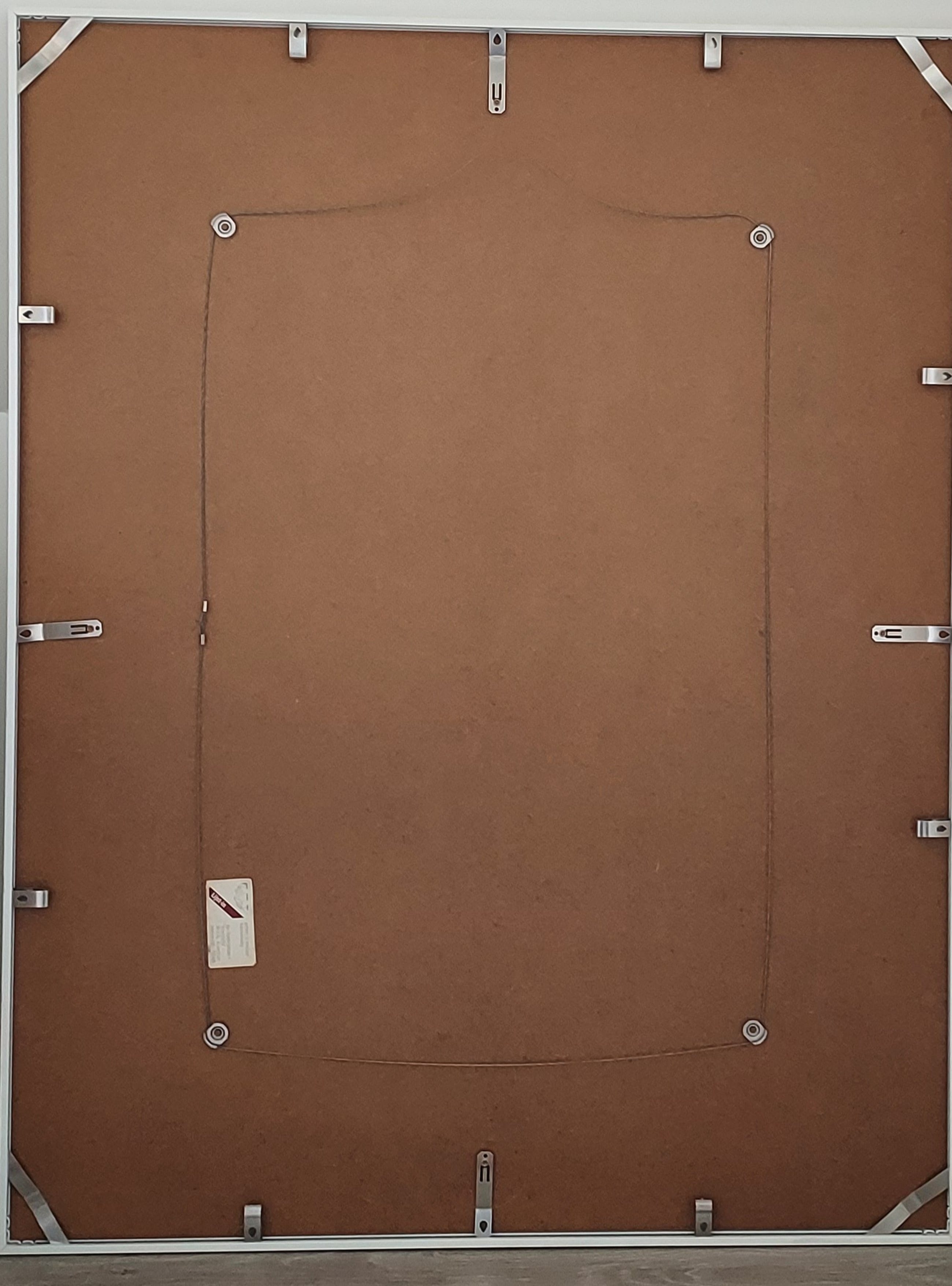 Werk is nooit aan direct licht bloot gesteld. Heeft ongeveer 4 jaar gehangen en is na een verhuizing bewaard een ruimte zonder licht en met de achterkant naar voren.