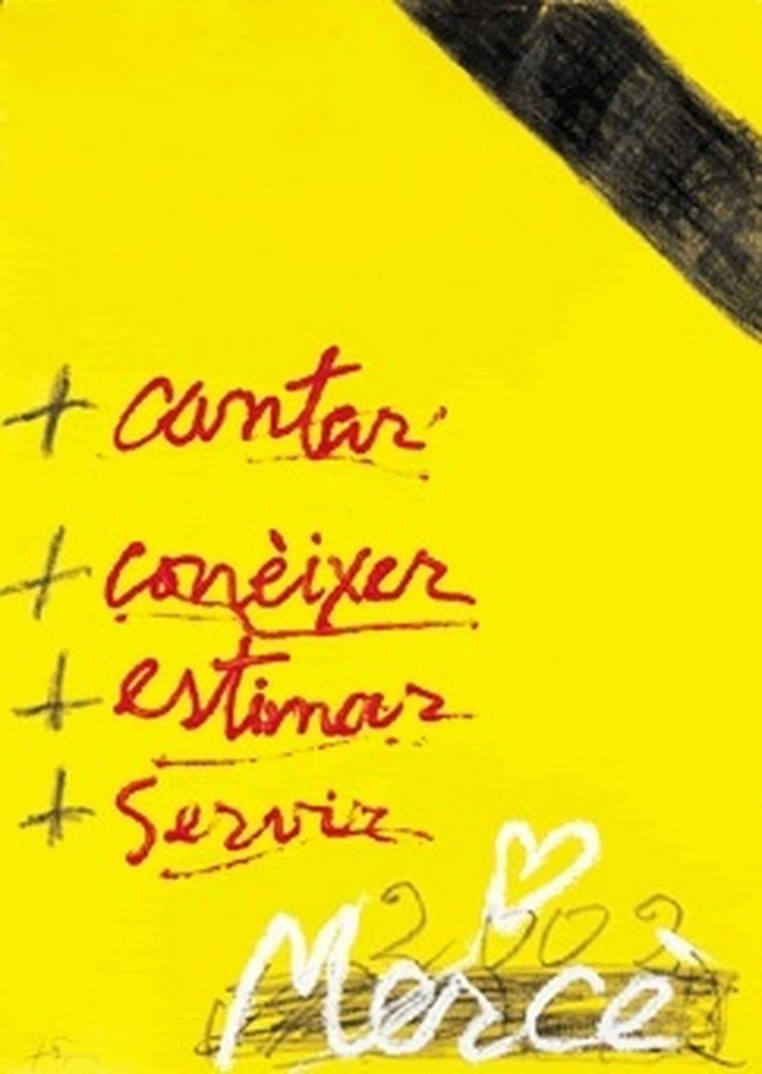Groot gele zeefdruk van Antoni Tapies, getiteld Merce.