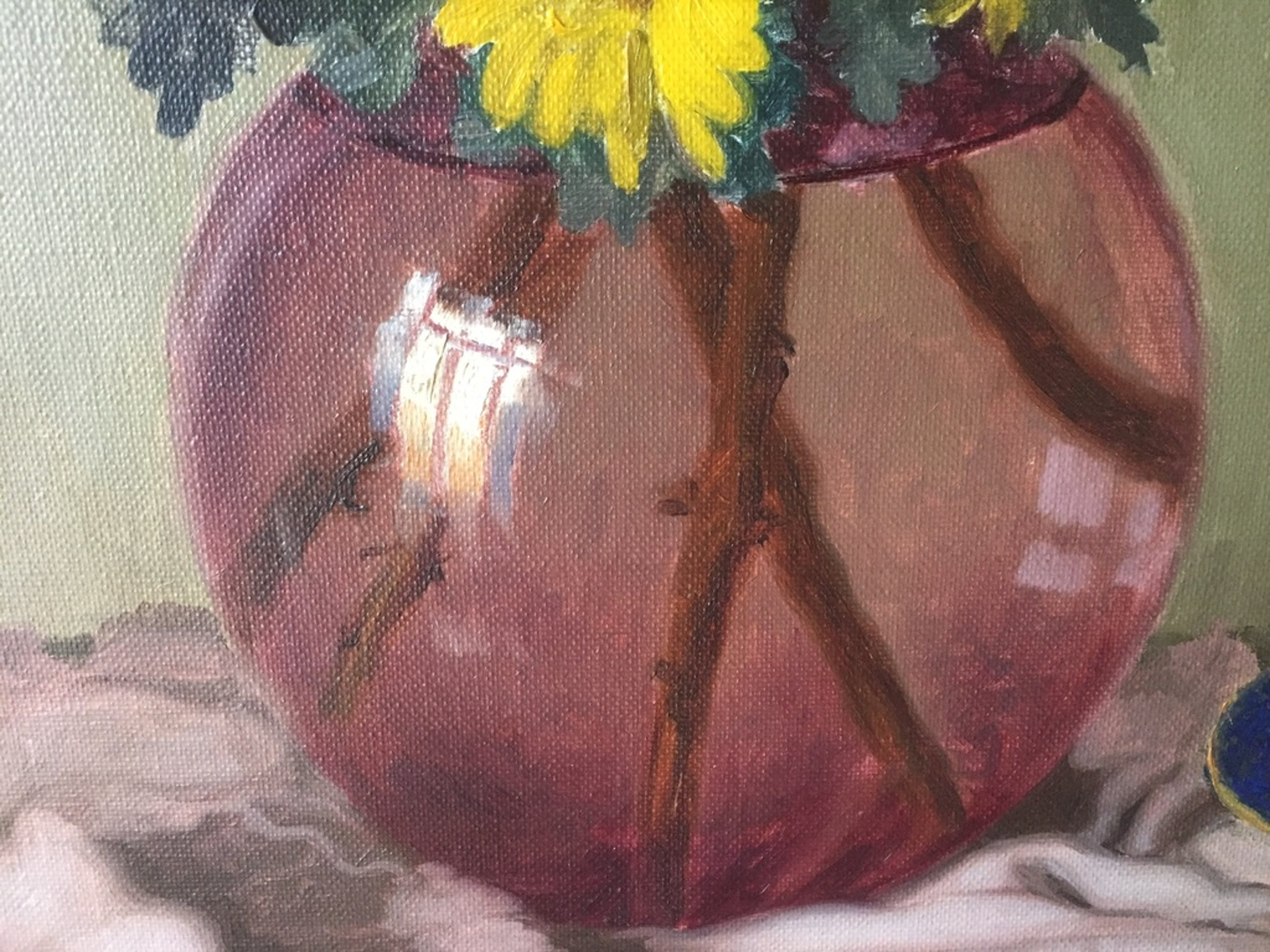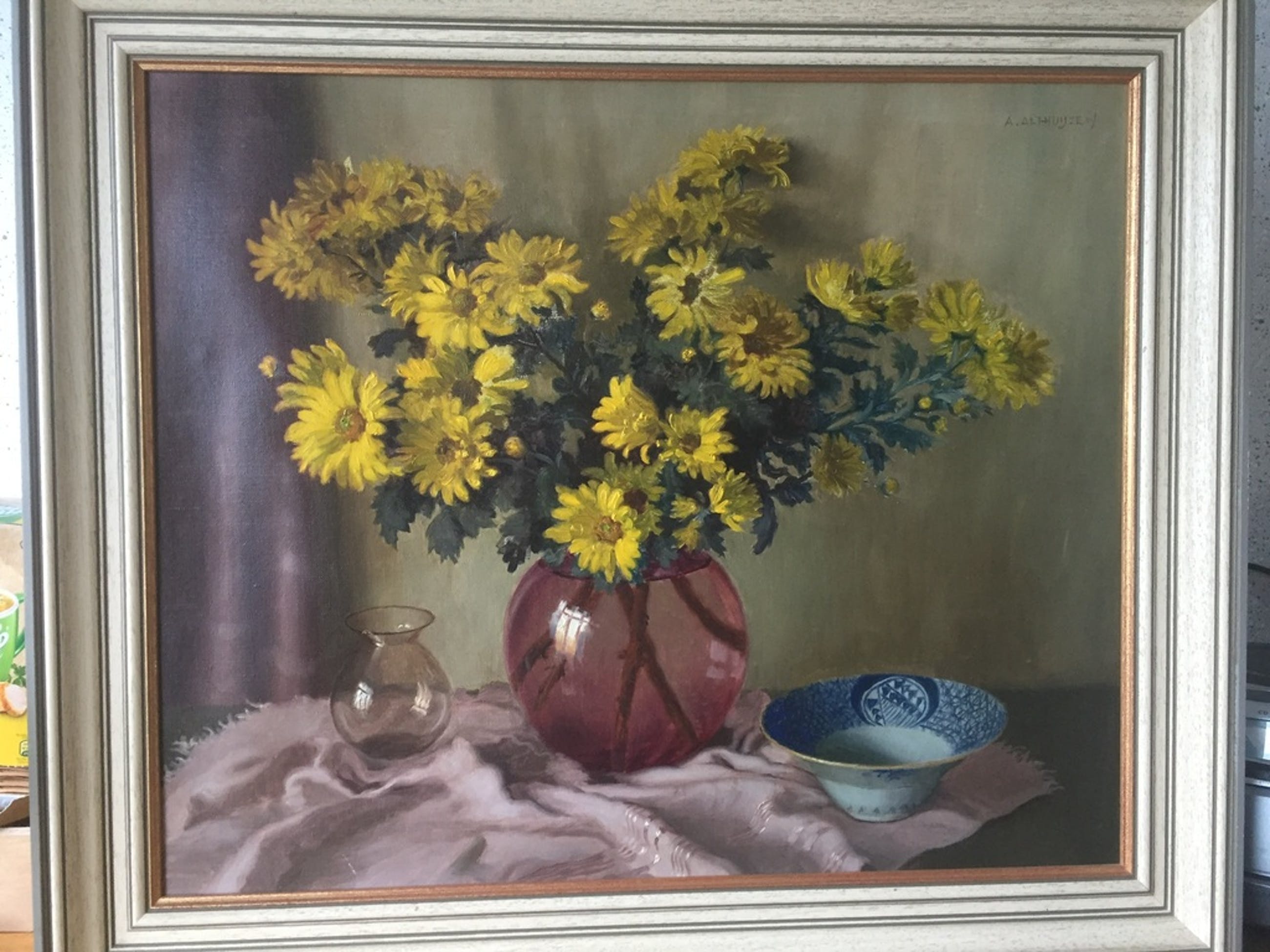 Mooi schilderij olieverf op does 60 x 50 cm in oude lijst 70 x 60 cm